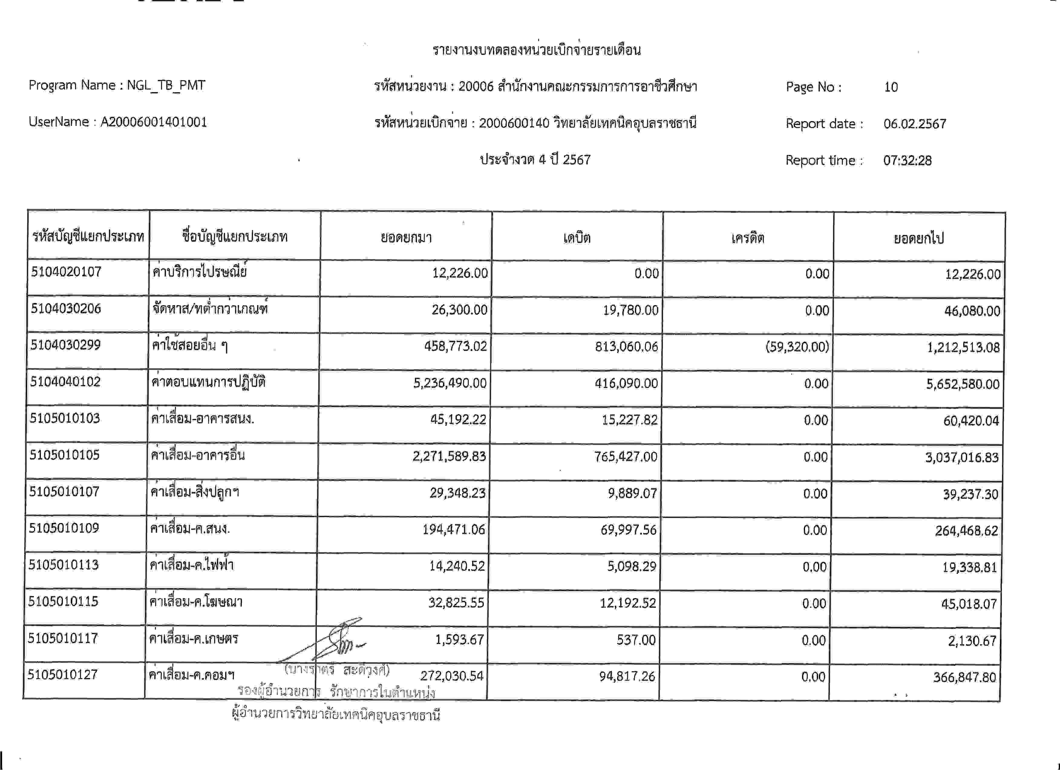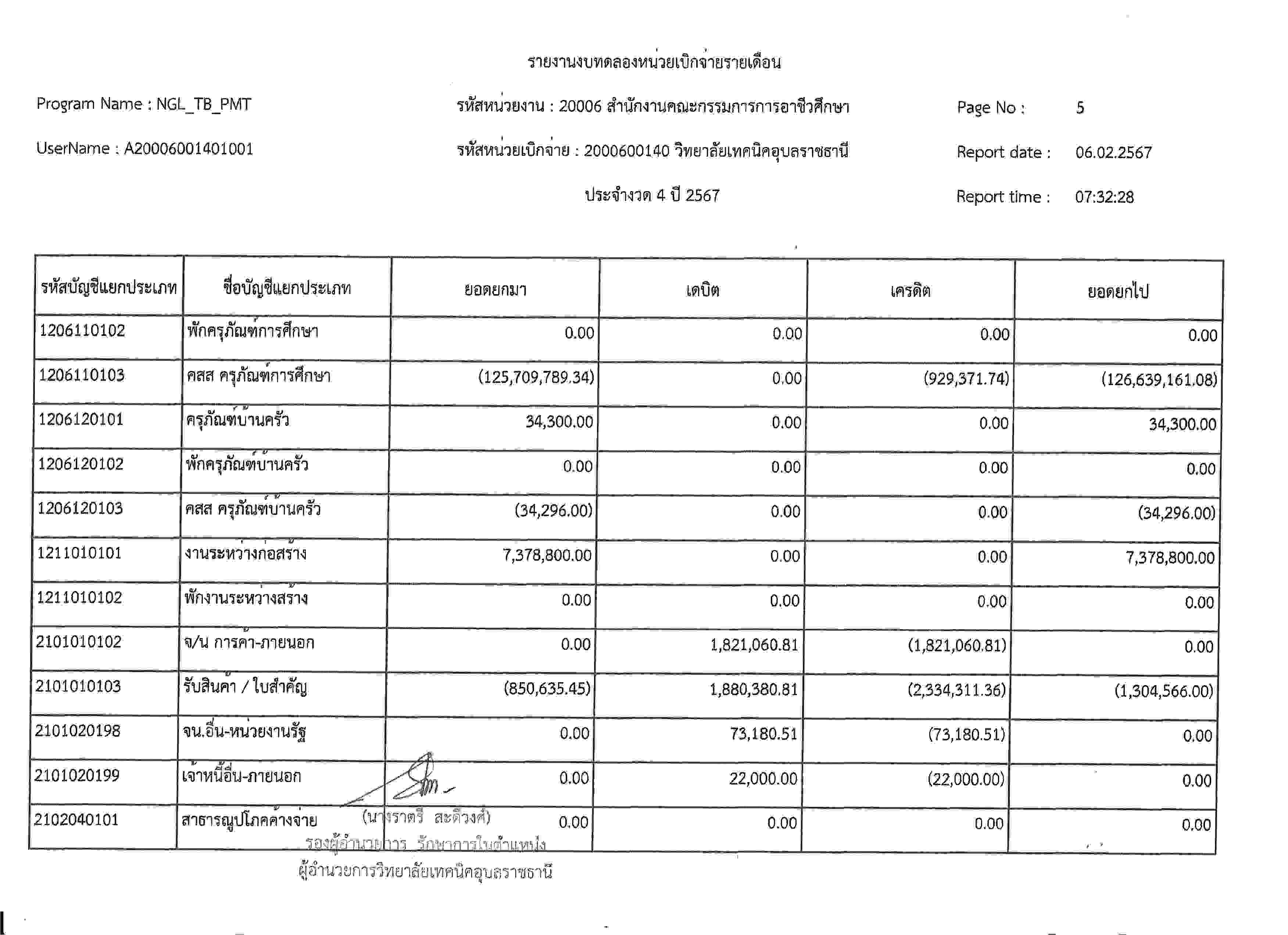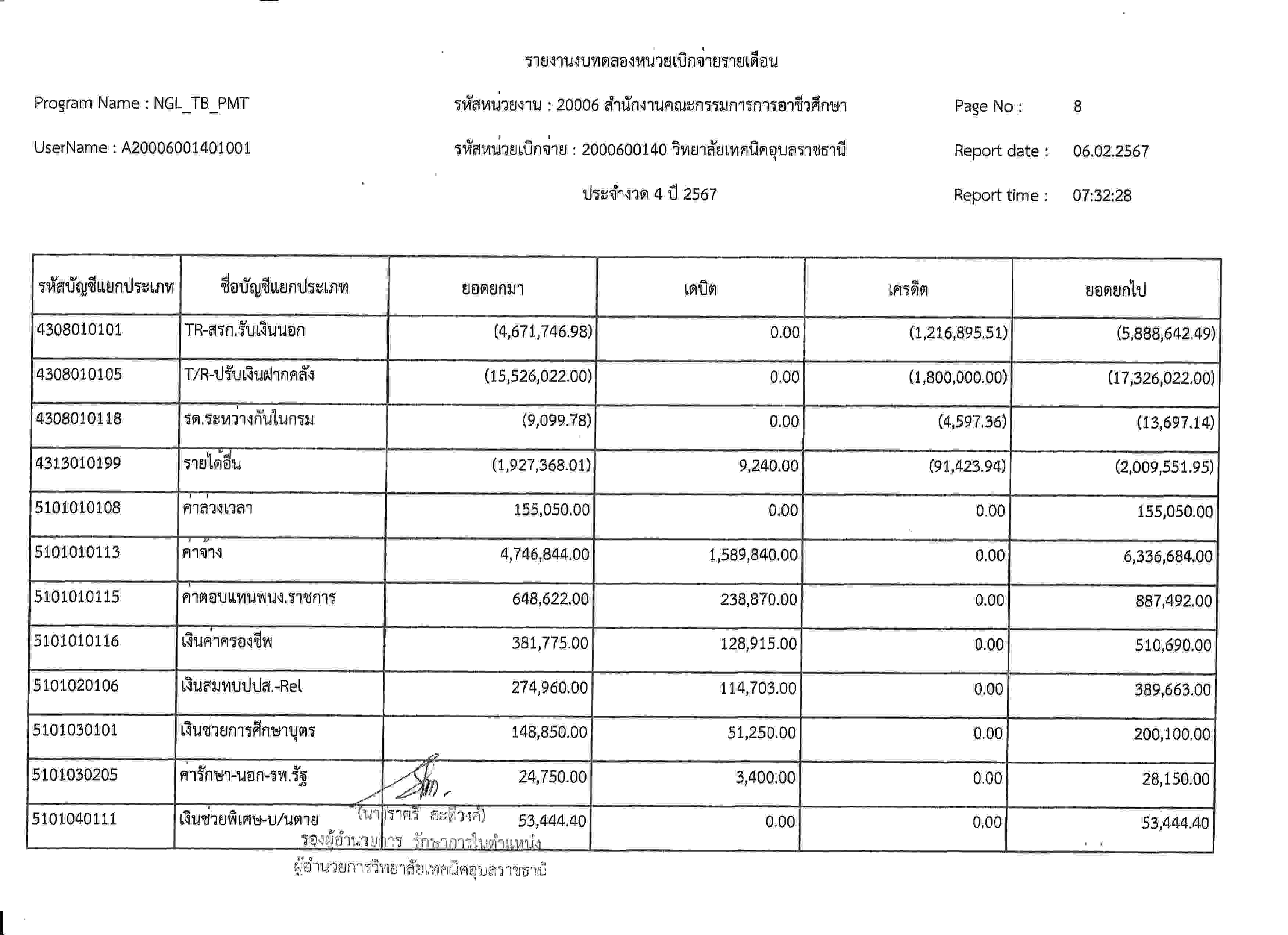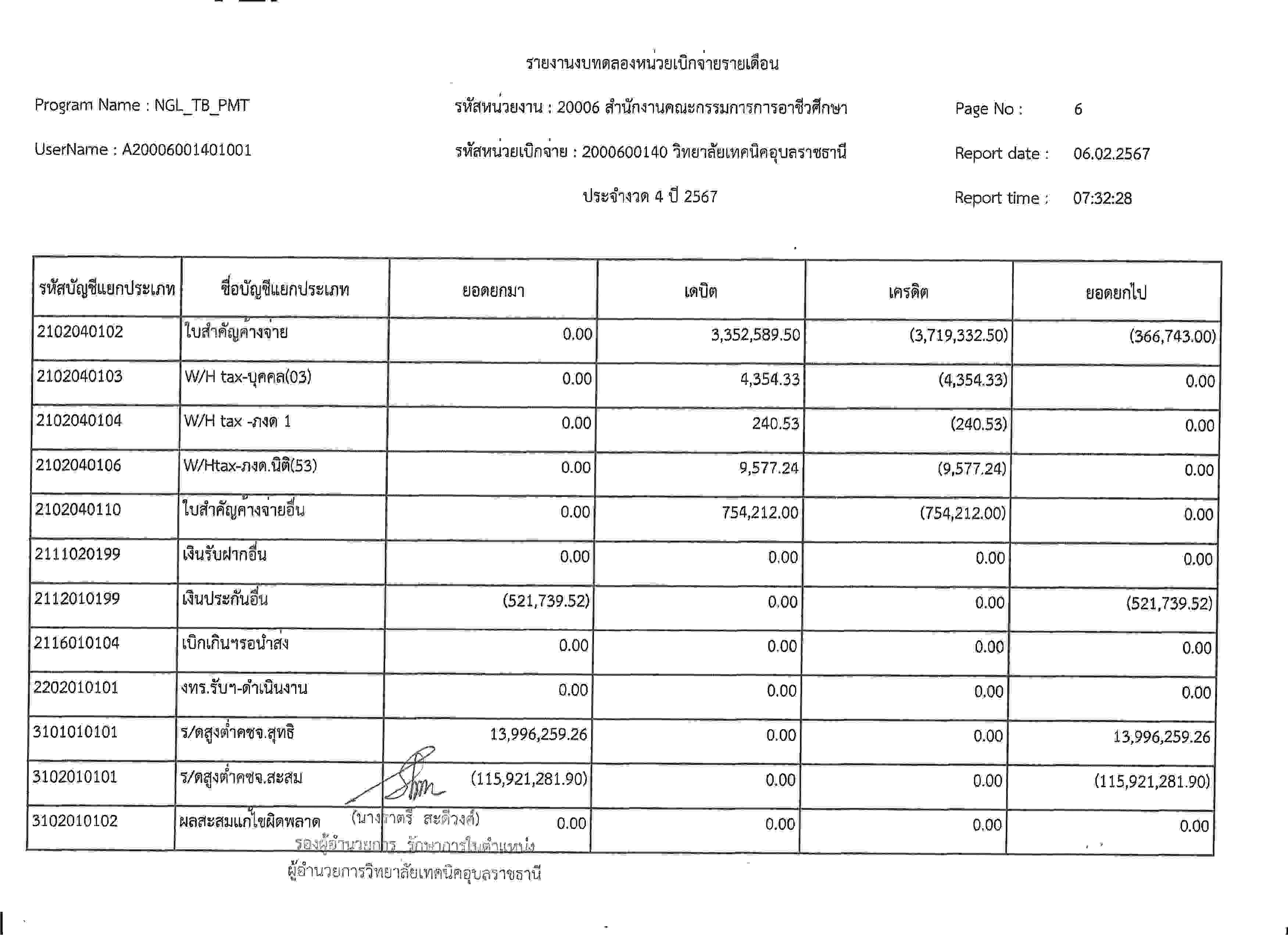 รายงานงบทดลองประจำเดือนมกราคม 2567