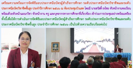 การประชุมเตรียมความพร้อมการจัดพิธีมอบประกาศนียบัตรผู้สำเร็จการศึกษา ระดับประกาศนียบัตรวิชาชีพและระดับประกาศนียบัตรวิชาชีพชั้นสูง ประจำปีการศึกษา ๒๕๖๖