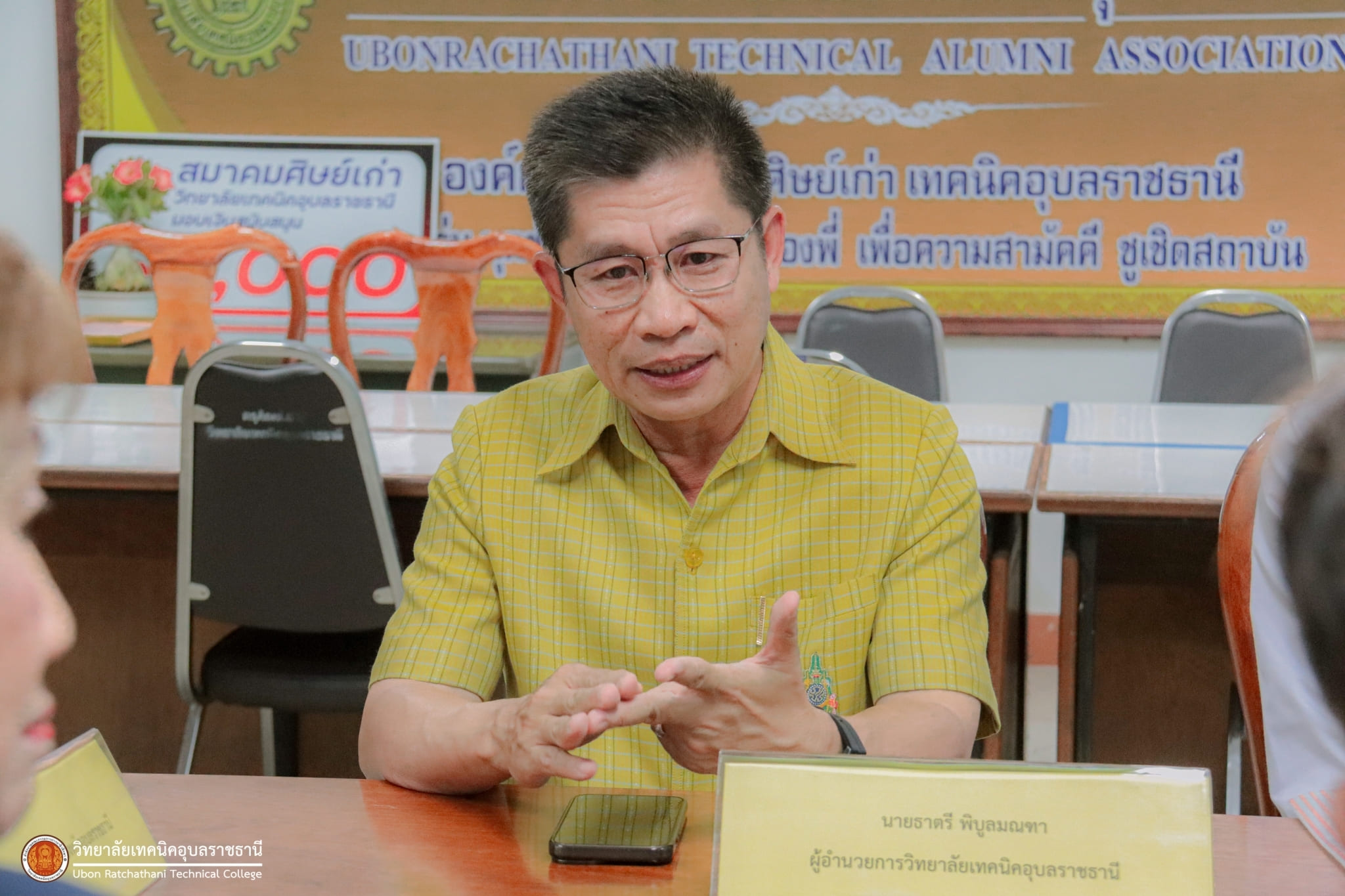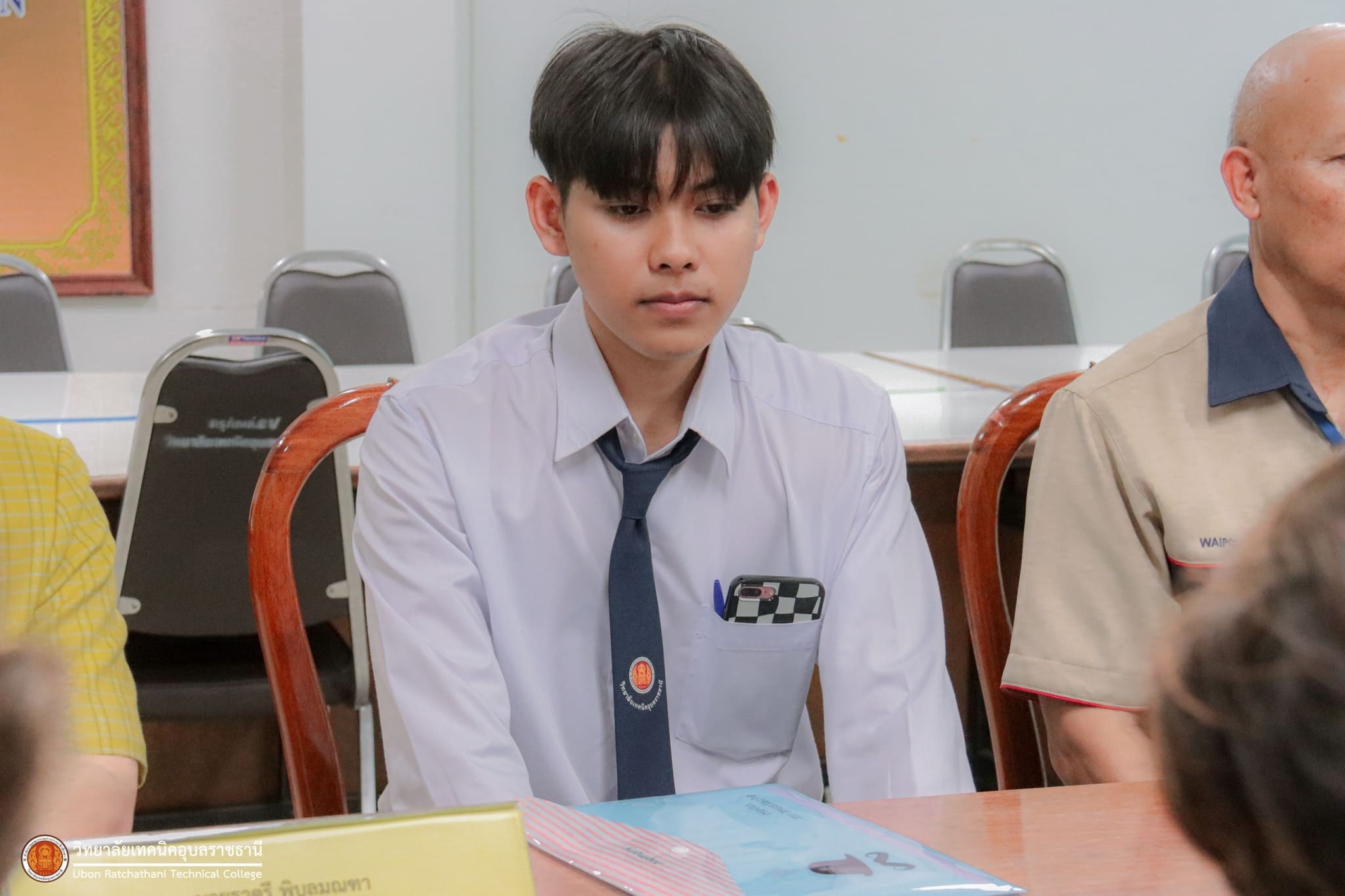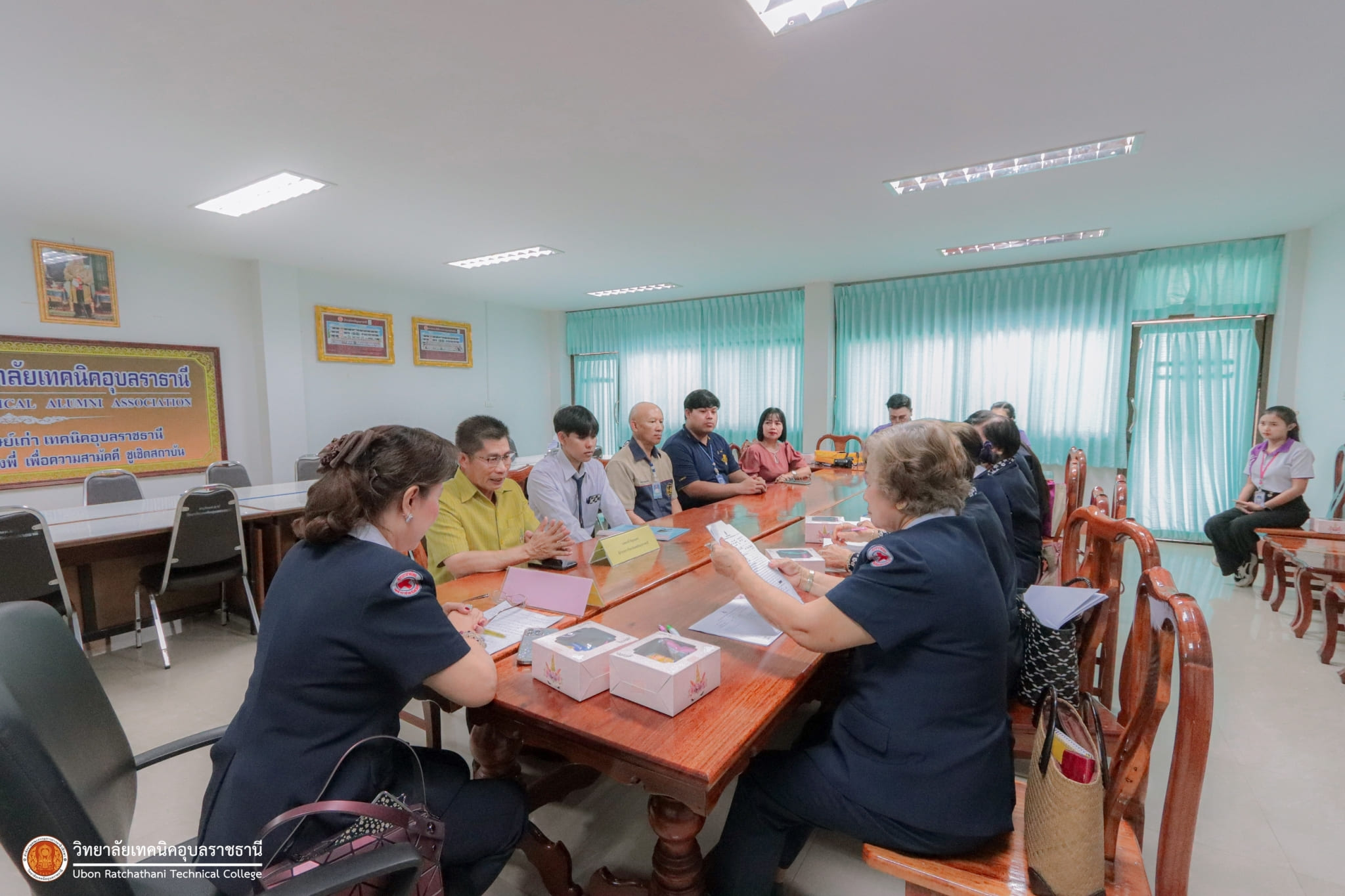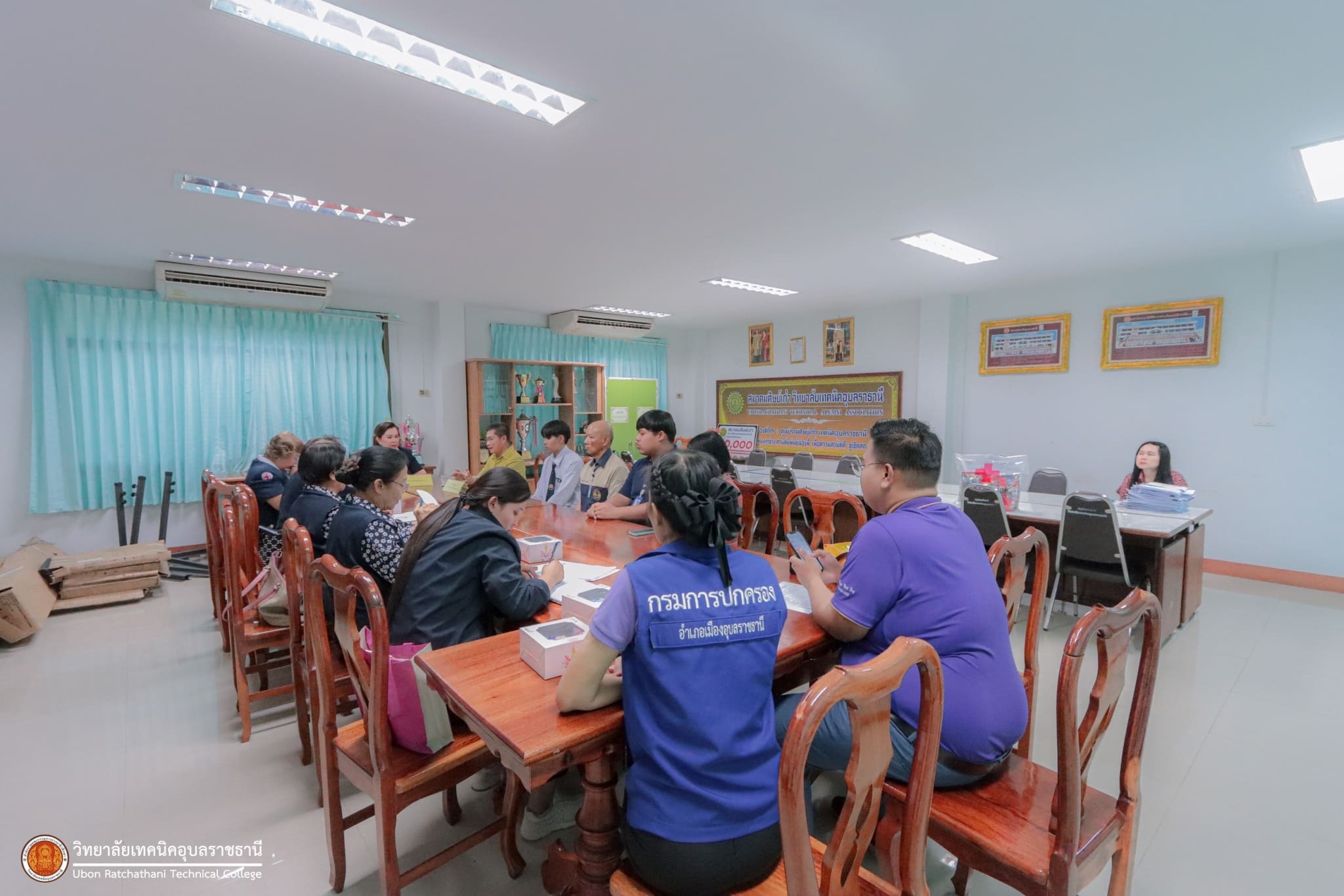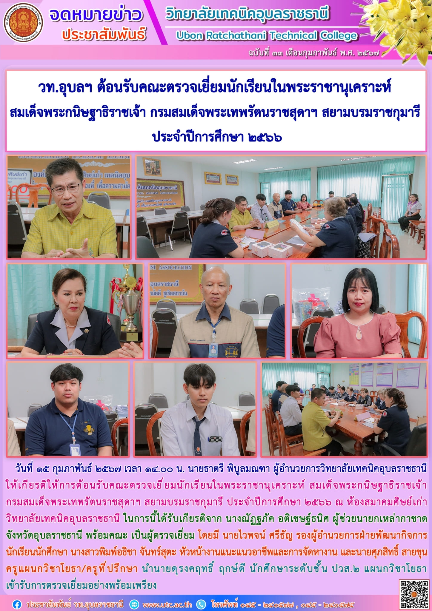 วันที่ ๑๕ กุมภาพันธ์ ๒๕๖๗ เวลา ๑๔.๐๐ น. นายธาตรี พิบูลมณฑา ผู้อำนวยการวิทยาลัยเทคนิคอุบลราชธานี ให้เกียรติให้การต้อนรับคณะตรวจเยี่ยมนักเรียนในพระราชานุเคราะห์ สมเด็จพระกนิษฐาธิราชเจ้า กรมสมเด็จพระเทพรัตนราชสุดาฯ สยามบรมราชกุมารี ประจำปีการศึกษา ๒๕๖๖ ณ ห้องสมาคมศิษย์เก่า วิทยาลัยเทคนิคอุบลราชธานี ในการนี้ได้รับเกียรติจาก นางณัฏฐภัค อติเชษฐ์ธนิศ ผู้ช่วยนายกเหล่ากาชาดจังหวัดอุบลราชธานี พร้อมคณะ เป็นผู้ตรวจเยี่ยม โดยมี นายไวพจน์ ศรีธัญ รองผู้อำนวยการฝ่ายพัฒนากิจการนักเรียนนักศึกษา นางสาวพิมพ์อธิชา จันทร์สุตะ หัวหน้างานแนะแนวอาชีพและการจัดหางาน และนายศุภสิทธิ์ สายขุน ครูแผนกวิชาโยธา/ครูที่ปรึกษา นำนายดุรงคฤทธิ์ ฤกษ์ดี นักศึกษาระดับชั้น ปวส.๒ แผนกวิชาโยธา เข้ารับการตรวจเยี่ยมอย่างพร้อมเพรียง