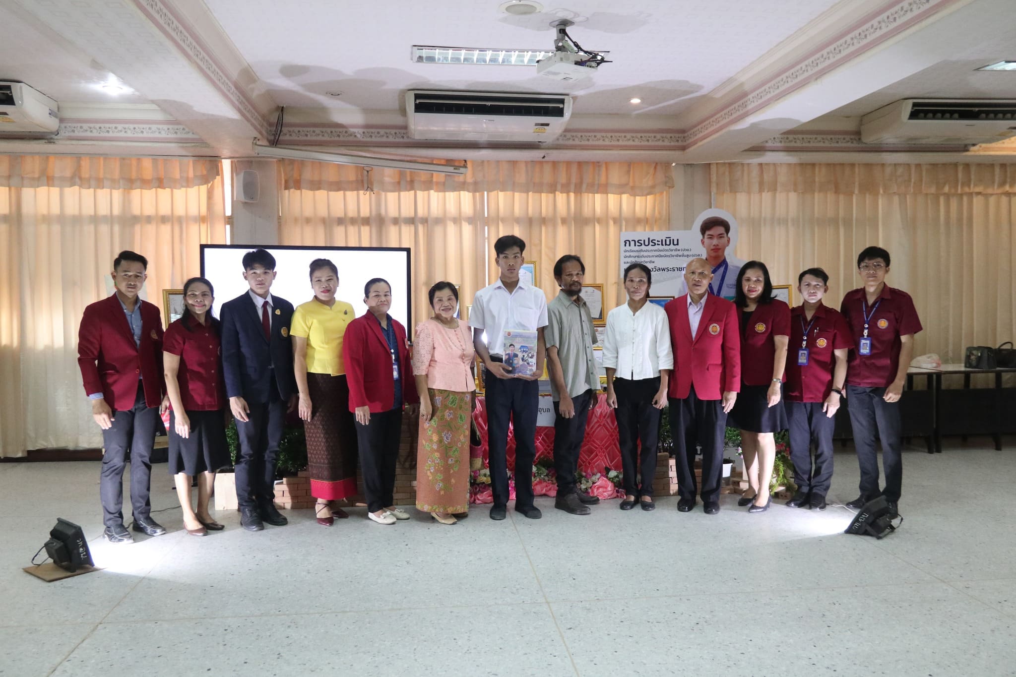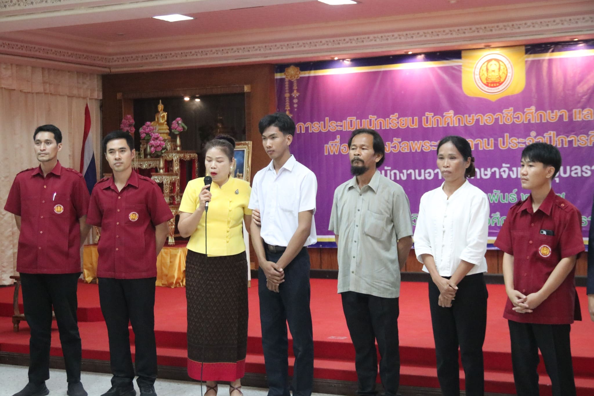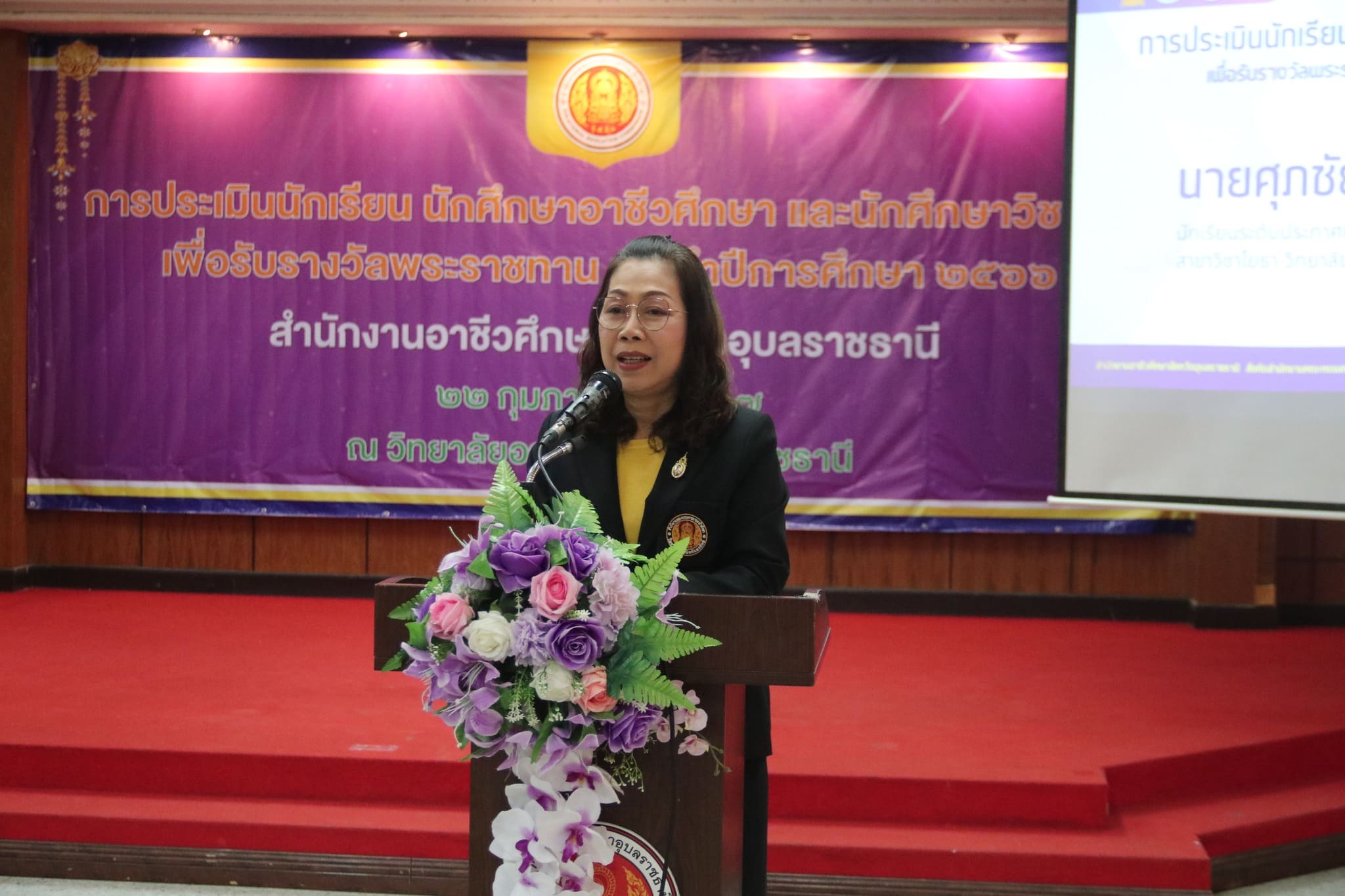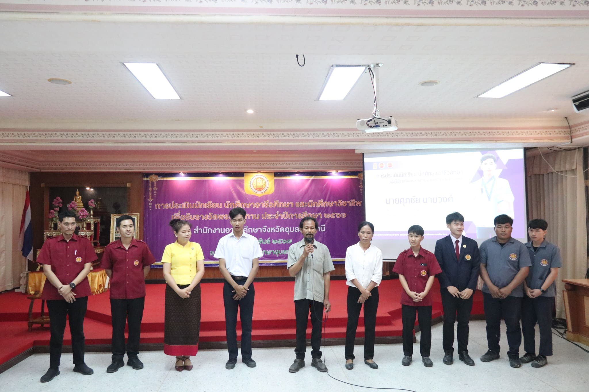 วันที่ ๒๒ กุมภาพันธ์ ๒๕๖๗ เวลา ๐๙.๐๐ น. นายธาตรี พิบูลมณฑา ผู้อำนวยการวิทยาลัยเทคนิคอุบลราชธานี ปฏิบัติหน้าที่ ผู้อำนวยการสำนักงานอาชีวศึกษาจังหวัดอุบลราชธานี มอบหมายให้ นางสาวลฎาภา แสวงทรัพย์ ผู้อำนวยการวิทยาลัยอาชีวศึกษาอุบลราชธานี เป็นประธานกรรมการการประเมินนักเรียน นักศึกษาอาชีวศึกษา เพื่อรับรางวัลพระราชทาน ประจำปีการศึกษา ๒๕๖๖ ณ วิทยาลัยอาชีวศึกษาอุบลราชธานี ในการนี้ นางราตรี สะดีวงศ์ รองผู้อำนวยการฝ่ายแผนงานและความร่วมมือ ปฏิบัติหน้าที่เลขานุการสำนักงานอาชีวศึกษาจังหวัดอุบลราชธานี พร้อมด้วย บุคลากรสำนักงานอาชีวศึกษาจังหวัดอุบลราชธานี เข้าดำเนินการจัดการประเมินในครั้งนี้ โดยมี นายไวพจน์ ศรีธัญ รองผู้อำนวยการฝ่ายพัฒนากิจการนักเรียนนักศึกษา นายปริวัฒน์ ยืนยิ่ง หัวหน้าแผนกวิชาโยธา นางสาวทิพยดา สาระชาติ ครูแผนกวิชาสามัญสัมพันธ์ พร้อมด้วยคณะครู และบุคลากรทางการศึกษาที่เกี่ยวข้อง นำนายศุภชัย นามวงศ์ นักเรียนระดับชั้น ปวช.๓ แผนกวิชาโยธา เข้ารับการประเมิน ทั้งนี้มีคณะผู้บริหาร ครู บุคลากรทางการศึกษา และนักเรียน นักศึกษา ในสังกัดสำนักงานอาชีวศึกษาจังหวัดอุบลราชธานี เข้ารับการประเมินอย่างพร้อมเพรียง