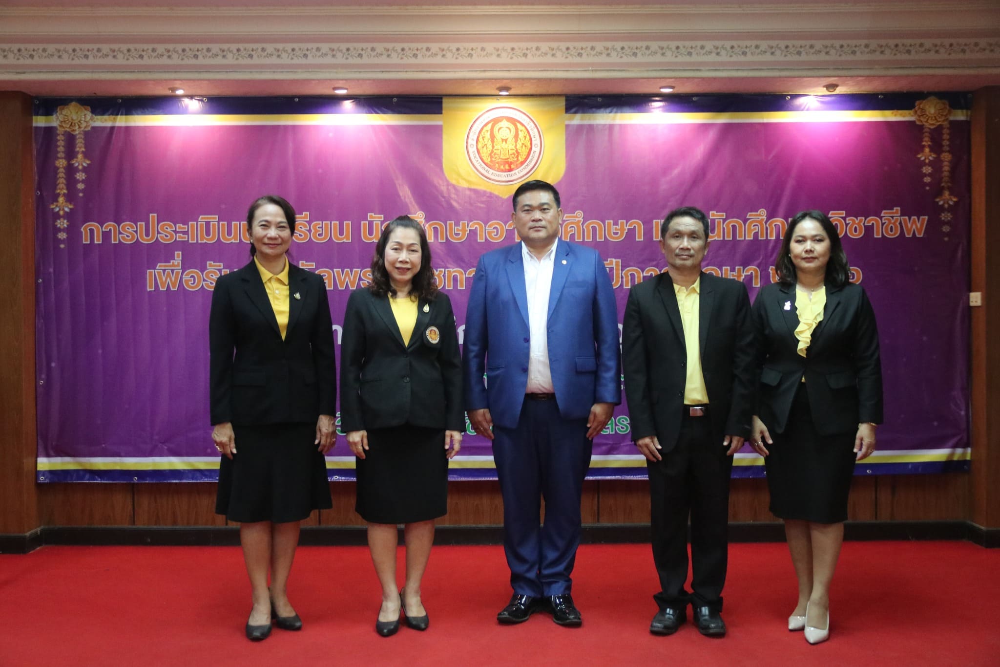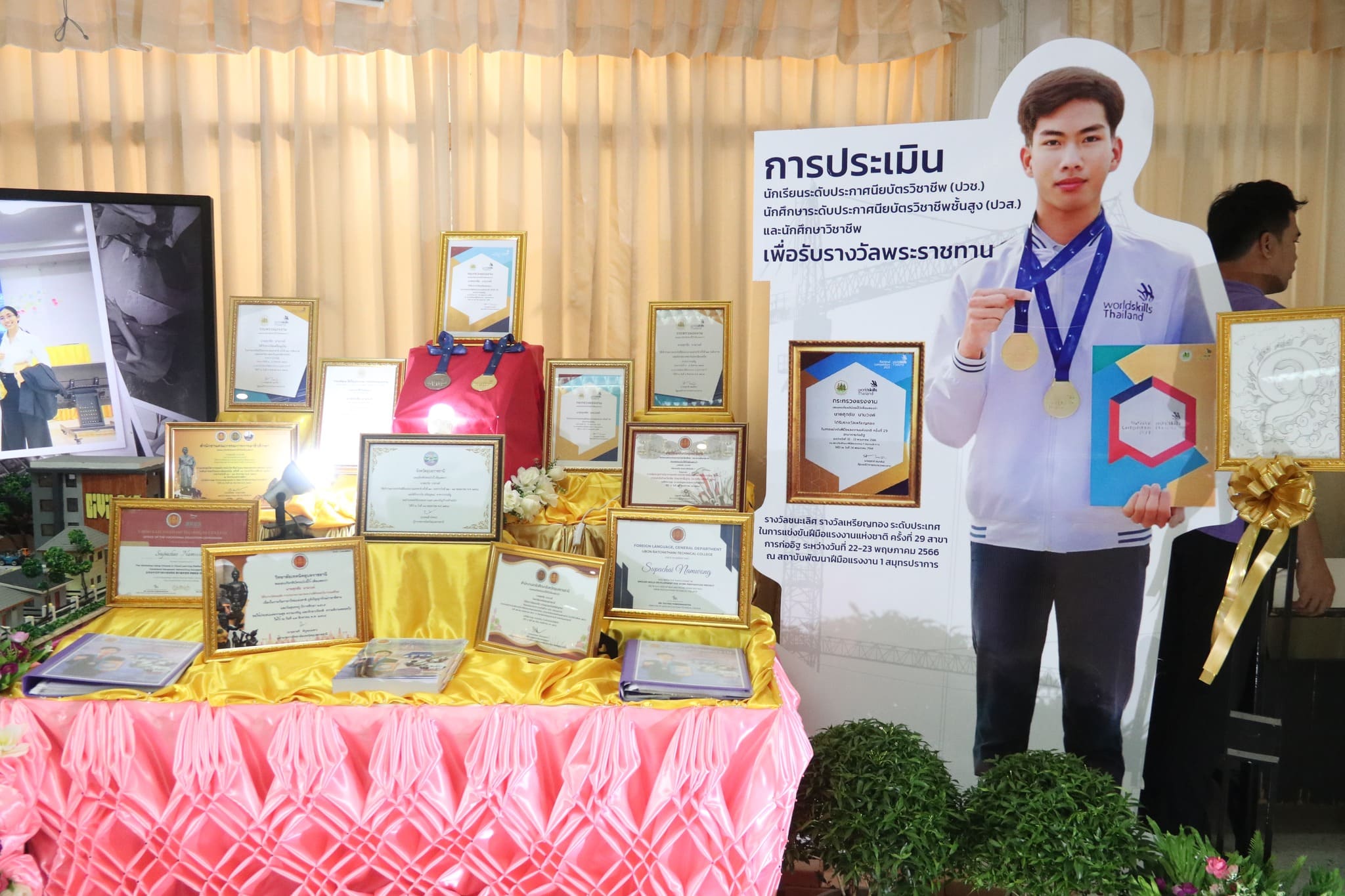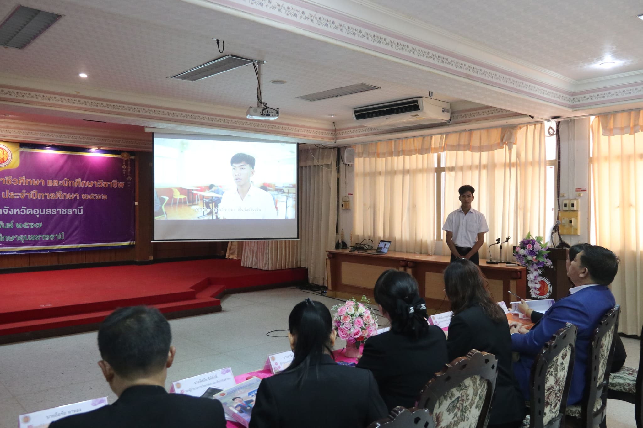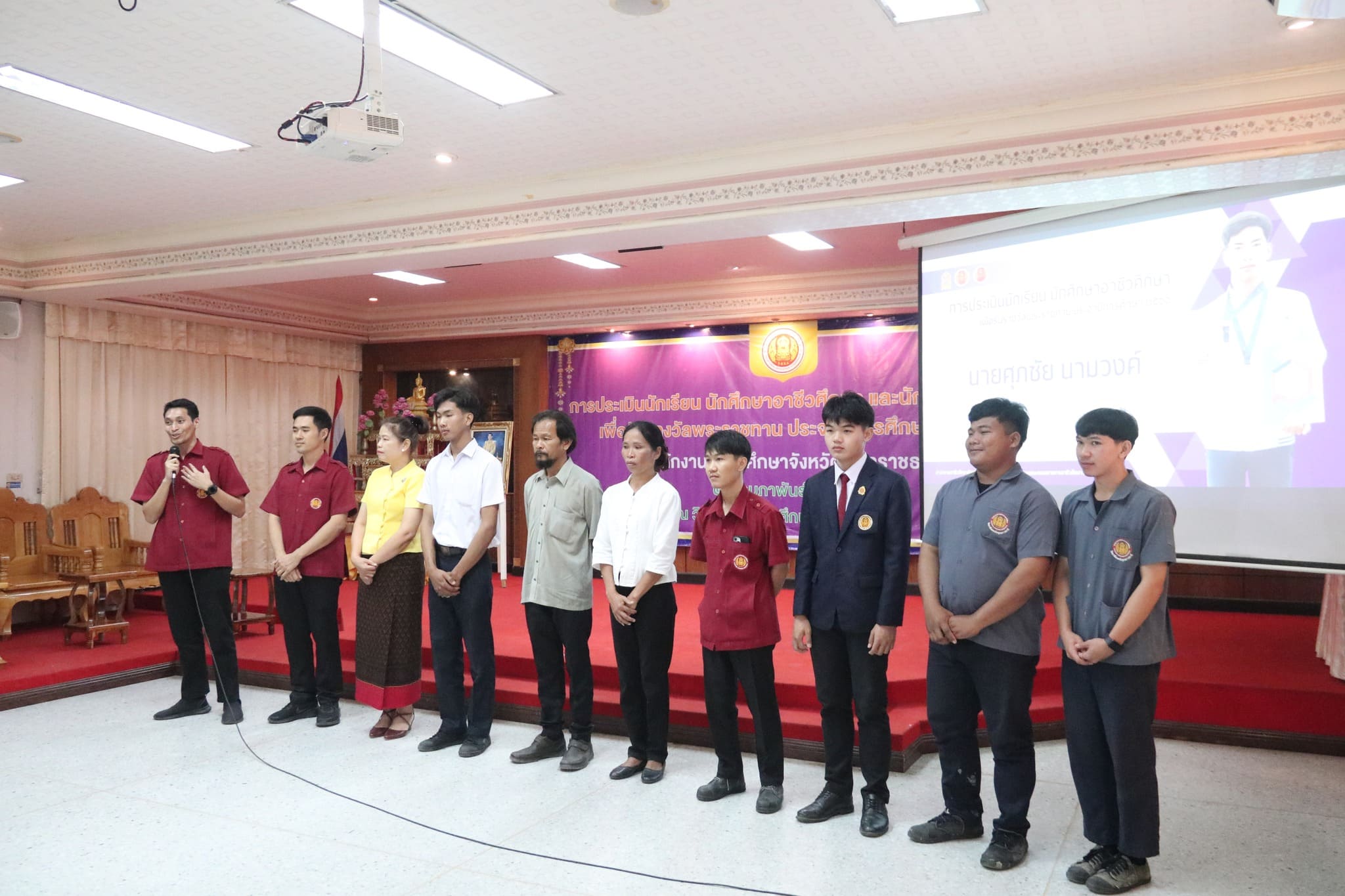 วันที่ ๒๒ กุมภาพันธ์ ๒๕๖๗ เวลา ๐๙.๐๐ น. นายธาตรี พิบูลมณฑา ผู้อำนวยการวิทยาลัยเทคนิคอุบลราชธานี ปฏิบัติหน้าที่ ผู้อำนวยการสำนักงานอาชีวศึกษาจังหวัดอุบลราชธานี มอบหมายให้ นางสาวลฎาภา แสวงทรัพย์ ผู้อำนวยการวิทยาลัยอาชีวศึกษาอุบลราชธานี เป็นประธานกรรมการการประเมินนักเรียน นักศึกษาอาชีวศึกษา เพื่อรับรางวัลพระราชทาน ประจำปีการศึกษา ๒๕๖๖ ณ วิทยาลัยอาชีวศึกษาอุบลราชธานี ในการนี้ นางราตรี สะดีวงศ์ รองผู้อำนวยการฝ่ายแผนงานและความร่วมมือ ปฏิบัติหน้าที่เลขานุการสำนักงานอาชีวศึกษาจังหวัดอุบลราชธานี พร้อมด้วย บุคลากรสำนักงานอาชีวศึกษาจังหวัดอุบลราชธานี เข้าดำเนินการจัดการประเมินในครั้งนี้ โดยมี นายไวพจน์ ศรีธัญ รองผู้อำนวยการฝ่ายพัฒนากิจการนักเรียนนักศึกษา นายปริวัฒน์ ยืนยิ่ง หัวหน้าแผนกวิชาโยธา นางสาวทิพยดา สาระชาติ ครูแผนกวิชาสามัญสัมพันธ์ พร้อมด้วยคณะครู และบุคลากรทางการศึกษาที่เกี่ยวข้อง นำนายศุภชัย นามวงศ์ นักเรียนระดับชั้น ปวช.๓ แผนกวิชาโยธา เข้ารับการประเมิน ทั้งนี้มีคณะผู้บริหาร ครู บุคลากรทางการศึกษา และนักเรียน นักศึกษา ในสังกัดสำนักงานอาชีวศึกษาจังหวัดอุบลราชธานี เข้ารับการประเมินอย่างพร้อมเพรียง
