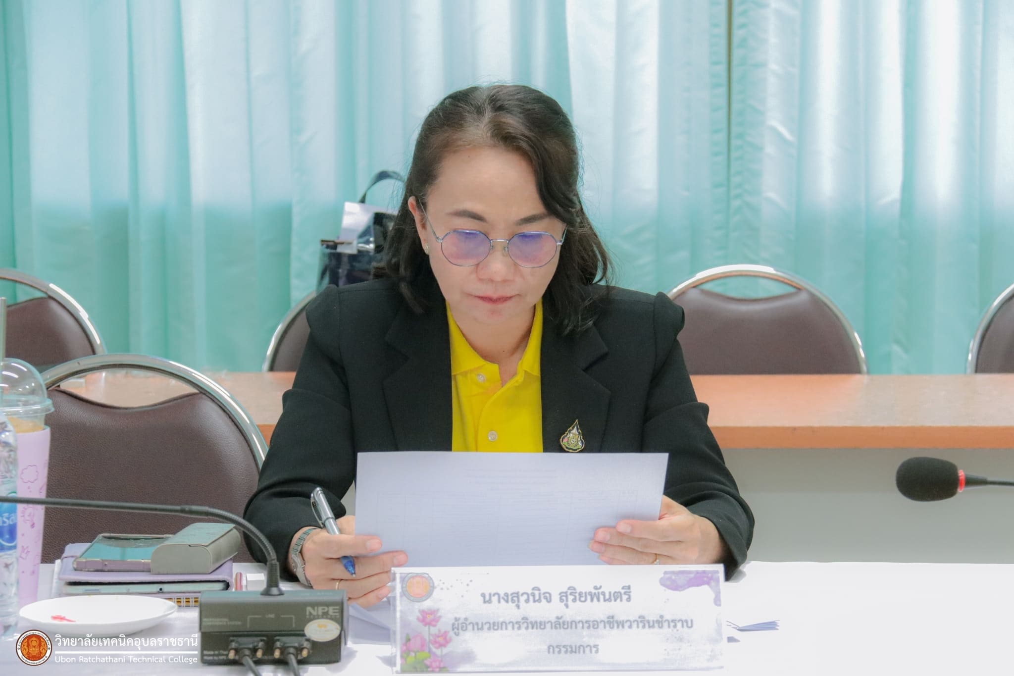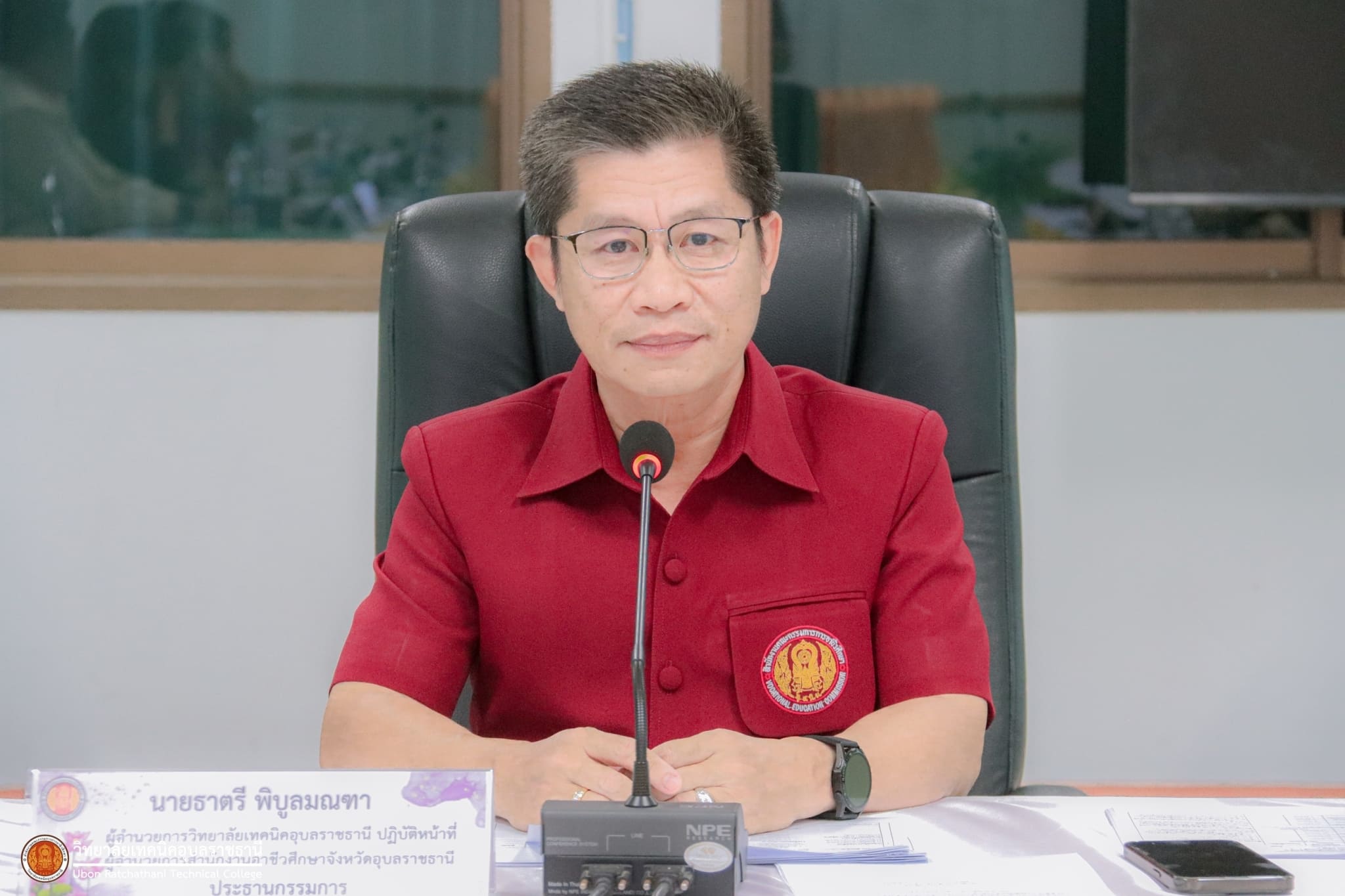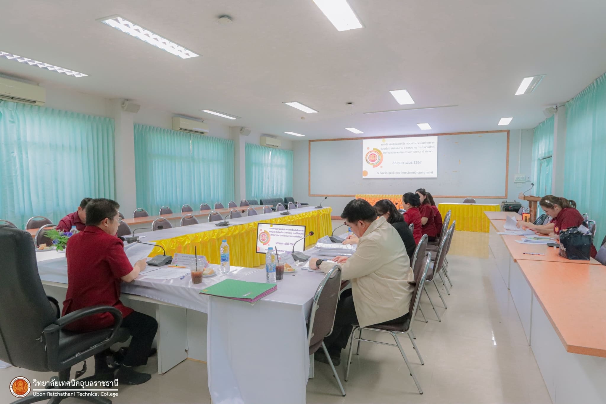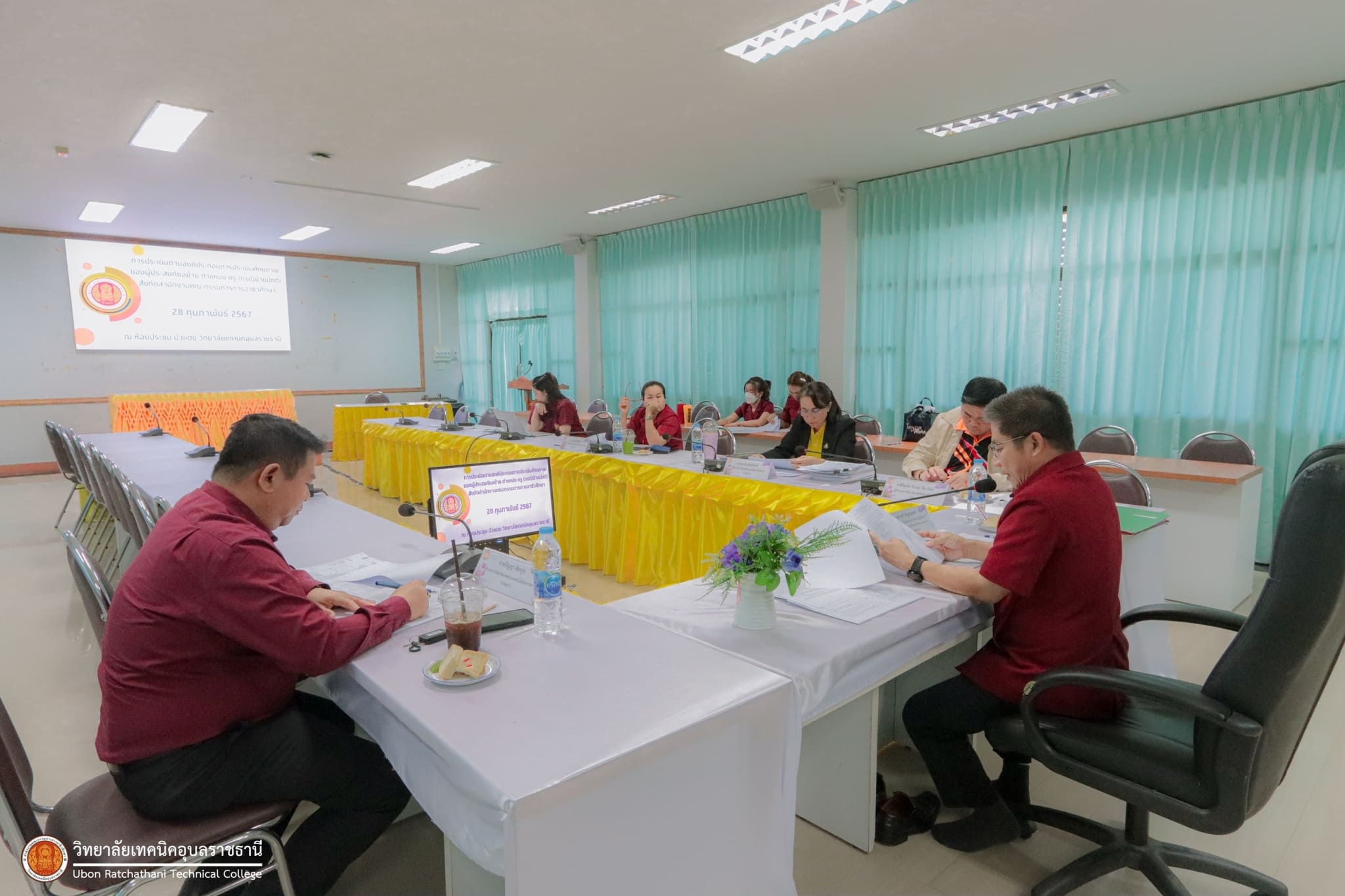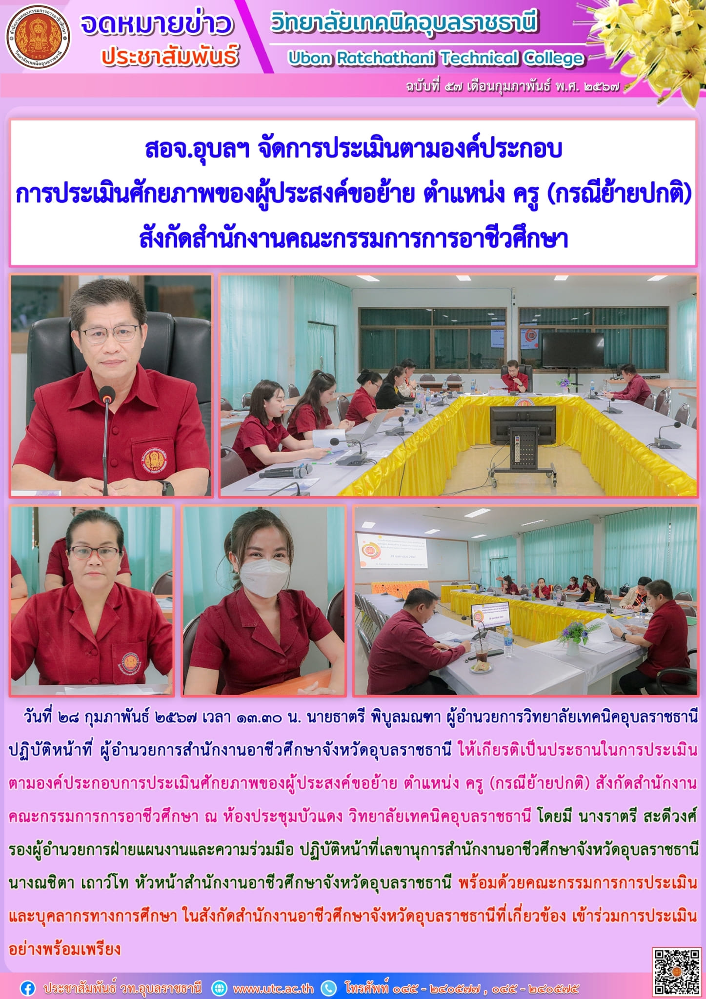 วันที่ ๒๘ กุมภาพันธ์ ๒๕๖๗ เวลา ๑๓.๓๐ น. นายธาตรี พิบูลมณฑา ผู้อำนวยการวิทยาลัยเทคนิคอุบลราชธานี ปฏิบัติหน้าที่ ผู้อำนวยการสำนักงานอาชีวศึกษาจังหวัดอุบลราชธานี ให้เกียรติเป็นประธานในการประเมินตามองค์ประกอบการประเมินศักยภาพของผู้ประสงค์ขอย้าย ตำแหน่ง ครู (กรณีย้ายปกติ) สังกัดสำนักงานคณะกรรมการการอาชีวศึกษา ณ ห้องประชุมบัวแดง วิทยาลัยเทคนิคอุบลราชธานี โดยมี นางราตรี สะดีวงศ์ รองผู้อำนวยการฝ่ายแผนงานและความร่วมมือ ปฏิบัติหน้าที่เลขานุการสำนักงานอาชีวศึกษาจังหวัดอุบลราชธานี นางณชิตา เถาว์โท หัวหน้าสำนักงานอาชีวศึกษาจังหวัดอุบลราชธานี พร้อมด้วยคณะกรรมการการประเมิน และบุคลากรทางการศึกษา ในสังกัดสำนักงานอาชีวศึกษาจังหวัดอุบลราชธานีที่เกี่ยวข้อง เข้าร่วมการประเมินอย่างพร้อมเพรียง