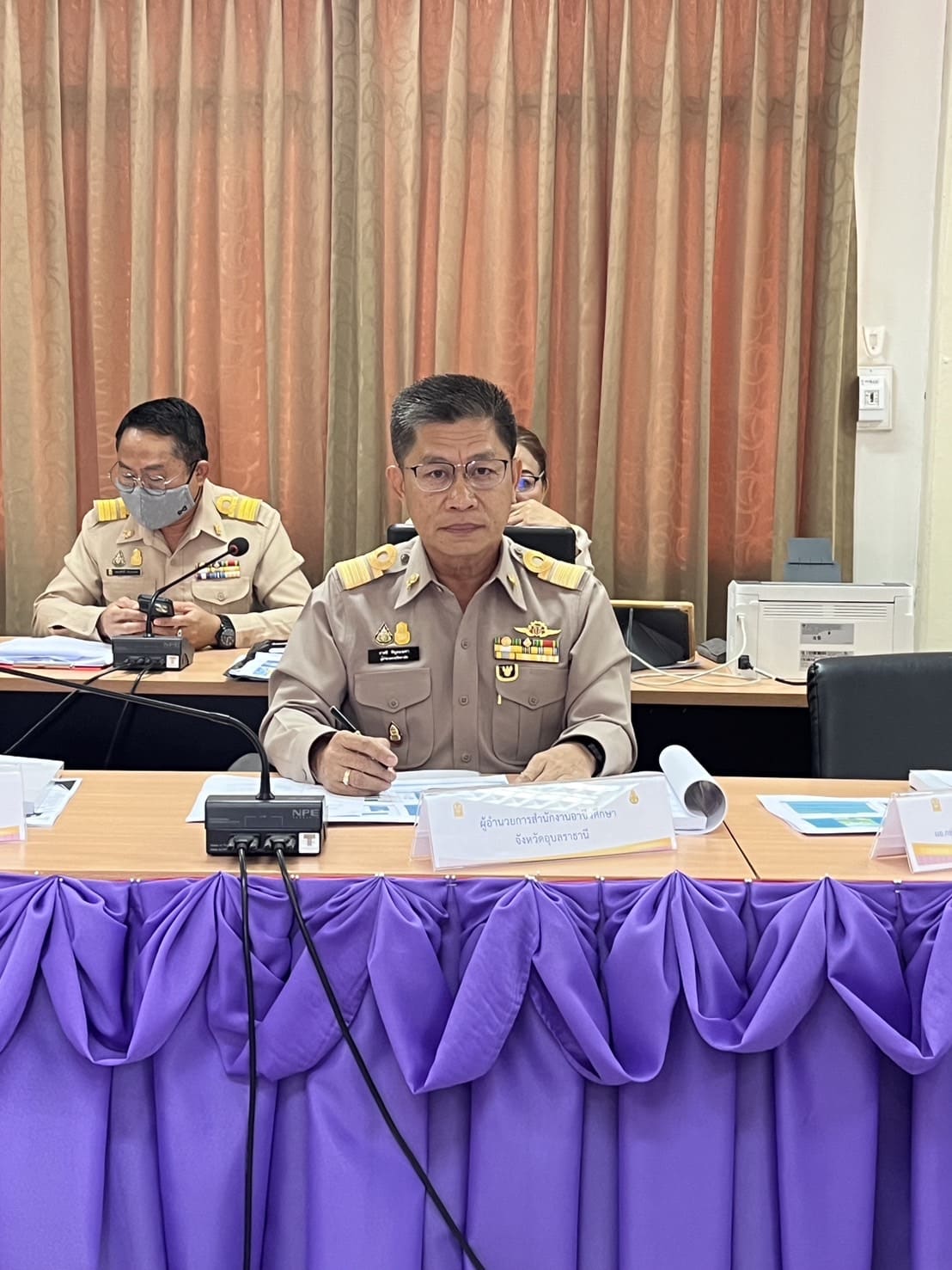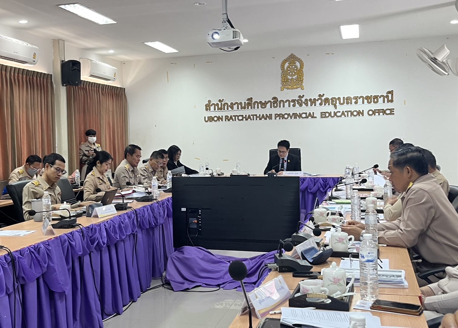 วันที่ ๕ มีนาคม ๒๕๖๗ เวลา ๐๙.๐๐ น. นายธาตรี พิบูลมณฑา ผู้อำนวยการวิทยาลัยเทคนิคอุบลราชธานี ปฏิบัติหน้าที่ ผู้อำนวยการสำนักงานอาชีวศึกษาจังหวัดอุบลราชธานี ให้เกียรติเข้าร่วมการประชุมประสานแผนการตรวจราชการ ของผู้ตรวจราชการ นายสุภชัย จันปุ่ม ในพื้นที่เขตตรวจราชการที่ ๑๔ และตรวจราชการ กรณีปกติ รอบที่ ๑ ประจำปีงบประมาณ พ.ศ. ๒๕๖๗ ณ ห้องประชุม ๑ สำนักงานศึกษาธิการจังหวัดอุบลราชธานี ในการนี้ได้รับเกียรติจาก นายสุภชัย จันปุ่ม ผู้ตรวจราชการกระทรวงศึกษาธิการ เป็นประธานในการประชุม ทั้งนี้เพื่อรับฟังการชี้แจงนโยบายการตรวจราชการกระทรวงศึกษาธิการ ประจำปีงบประมาณ พ.ศ. ๒๕๖๗ และนำเสนอรายงานผลการดำเนินงานขับเคลื่อนนโยบายการศึกษาสู่การปฏิบัติเฉพาะที่เป็นวิธีการปฏิบัติที่เป็นเลิศ รูปแบบแนวทางหรือนวัตกรรมที่เป็นแบบอย่างที่ดี (Best Practice) ของสำนักงานอาชีวศึกษาจังหวัดอุบลราชธานี