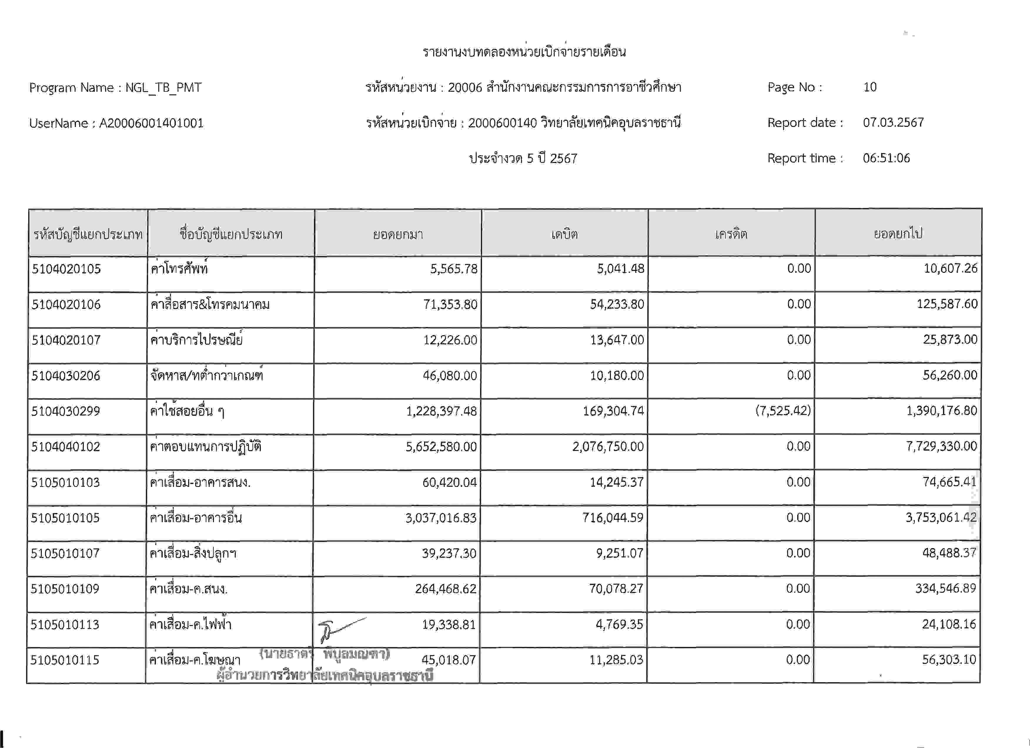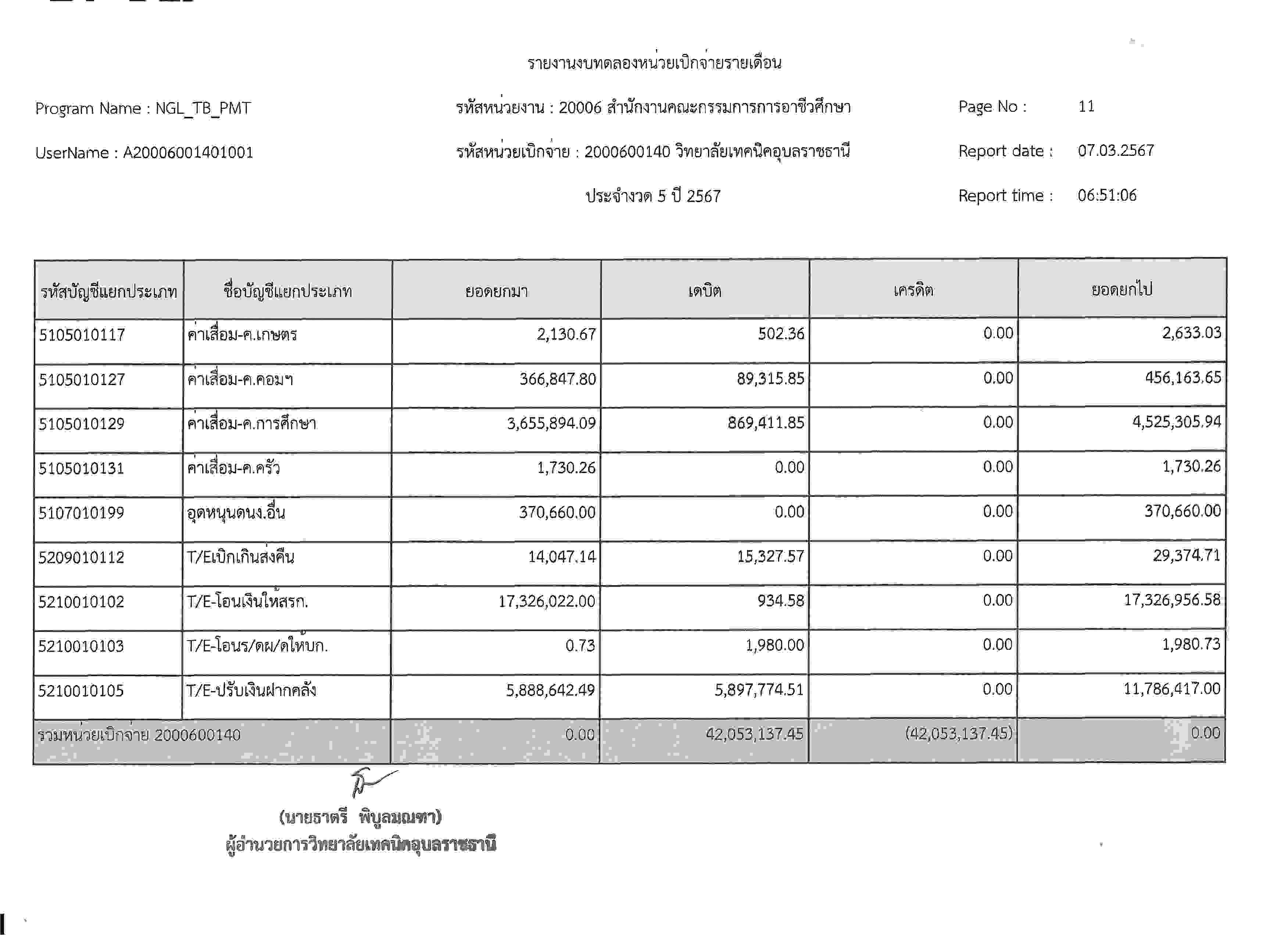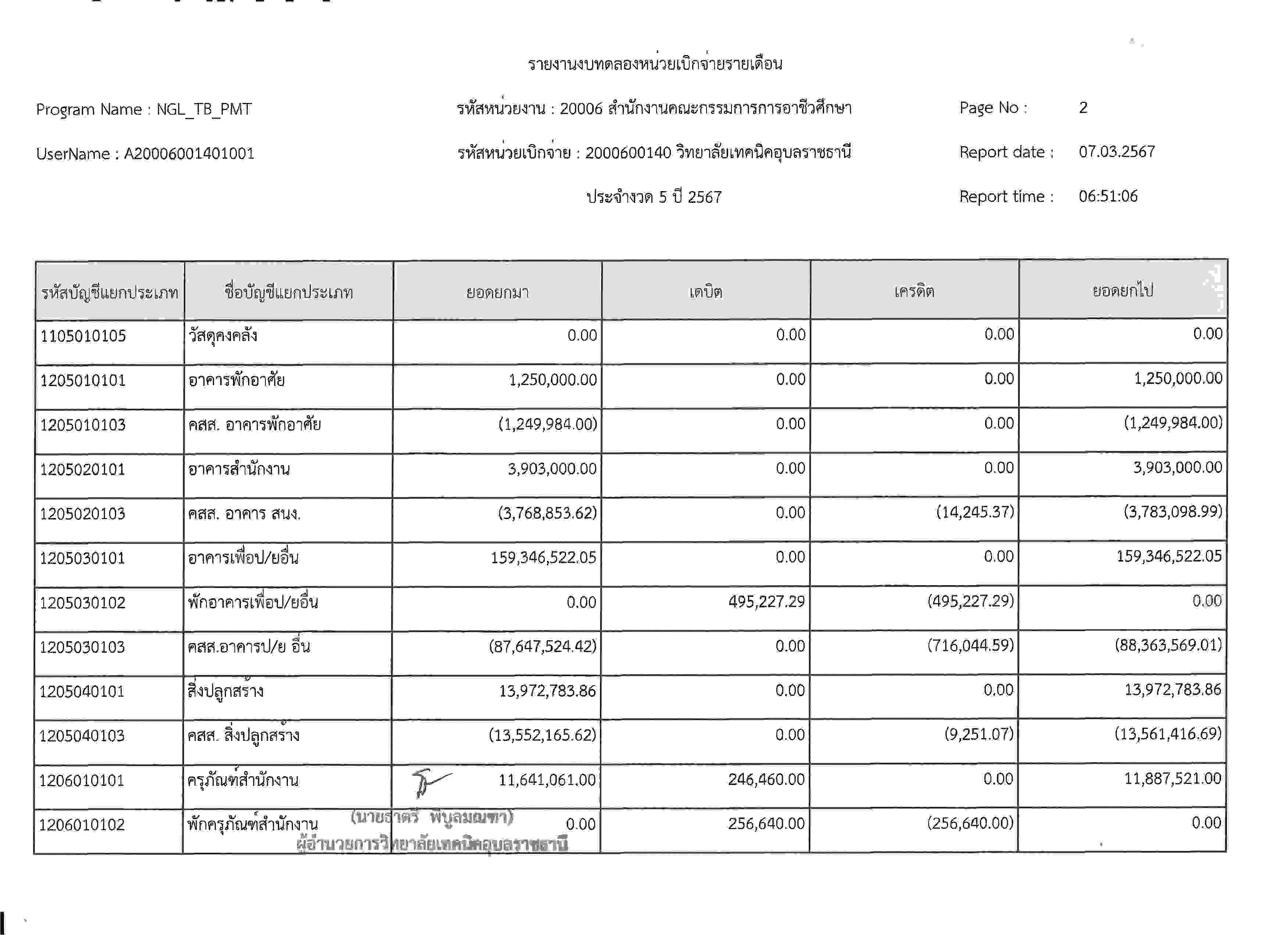 รายงานงบทดลองประจำเดือนกุมภาพันธ์ 2567
