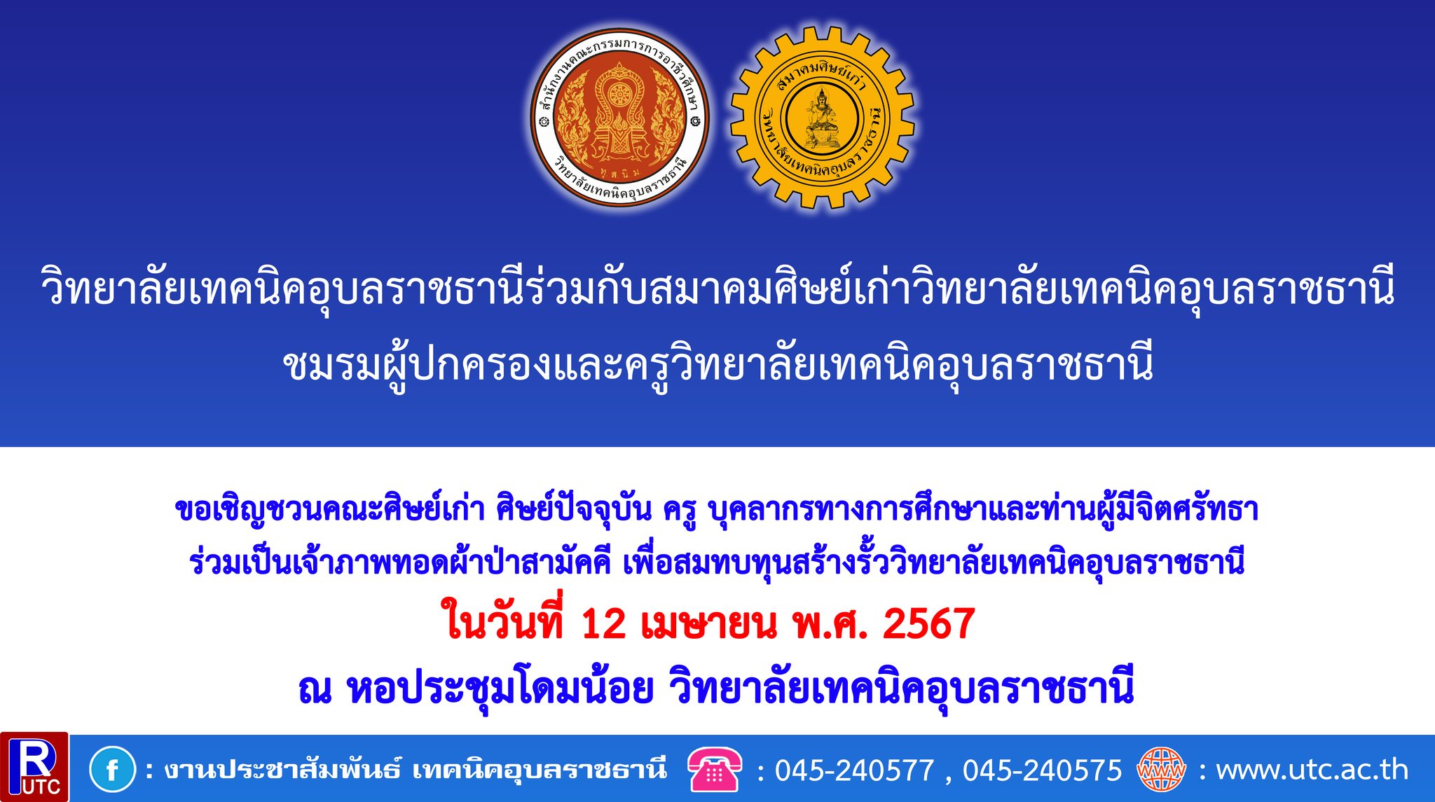 ขอเชิญชวนคณะศิษย์เก่า ศิษย์ปัจจุบัน ครู บุคลากรทางการศึกษาและท่านผู้มีจิตศรัทธา 🙏 💛 ร่วมเป็นเจ้าภาพ” ทอดผ้าป่าสามัคคี เพื่อสมทบทุนสร้างรั้ววิทยาลัยเทคนิคอุบลราชธานี” ในวันที่ 12 เมษายน พ.ศ. 2567 ณ หอประชุมโดมน้อย วิทยาลัยเทคนิคอุบลราชธานี