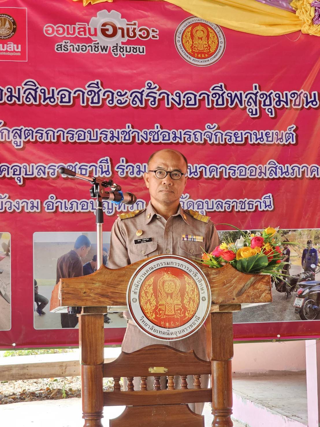 วันที่ ๑๙ มีนาคม ๒๕๖๗ ที่ผ่านมา นายธาตรี พิบูลมณฑา ผู้อำนวยการวิทยาลัยเทคนิคอุบลราชธานี มอบหมายให้ นายไวพจน์ ศรีธัญ รองผู้อำนวยการฝ่ายพัฒนากิจการนักเรียนนักศึกษา เป็นผู้กล่าวรายงานในพิธีเปิดโครงการออมสินอาชีวะสร้างอาชีพสู่ชุมชน ณ องค์การบริหารส่วนตำบลบัวงาม อำเภอบุญฑริก จังหวัดอุบลราชธานี ซึ่งเป็นความร่วมมือระหว่างวิทยาลัยเทคนิคอุบลราชธานี ร่วมกับธนาคารออมสินภาค ๑๒ ในการนี้ได้รับเกียรติจาก นายสุภณ กอสุขทวีคูณ นายกองค์การบริหารส่วนตำบลบัวงาม เป็นประธานในพิธีเปิด โดยมี นายกตนนท์ นาทัน หัวหน้าแผนกวิชาช่างยนต์/เครื่องกล นายวัฒนา ทองเทพ หัวหน้างานโครงการพิเศษและการบริการชุมชน นายนรา เดชะคำภู หัวหน้าศูนย์ซ่อมสร้างเพื่อชุมชน (Fix it Center) แบบถาวร วิทยาลัยเทคนิคอุบลราชธานี พร้อมด้วยคณะครู และบุคลากรทางการศึกษาที่เกี่ยวข้อง นำนักศึกษา แผนกวิชาช่างยนต์/เครื่องกล เข้าร่วมพิธีเปิดอย่างพร้อมเพรียง ทั้งนี้เพื่อพัฒนานักเรียน นักศึกษา ให้เกิดการเรียนรู้เชิงประสบการณ์ ได้นำความรู้ ทักษะที่ได้จากห้องเรียนมาใช้ในสถานการณ์จริง คุณครูและบุคลากรทางการศึกษา มีจิตอาสา ช่วยเหลือประชาชน และชุมชน เสริมสร้างคุณธรรมจริยธรรม ความรัก ความสามัคคีในหมู่คณะต่อไป