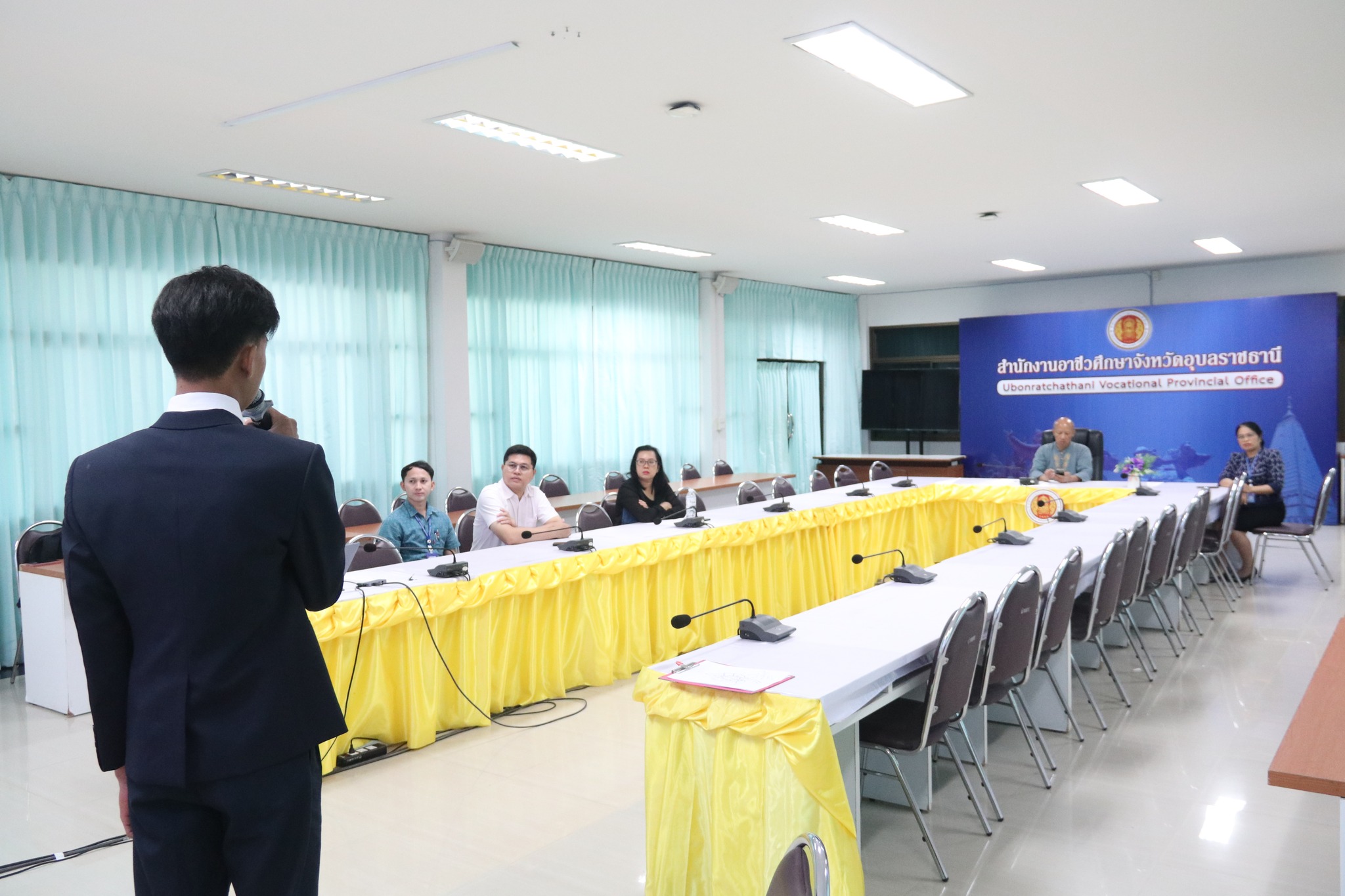 วันที่ ๒๒ มีนาคม ๒๕๖๗ เวลา ๐๙.๓๐ น. นายธาตรี พิบูลมณฑา ผู้อำนวยการวิทยาลัยเทคนิคอุบลราชธานี มอบหมายให้ นายไวพจน์ ศรีธัญ รองผู้อำนวยการฝ่ายพัฒนากิจการนักเรียนนักศึกษา และนางสาวสายฝน สาระผล รองผู้อำนวยการฝ่ายบริหารทรัพยากร เข้าตรวจเยี่ยมและให้กำลังใจคณะครู และนักเรียน นักศึกษา ที่ได้มาเตรียมความพร้อมรับการประเมินนักเรียน นักศึกษาอาชีวศึกษา เพื่อรับรางวัลพระราชทาน ประจำปีการศึกษา ๒๕๖๖ ณ ห้องประชุมบัวแดง โดยมี นายเกียรติพล บุญหล่อ หัวหน้างานประชาสัมพันธ์ นางศิรินณา ดอนชัย ครูแผนกวิชาสามัญสัมพันธ์ และนายบัญชา หาแก้ว ครูแผนกวิชาเทคโนโลยีคอมพิวเตอร์ นำนายศุภชัย นามวงศ์ นักเรียนระดับชั้น ปวช.๓ แผนกวิชาโยธา รับการตรวจเยี่ยมอย่างพร้อมเพรียง ทั้งนี้เพื่อให้การรับการประเมิน นักเรียน นักศึกษาอาชีวศึกษา เพื่อรับรางวัลพระราชทาน ประจำปีการศึกษา ๒๕๖๖ เป็นไปด้วยความเรียบร้อยต่อไป