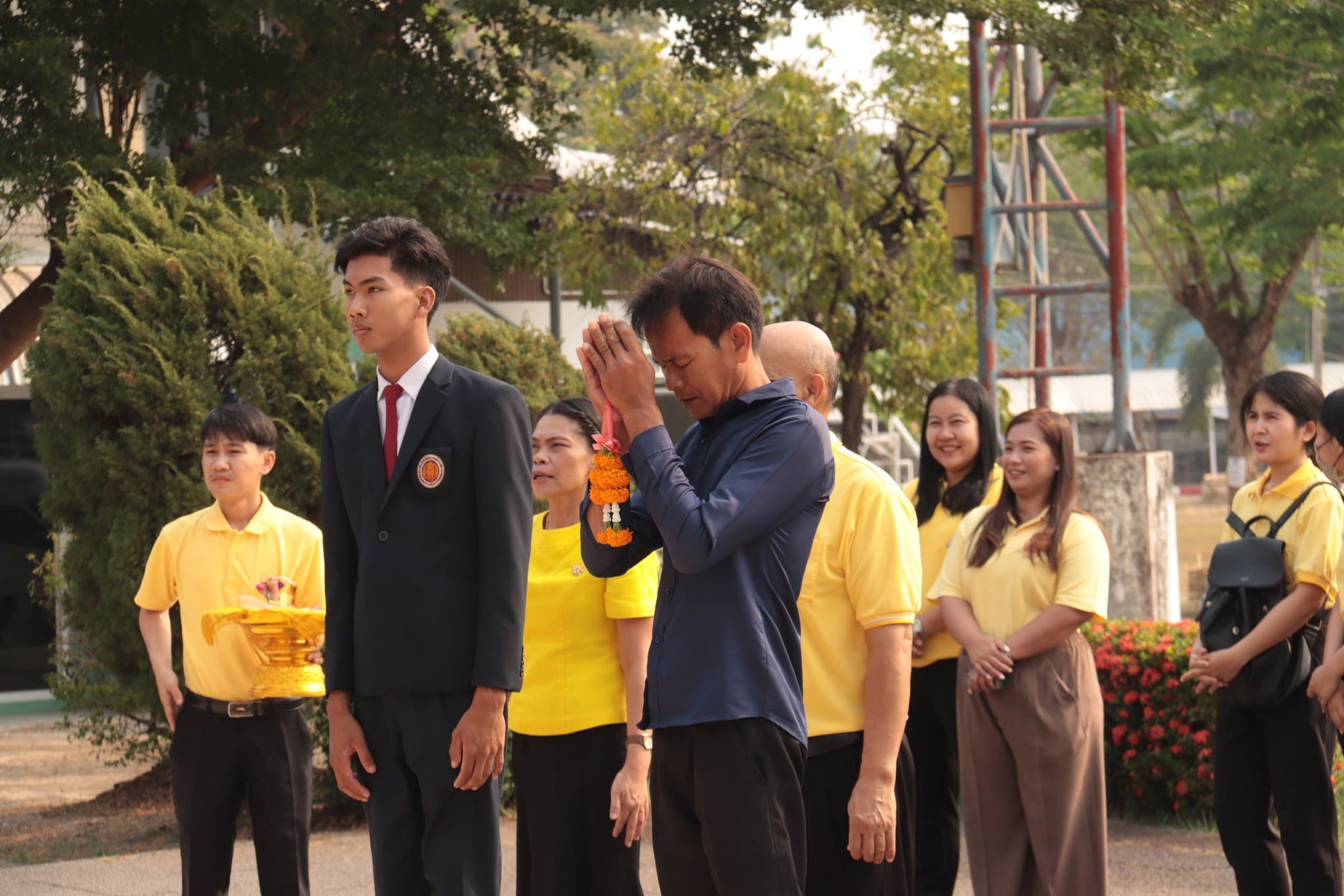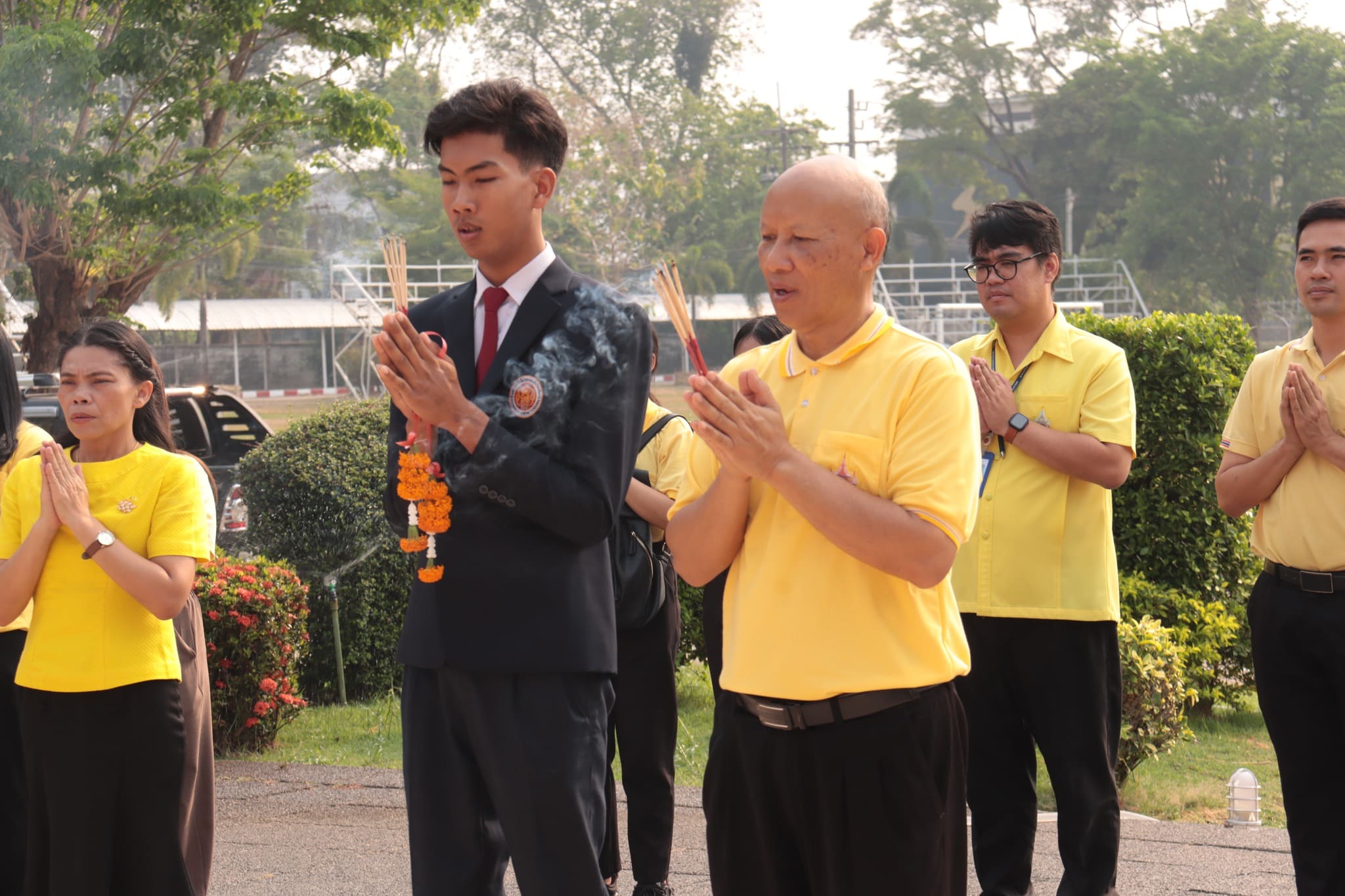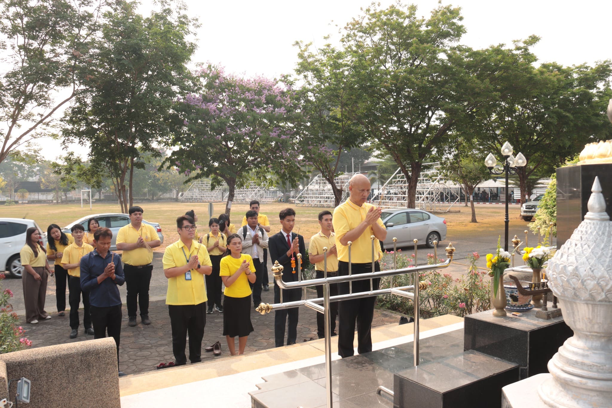 วันที่ ๒๕ มีนาคม ๒๕๖๗ เวลา ๐๘.๓๐ น. นายธาตรี พิบูลมณฑา ผู้อำนวยการวิทยาลัยเทคนิคอุบลราชธานี มอบหมายให้ นายไวพจน์ ศรีธัญ รองผู้อำนวยการฝ่ายพัฒนากิจการนักเรียนนักศึกษา พร้อมด้วย นางราตรี สะดีวงศ์ รองผู้อำนวยการฝ่ายแผนงานและความร่วมมือ นายปริวัฒน์ ยืนยิ่ง หัวหน้าแผนกวิชาโยธา นางสาวทิพยดา สาระชาติ ครูแผนกวิชาสามัญสัมพันธ์ คณะครูที่เกี่ยวข้อง นำนายศุภชัย นามวงศ์ นักเรียนระดับชั้น ปวช.๓ แผนกวิชาโยธา กราบสักการะสิ่งศักดิ์สิทธิ์ประจำวิทยาลัยเทคนิคอุบลราชธานี ทั้งนี้เพื่อความเป็นสิริมงคลเนื่องในโอกาสที่จะเดินทางไปเข้ารับการประเมินนักเรียน นักศึกษาอาชีวศึกษา เพื่อรับรางวัลพระราชทาน ประจำปีการศึกษา ๒๕๖๖ ณ วิทยาลัยเทคนิคยโสธร จังหวัดยโสธร