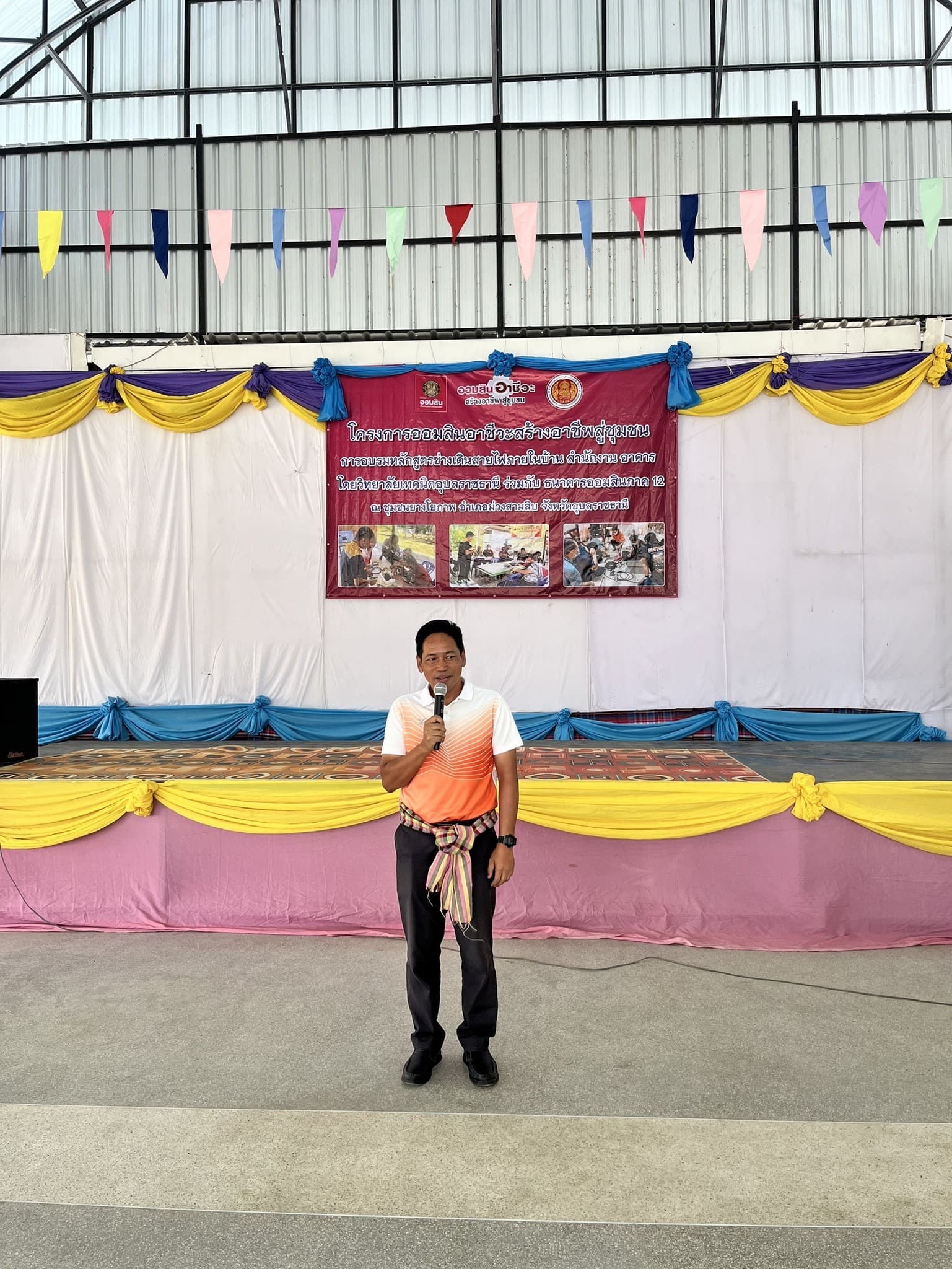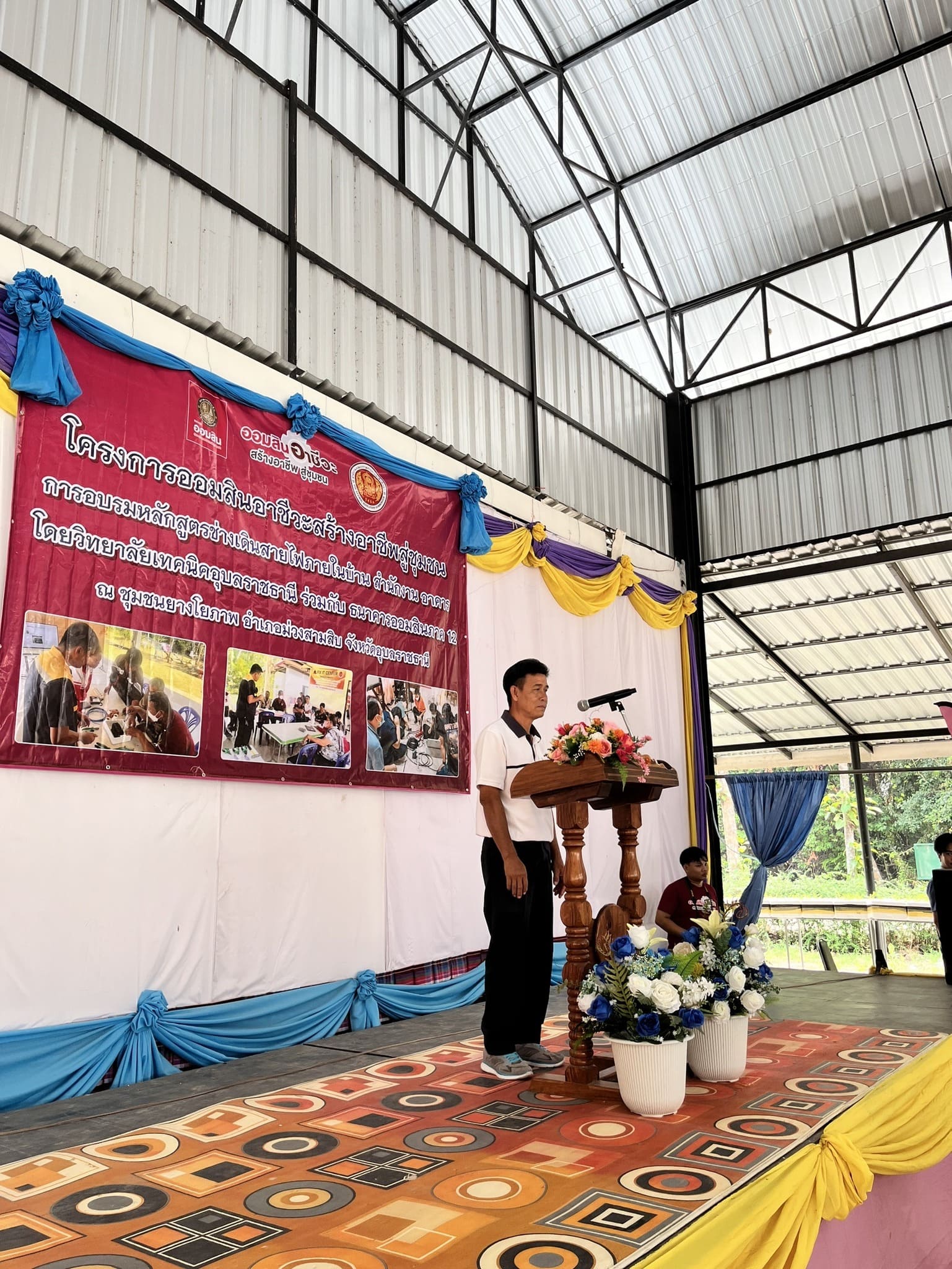 วันที่ ๒๖ มีนาคม ๒๕๖๗ เวลา ๐๙.๓๐ น. นายธาตรี พิบูลมณฑา ผู้อำนวยการวิทยาลัยเทคนิคอุบลราชธานี มอบหมายให้ นายไวพจน์ ศรีธัญ รองผู้อำนวยการฝ่ายพัฒนากิจการนักเรียนนักศึกษา เป็นผู้กล่าวรายงานในพิธีเปิดโครงการออมสินอาชีวะสร้างอาชีพสู่ชุมชน ณ ชุมชนยางโยภาพ อำเภอม่วงสามสิบ จังหวัดอุบลราชธานี ซึ่งเป็นความร่วมมือระหว่างวิทยาลัยเทคนิคอุบลราชธานี ร่วมกับธนาคารออมสินภาค ๑๒ ในการนี้ นายถาวร ทองย่อย นายกองค์การบริหารส่วนตำบลยางโยภาพ ให้เกียรติกล่าวพบปะ และมอบหมายให้ นายธีรวัฒน์ เชื้อพันธ์ รองนายกองค์การบริหารส่วนตำบลยางโยภาพ เป็นประธานในพิธีเปิด โดยมี นายวัฒนา ทองเทพ หัวหน้างานโครงการพิเศษและการบริการชุมชน นายโกเศียร นนทวี หัวหน้าหน่วยพัฒนาสังคมและชุมชน ธนาคารออมสินภาค ๑๒ นายนรา เดชะคำภู หัวหน้าศูนย์ซ่อมสร้างเพื่อชุมชน (Fix it Center) แบบถาวร วิทยาลัยเทคนิคอุบลราชธานี พร้อมด้วยคณะครู และบุคลากรทางการศึกษาที่เกี่ยวข้อง นำนักศึกษา แผนกวิชาช่างไฟฟ้ากำลัง เข้าร่วมพิธีเปิดอย่างพร้อมเพรียง ทั้งนี้เพื่อพัฒนานักเรียน นักศึกษา ให้เกิดการเรียนรู้เชิงประสบการณ์ ได้นำความรู้ ทักษะที่ได้จากห้องเรียนมาใช้ในสถานการณ์จริง คุณครูและบุคลากรทางการศึกษา มีจิตอาสา ช่วยเหลือประชาชน และชุมชน เสริมสร้างคุณธรรมจริยธรรม ความรัก ความสามัคคีในหมู่คณะต่อไป