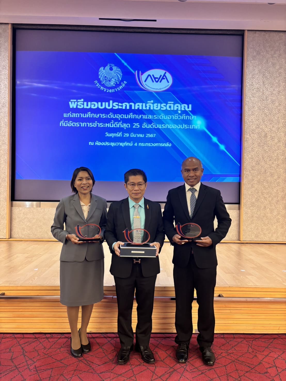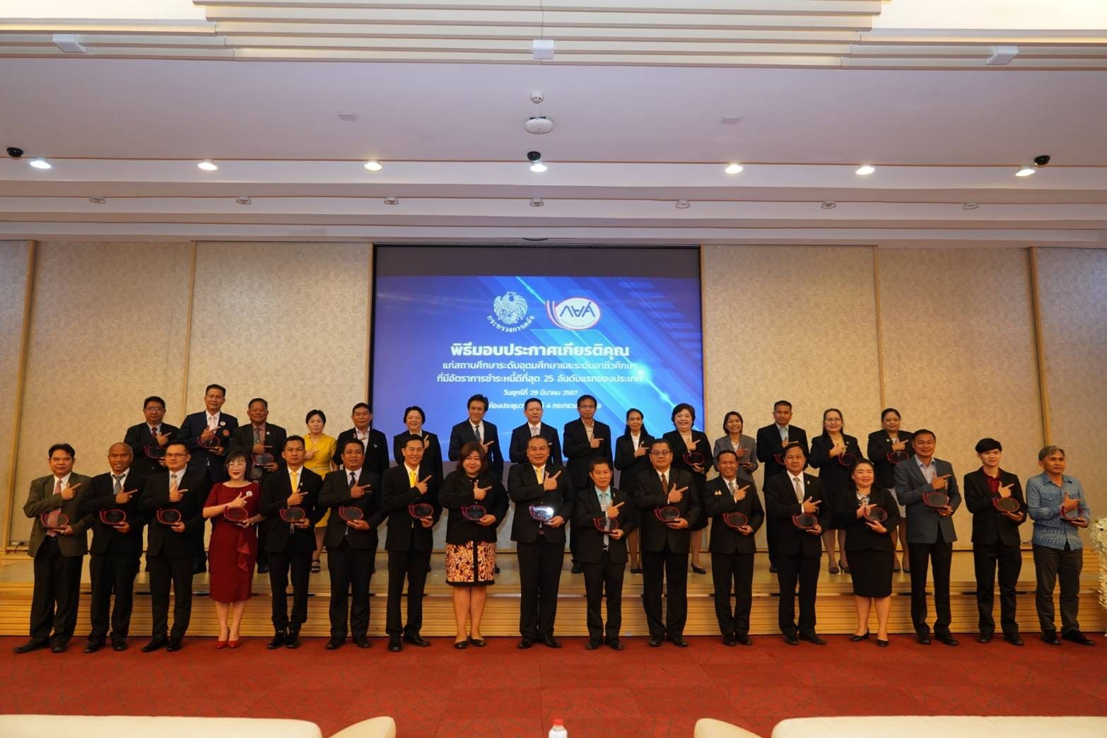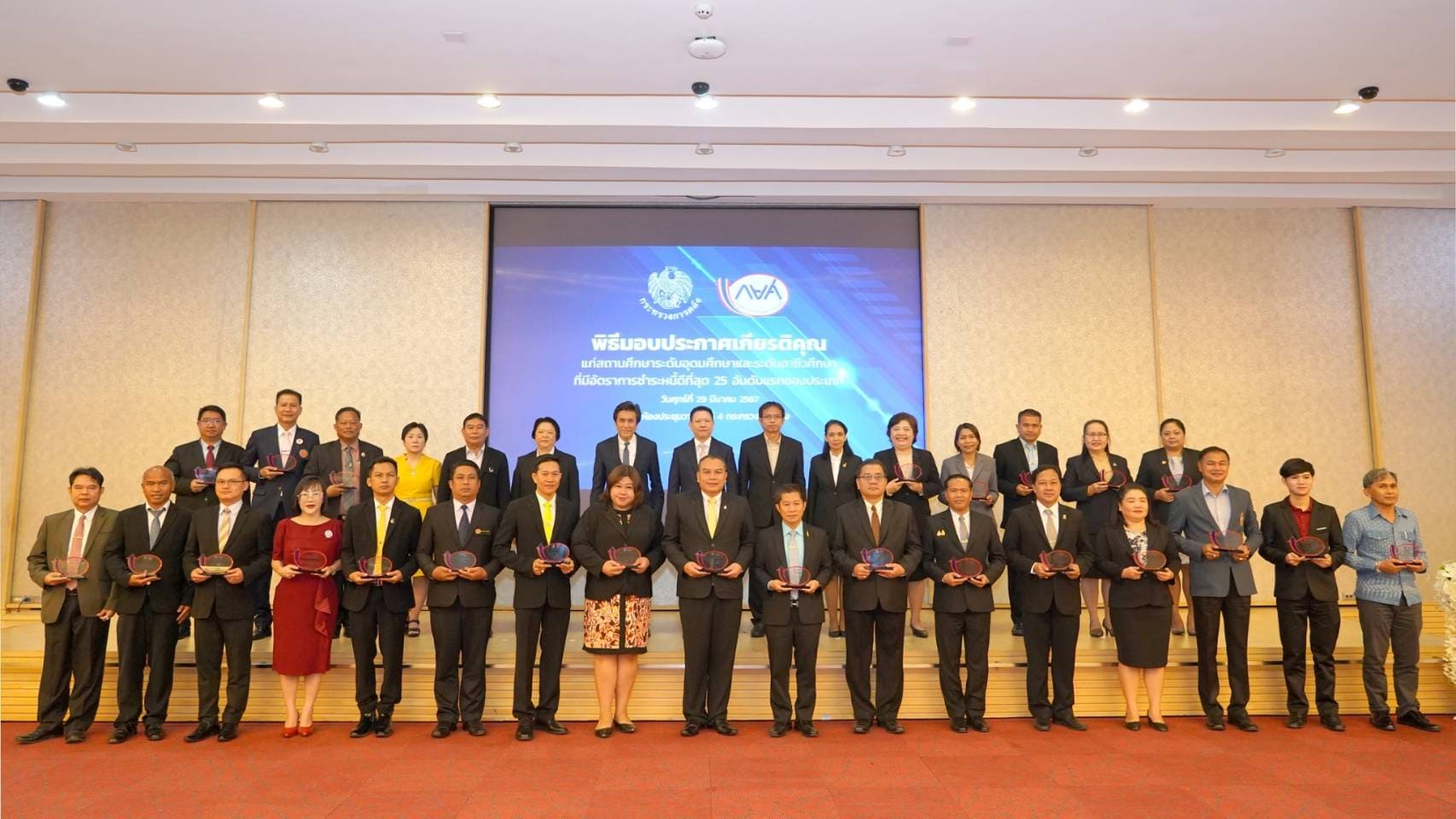 พิธีมอบโล่ประกาศเกียรติคุณแก่สถานศึกษาระดับอุดมศึกษาและระดับอาชีวศึกษาที่มีอัตราการชำระหนี้ดีที่สุด ๒๕ อันดับแรกของประเทศ