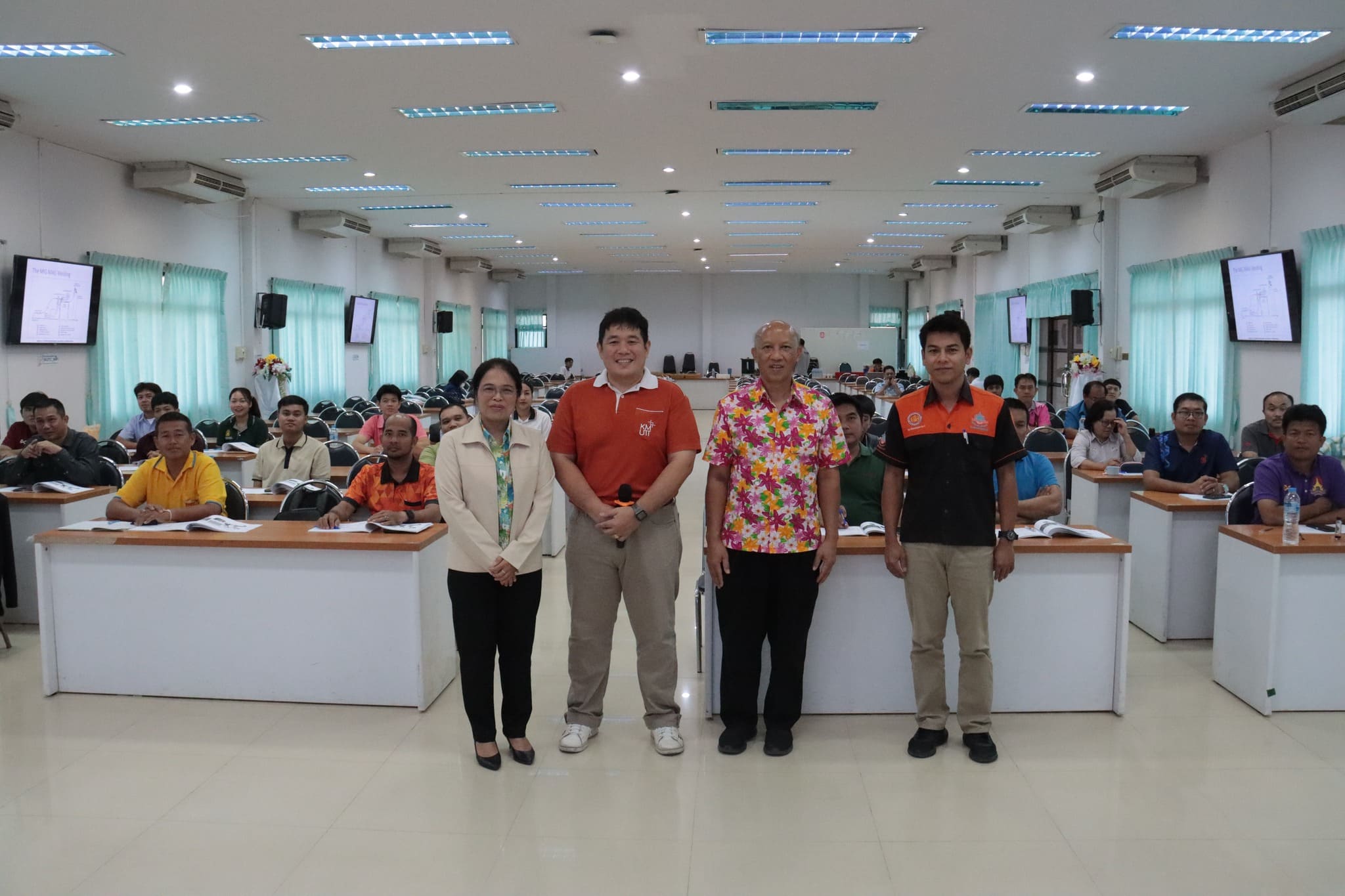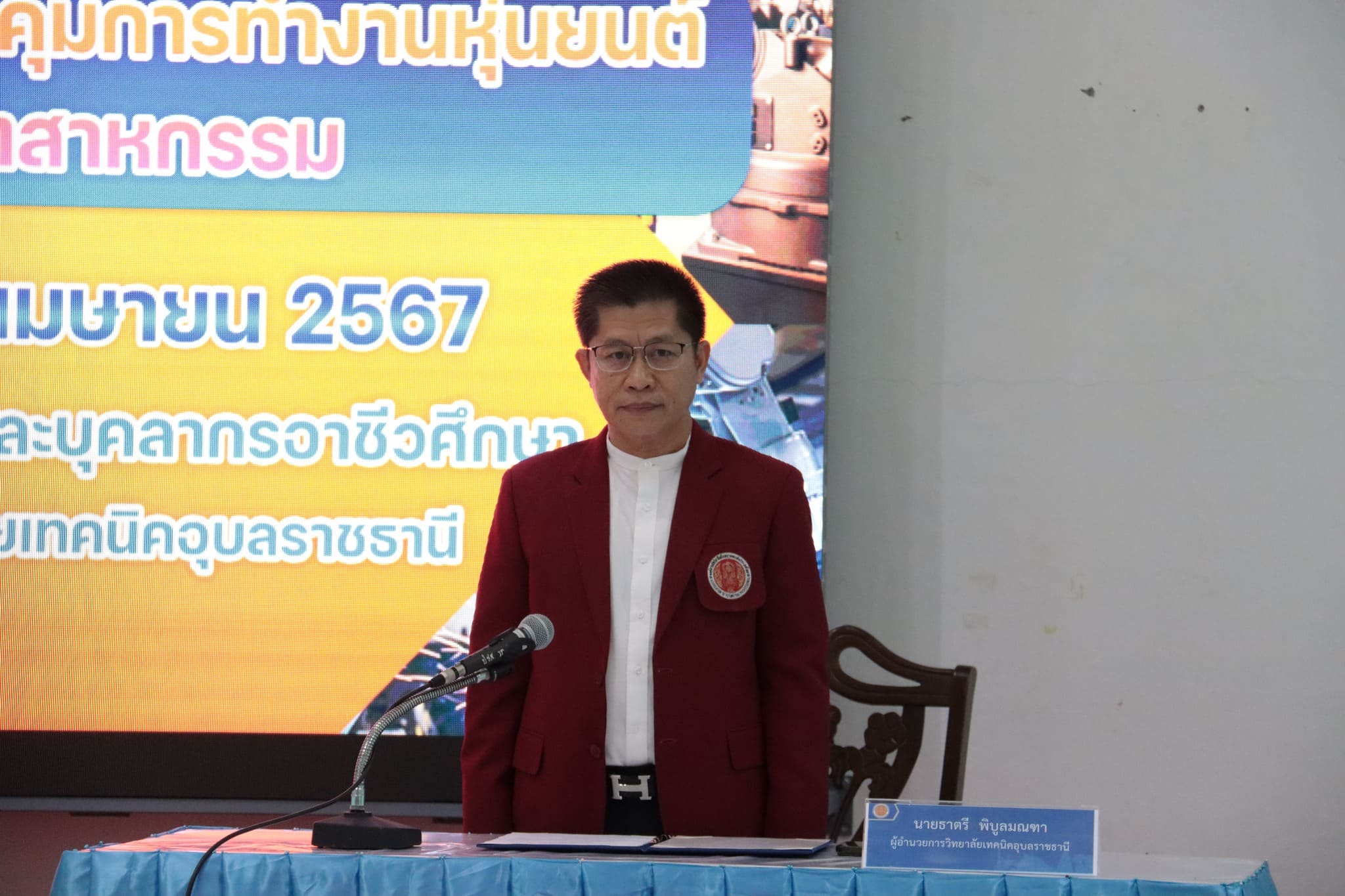 วันที่ ๒๔ เมษายน ๒๕๖๗ เวลา ๐๙.๐๐ น. นายธาตรี พิบูลมณฑา ผู้อำนวยการวิทยาลัยเทคนิคอุบลราชธานี ให้เกียรติเป็นประธานในพิธีเปิดโครงการเขียนโปรแกรมควบคุมการทำงานหุ่นยนต์ในงานเชื่อมมิกอุตสาหกรรม ซึ่งจัดอบรมระหว่างวันที่ ๒๔-๒๖ เมษายน ๒๕๖๗ โดยสำนักพัฒนาสมรรถนะครูและบุคลากรอาชีวศึกษา ณ ห้องประชุมบัวแสด โดยมี นายไวพจน์ ศรีธัญ รองผู้อำนวยการฝ่ายพัฒนากิจการนักเรียนนักศึกษา นายสุวิชา มั่นยืน รองผู้อำนวยการฝ่ายวิชาการ นางราตรี สะดีวงศ์ รองผู้อำนวยการฝ่ายแผนงานและความร่วมมือ นางสาวสายฝน สาระผล รองผู้อำนวยการฝ่ายบริหารทรัพยากร พร้อมด้วย นายเอกพร วรรณประภา หัวหน้าแผนกวิชาช่างเชื่อมโลหะ วิทยาลัยเทคนิคอุบลราชธานี นำข้าราชการครูและบุคลากรที่สอนในรายวิชางานเชื่อมโลหะ สังกัดสำนักงานคณะกรรมการการอาชีวศึกษา เข้าร่วมโครงการอย่างพร้อมเพรียง ในการนี้ได้รับความอนุเคราะห์วิทยากรจากหน่วยงานต่างๆ ดังนี้ ๑. ดร.สมพร เพียรสุขมณี มหาวิทยาลัยเทคโนโลยีพระจอมเกล้าธนบุรี ๒. นายอนุชาติ มากกลาง วิทยาลัยเทคนิคนครราชสีมา และ๓. นายประทีป ระงับทุกข์วิทยาลัยเทคนิคนครนายก เป็นวิทยากรในการบรรยาย ทั้งนี้เพื่อพัฒนาความรู้ทักษะวิชาชีพที่ทันสมัยรวมทั้งสร้างเสริมทัศนคติที่ดี มีความเป็นครูสามารถนำความรู้และทักษะที่ได้รับไปพัฒนาการจัดการเรียนการสอนในห้องเรียนได้อย่างมีประสิทธิภาพต่อไป