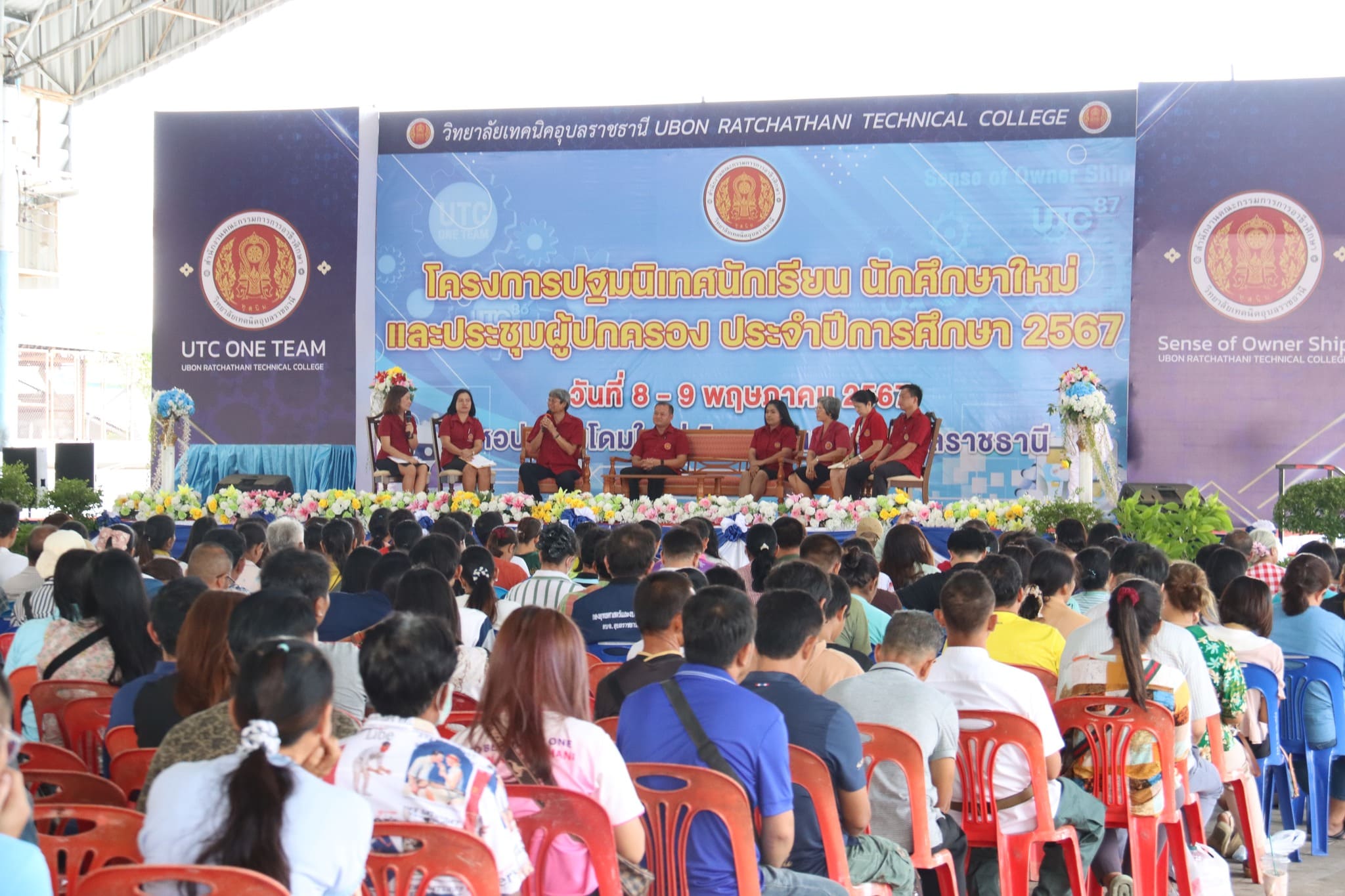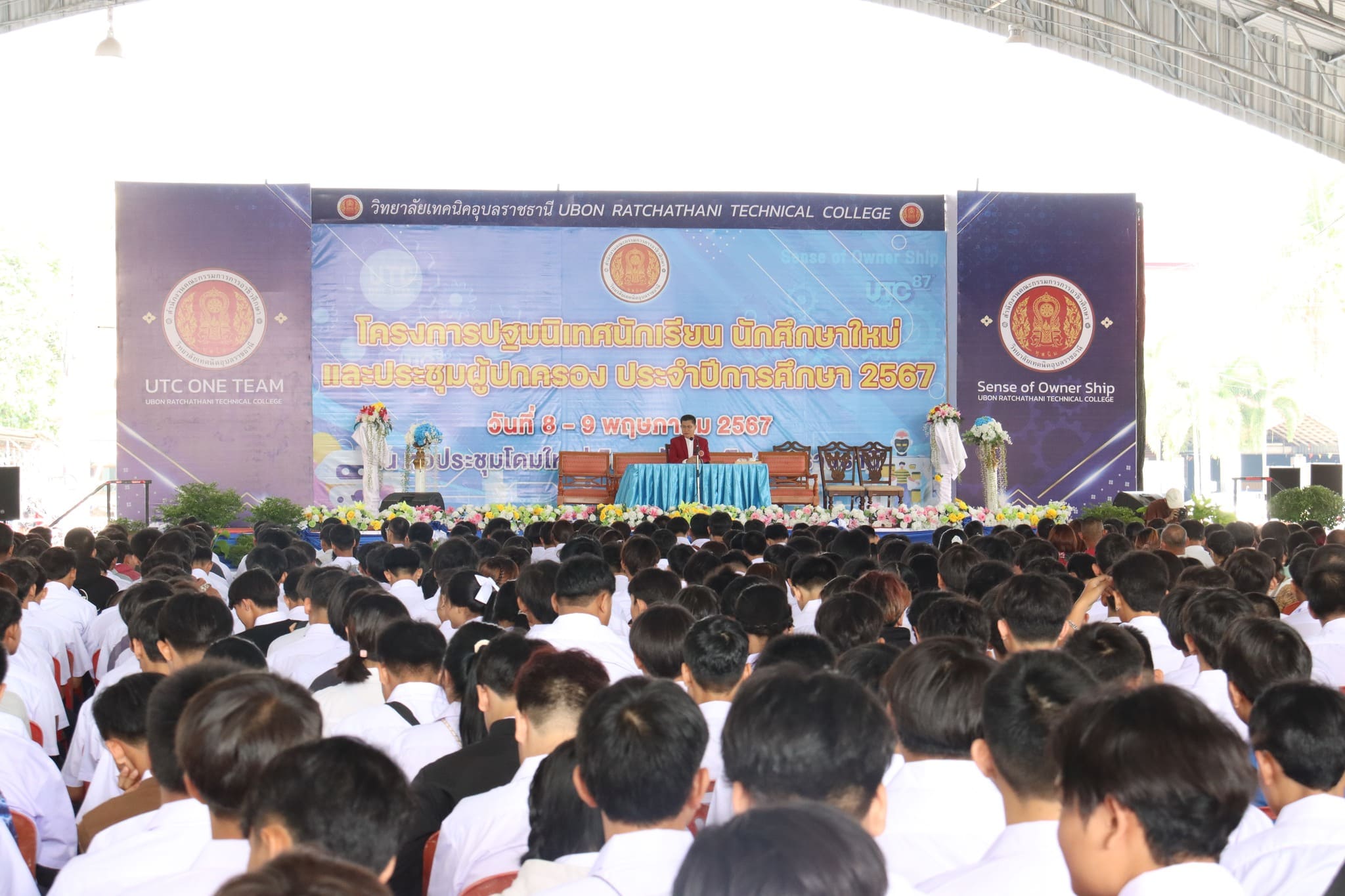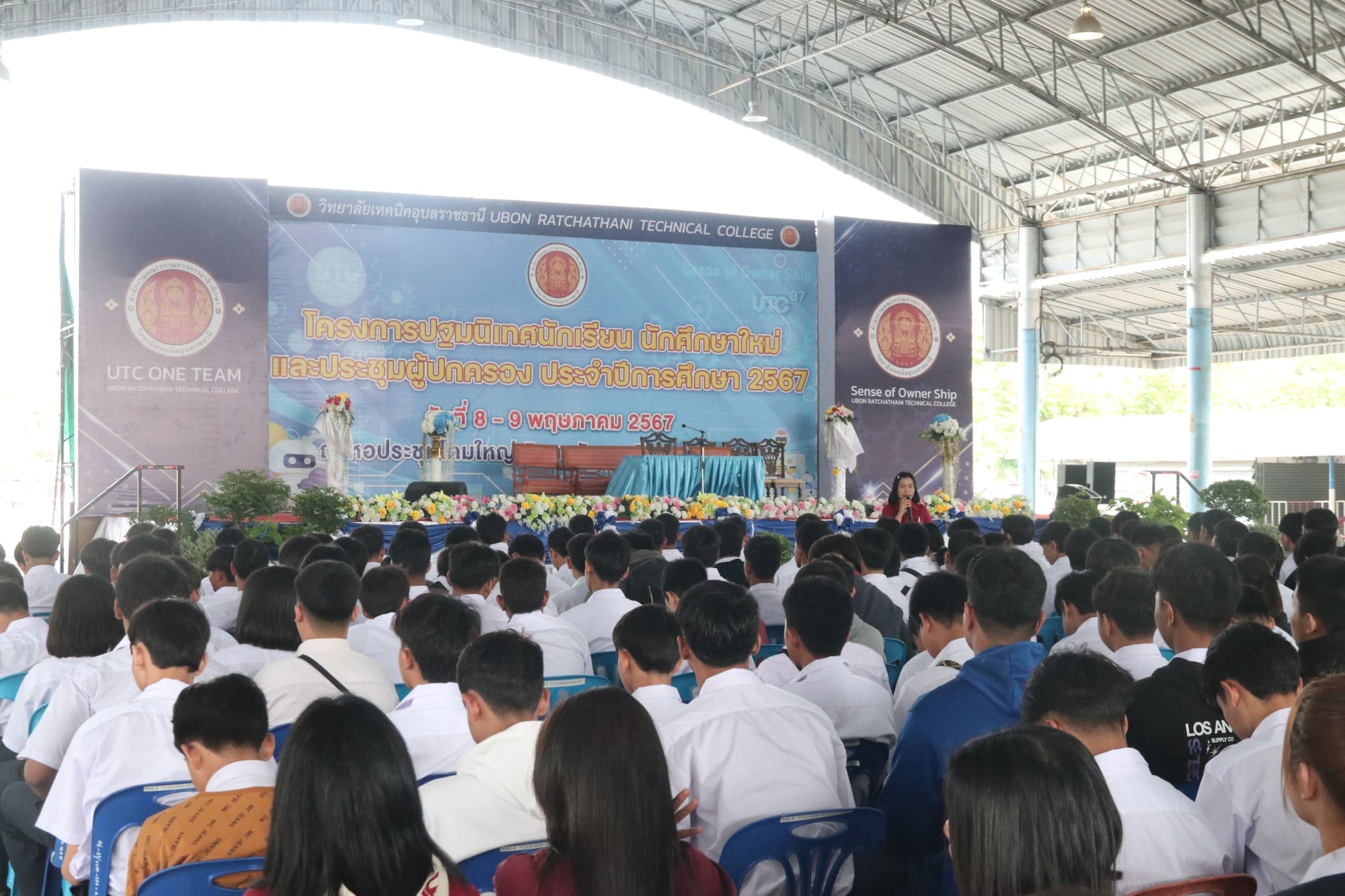 วันที่ ๘ พฤษภาคม ๒๕๖๗ เวลา ๐๘.๐๐ น. นายธาตรี พิบูลมณฑา ผู้อำนวยการวิทยาลัยเทคนิคอุบลราชธานี ให้เกียรติเป็นประธานในพิธีเปิดโครงการปฐมนิเทศนักเรียน นักศึกษาใหม่ และประชุมผู้ปกครอง ประจำปีการศึกษา ๒๕๖๗ ณ หอประชุมโดมใหญ่ วิทยาลัยเทคนิคอุบลราชธานี ซึ่งดำเนินการระหว่างวันที่ ๘ – ๙ พฤษภาคม ๒๕๖๗ โดยวันที่ ๘ พฤษภาคม ๒๕๖๗ เป็นการปฐมนิเทศของนักเรียนระดับชั้น ปวช.๑ และวันที่ ๙ พฤษภาคม ๒๕๖๗ เป็นการปฐมนิเทศของนักศึกษาระดับชั้น ปวส.๑ โดยมี นายไวพจน์ ศรีธัญ รองผู้อำนวยการฝ่ายพัฒนากิจการนักเรียนนักศึกษา เป็นผู้กล่าวรายงาน ในการนี้มี นายสุวิชา มั่นยืน รองผู้อำนวยการฝ่ายวิชาการ นางราตรี สะดีวงษ์ รองผู้อำนวยการฝ่ายแผนงานและความร่วมมือ นางสาวสายฝน สาระผล รองผู้อำนวยการฝ่ายบริหารทรัพยากร พร้อมด้วยหัวหน้าแผนกวิชา หัวหน้างาน ครู นักเรียน นักศึกษา และผู้ปกครอง เข้าร่วมกิจกรรมอย่างพร้อมเพรียง
