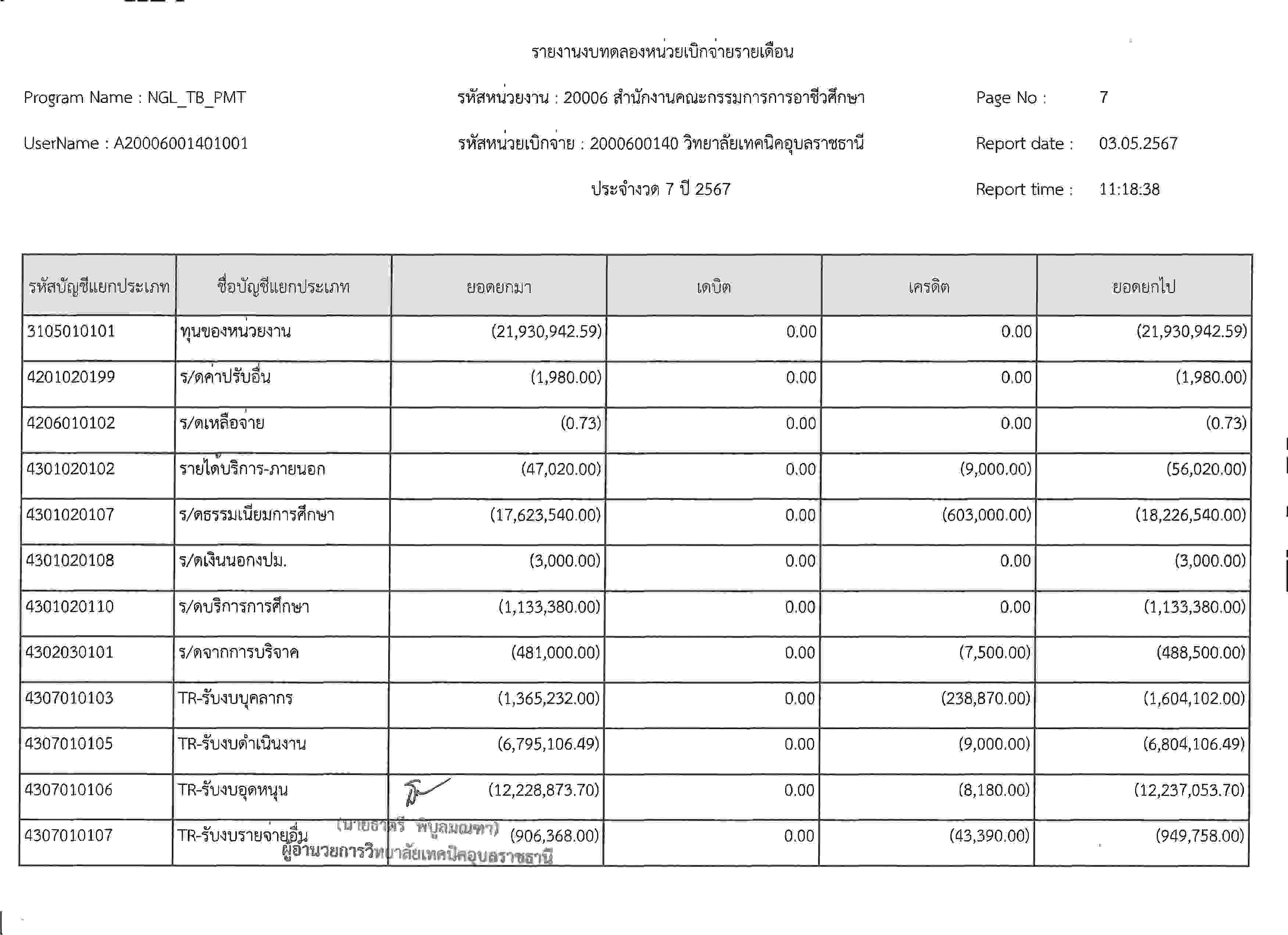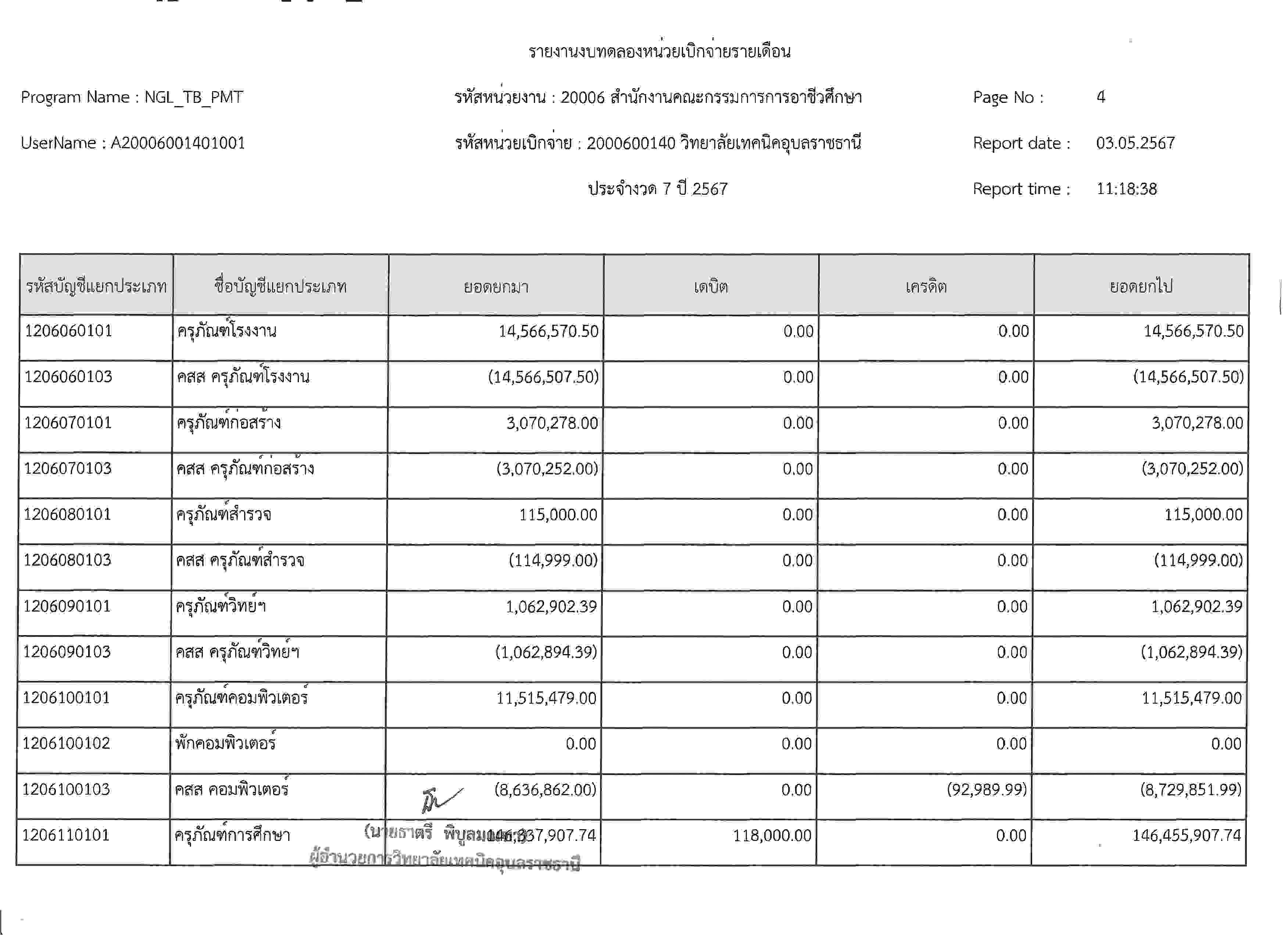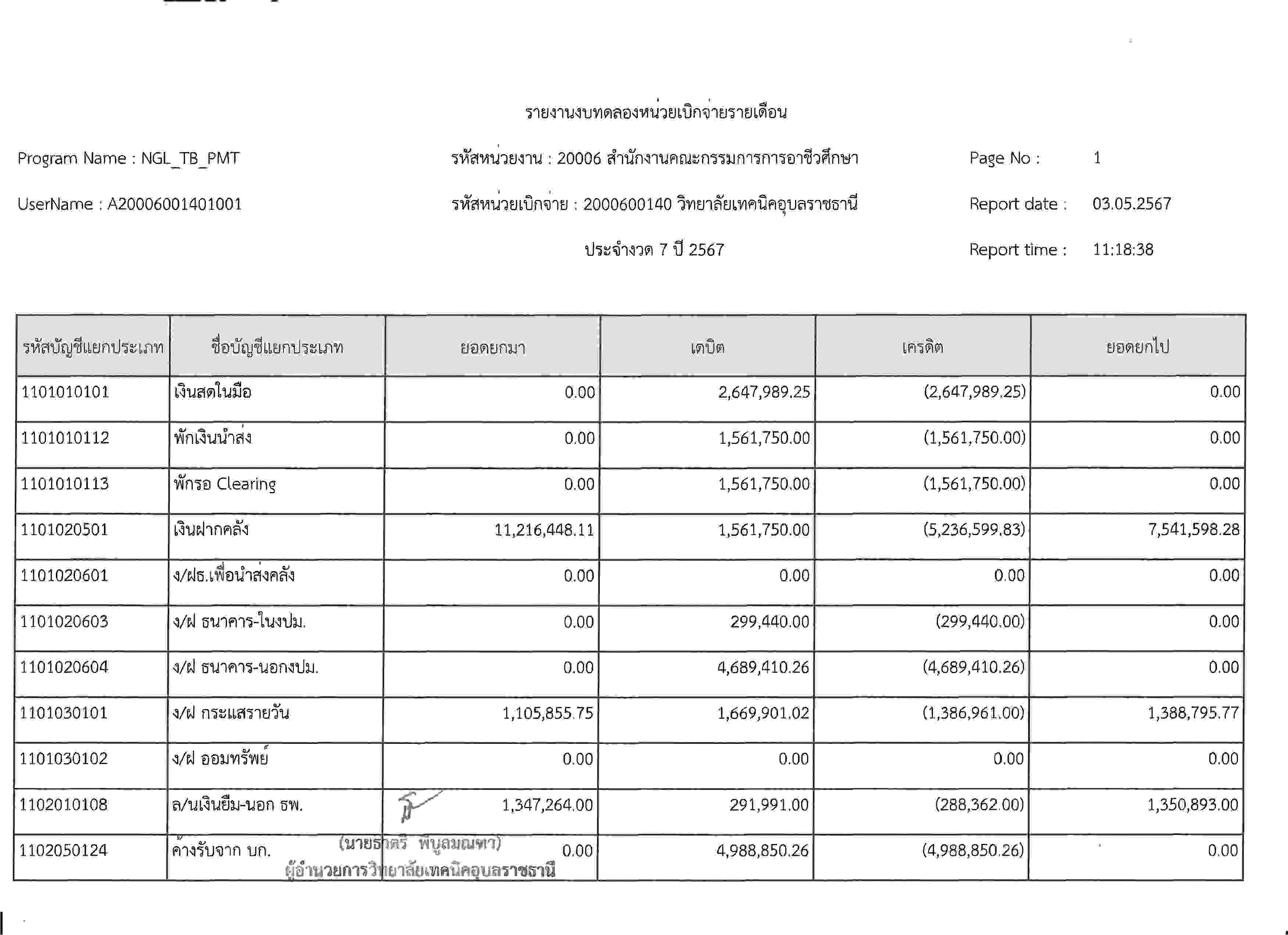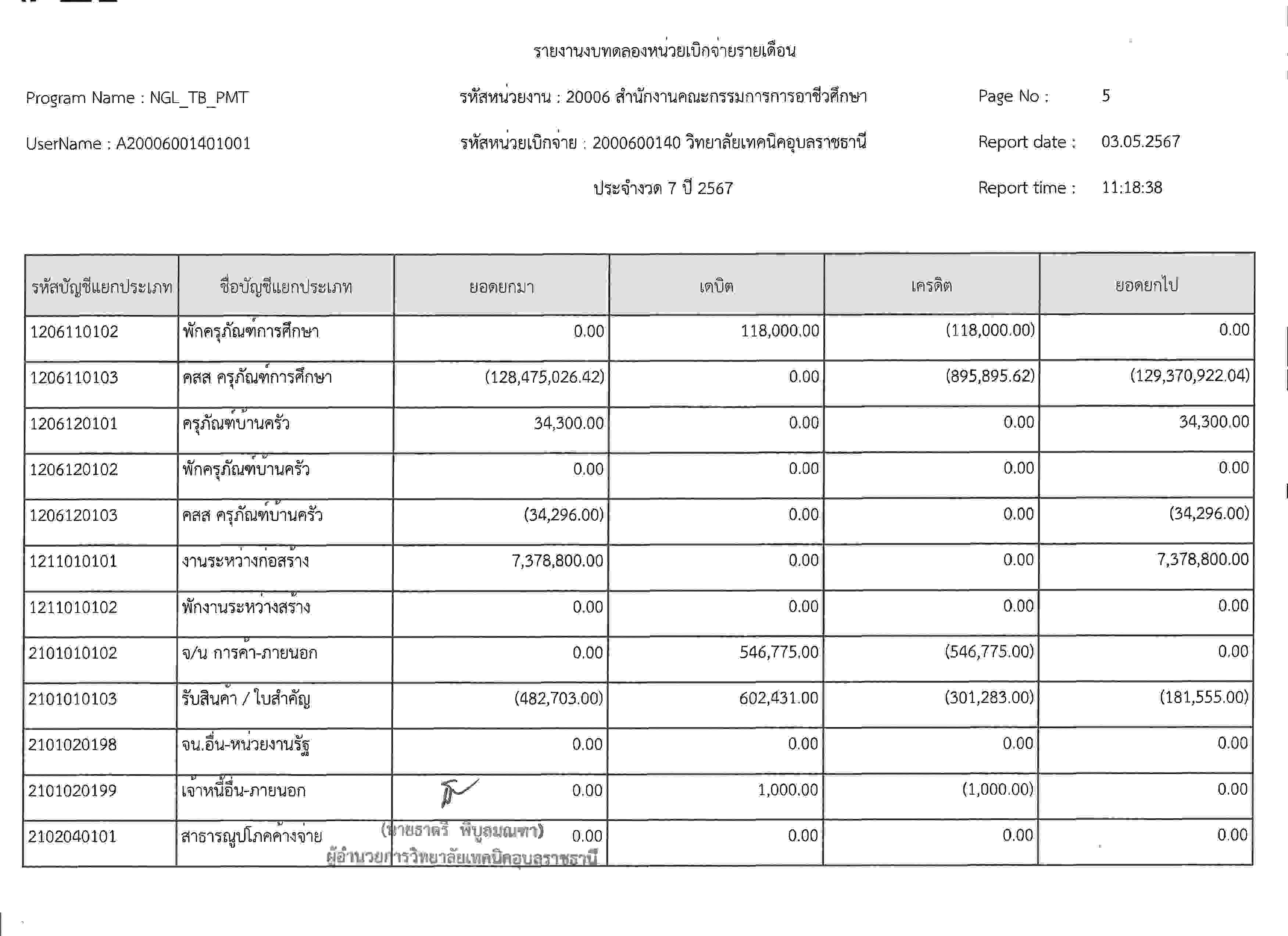 รายงานงบทดลองประจำเดือนเมษายน2567