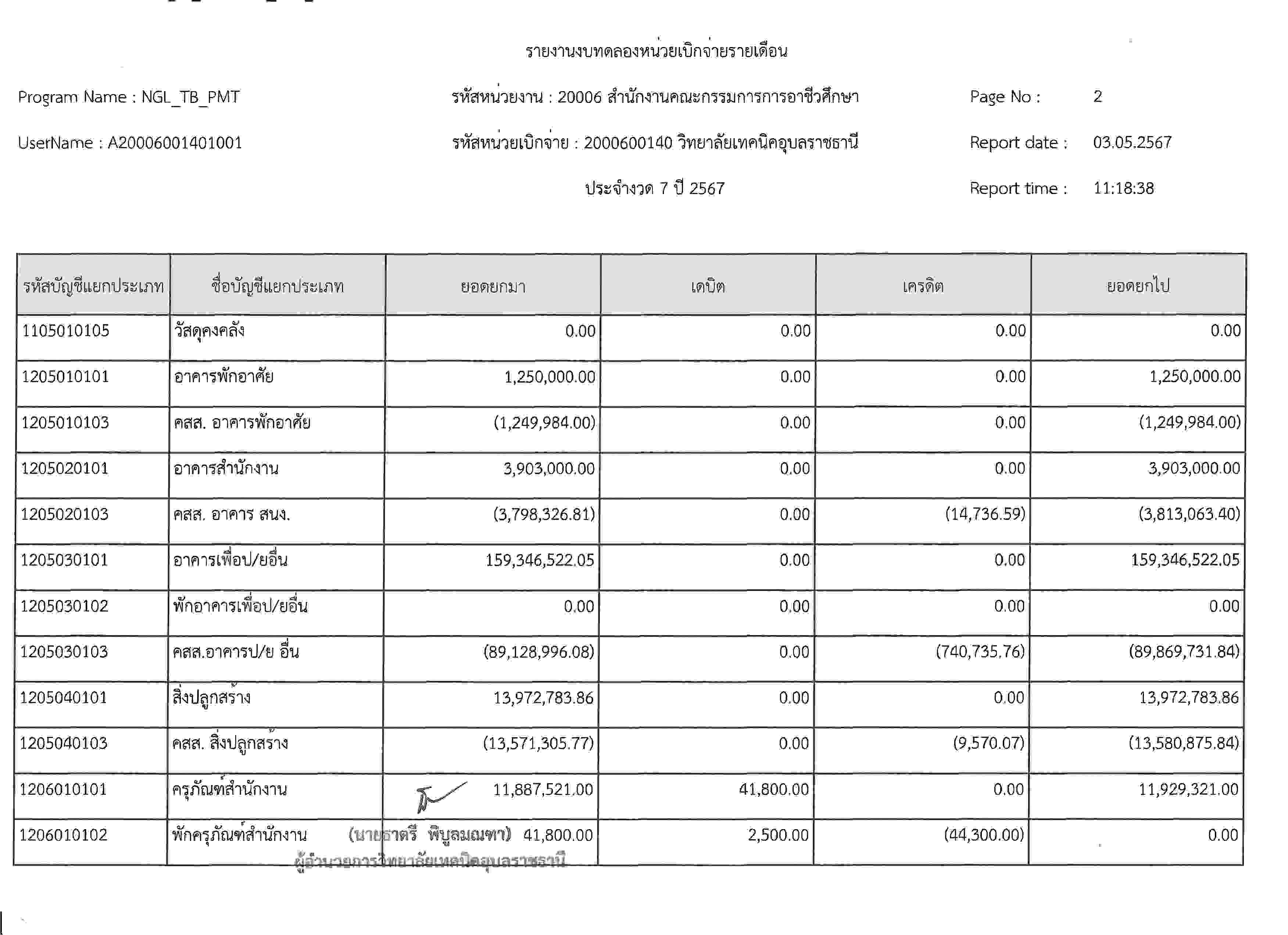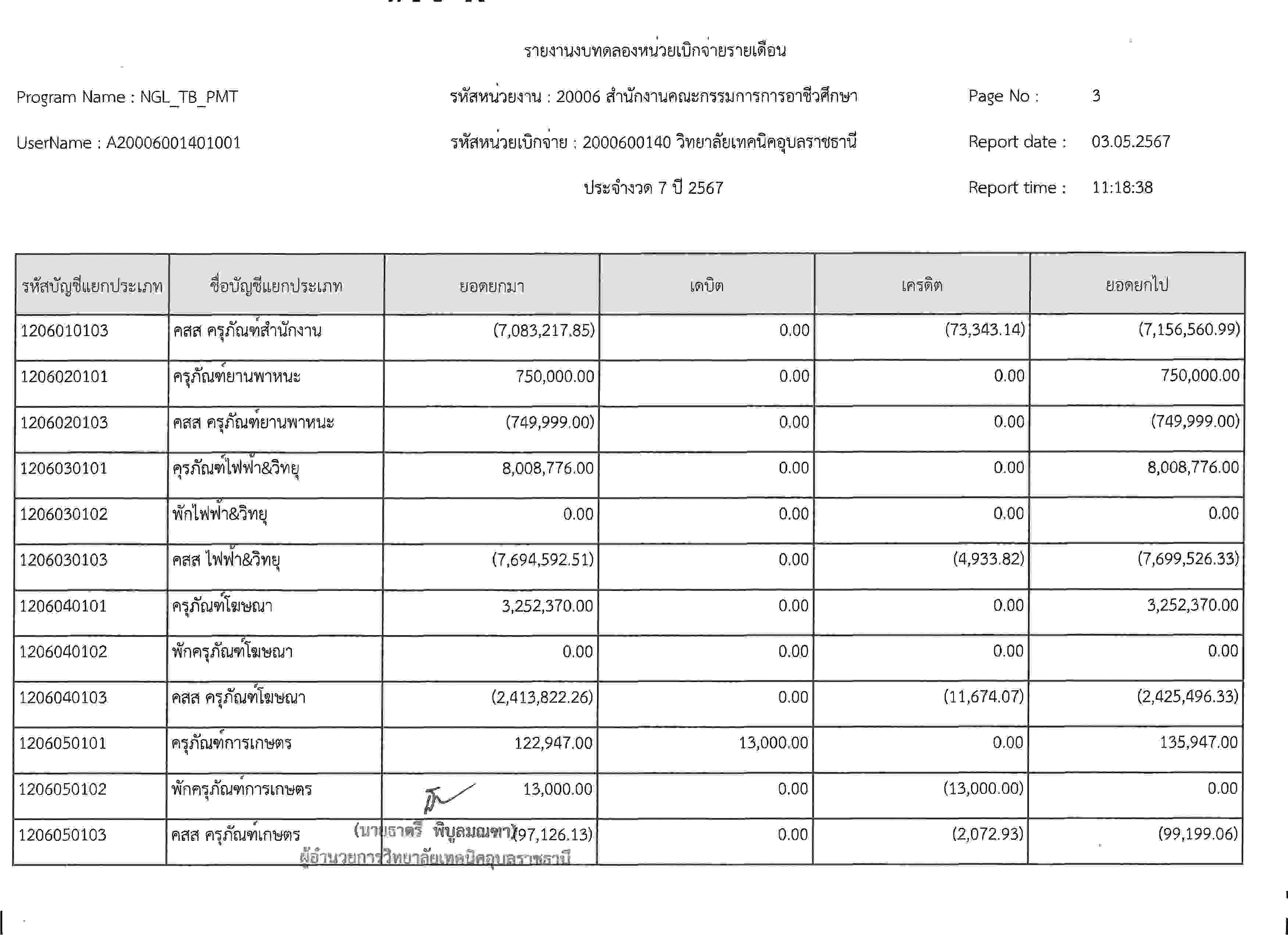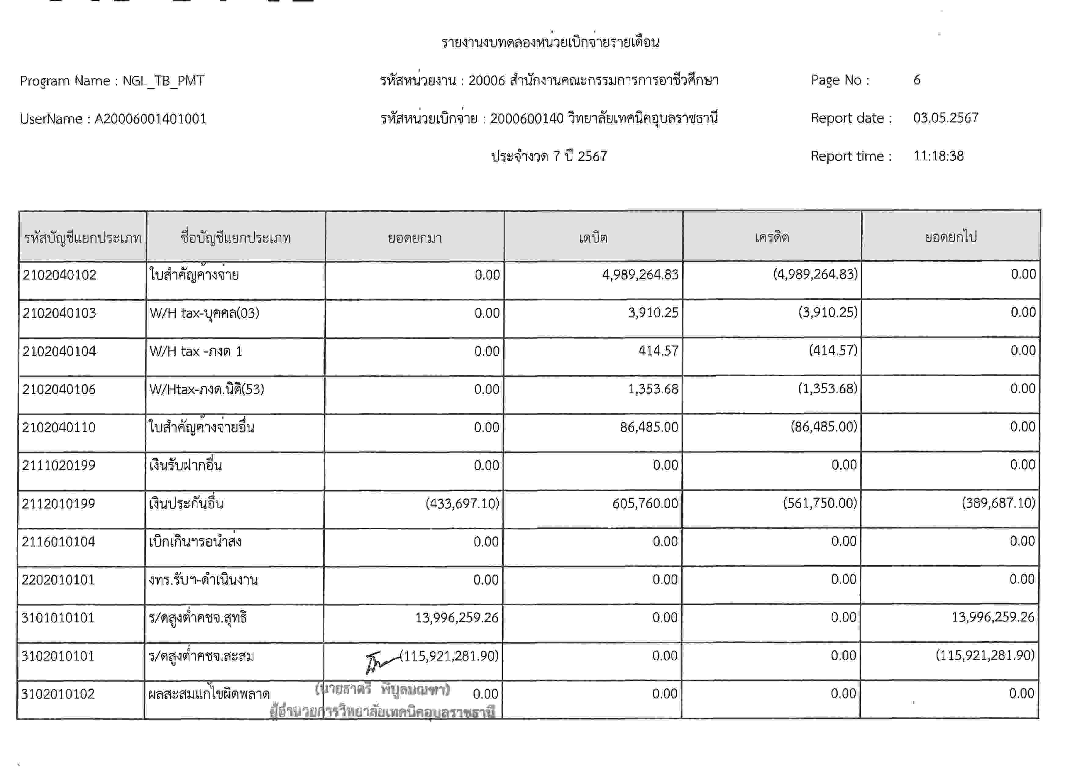 รายงานงบทดลองประจำเดือนเมษายน2567