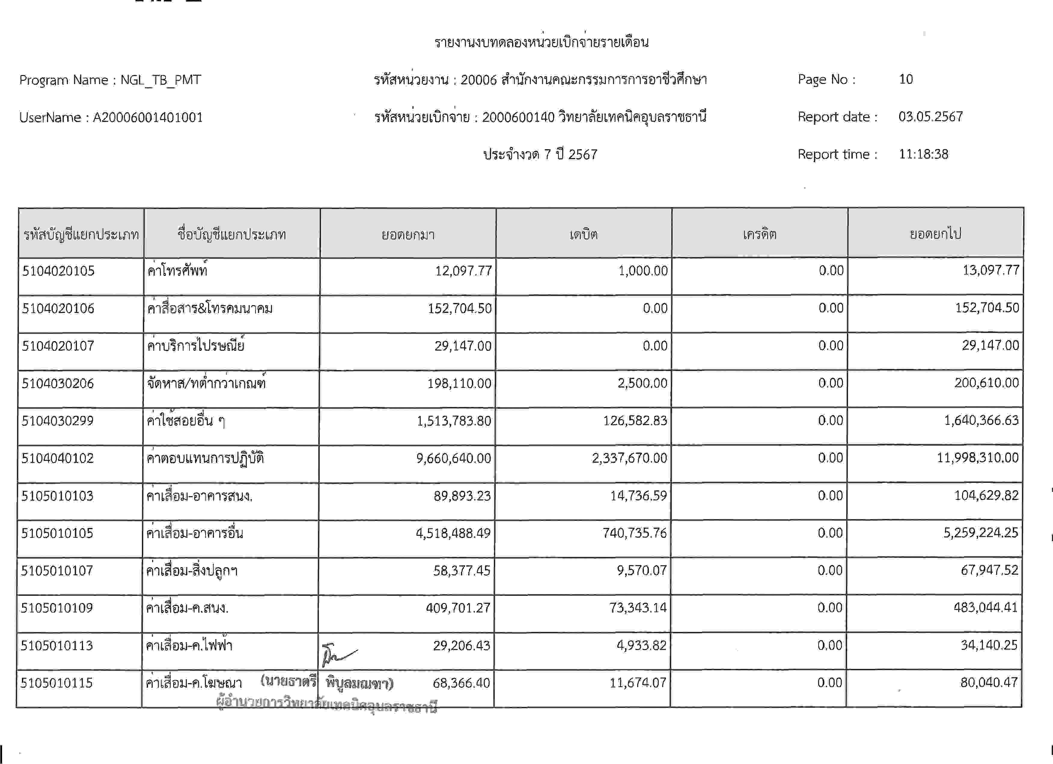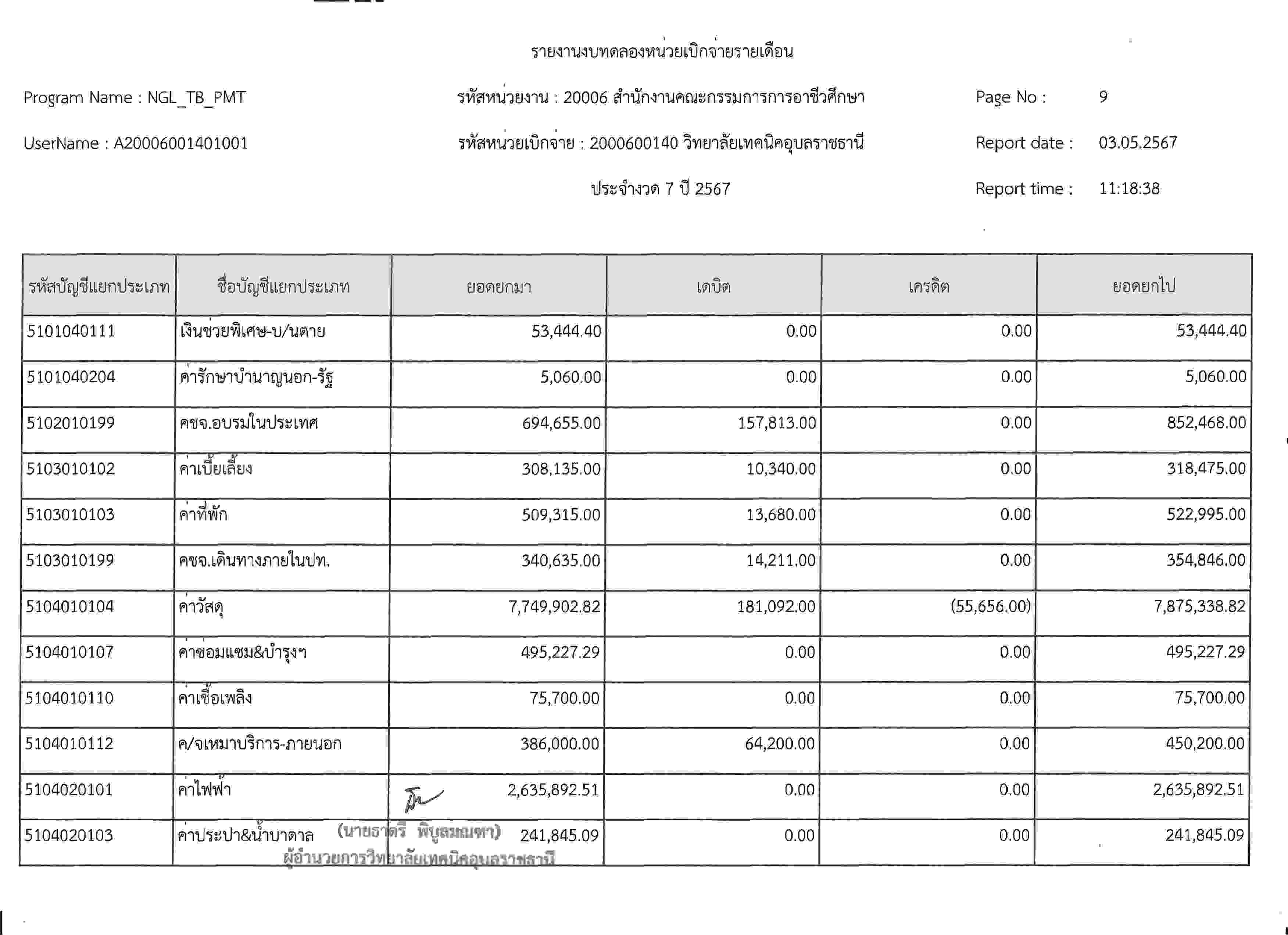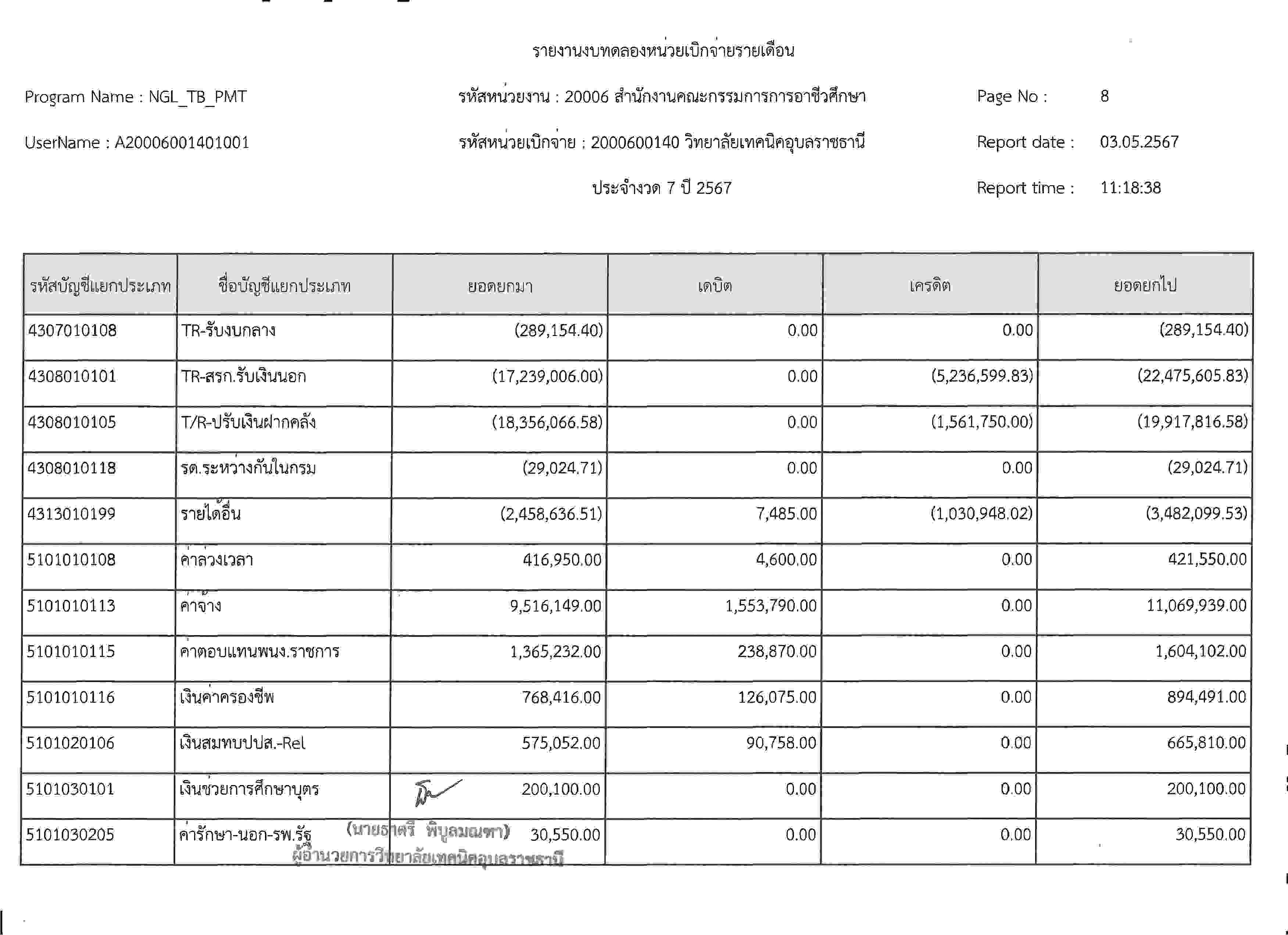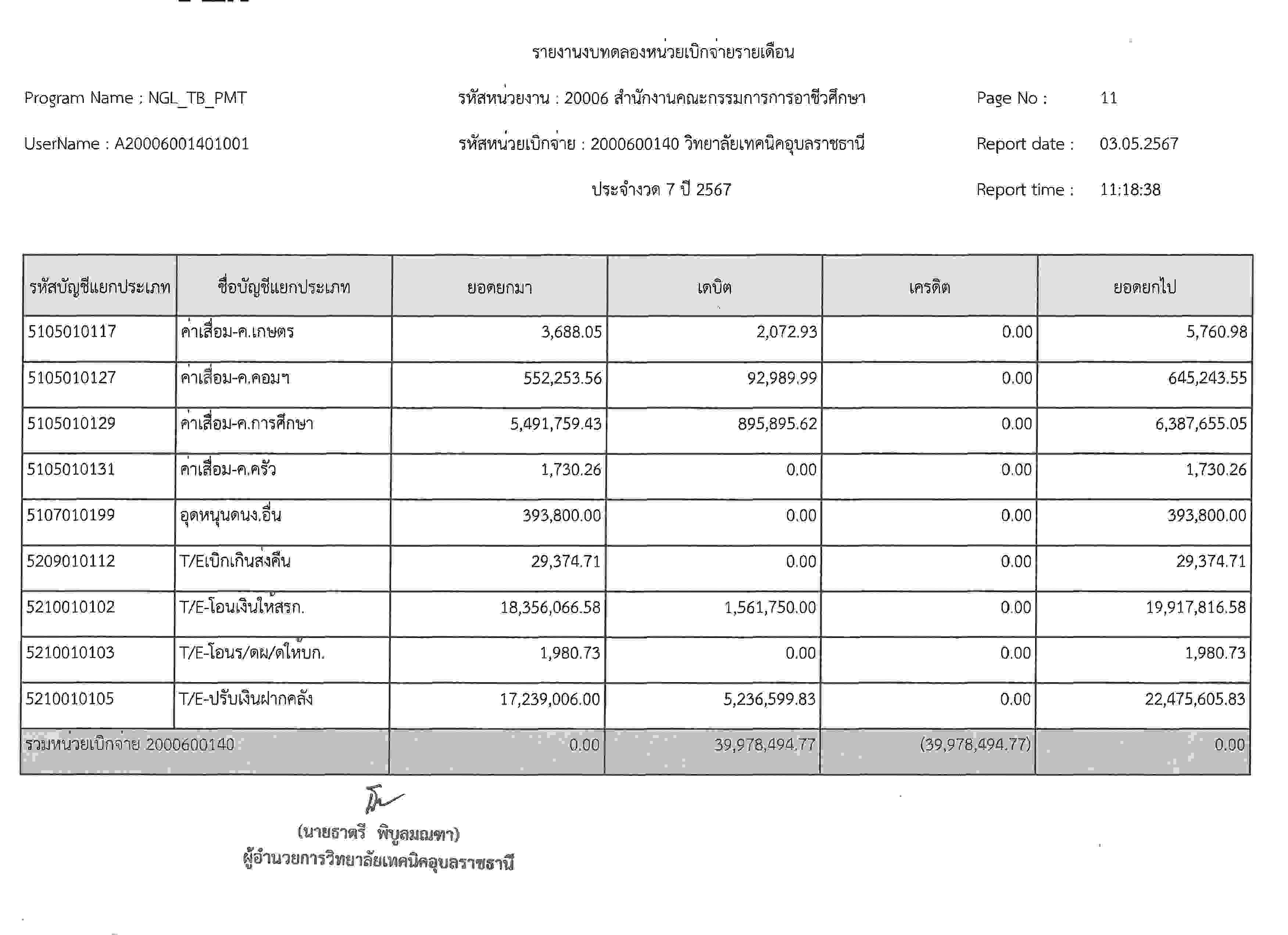 รายงานงบทดลองประจำเดือนเมษายน2567