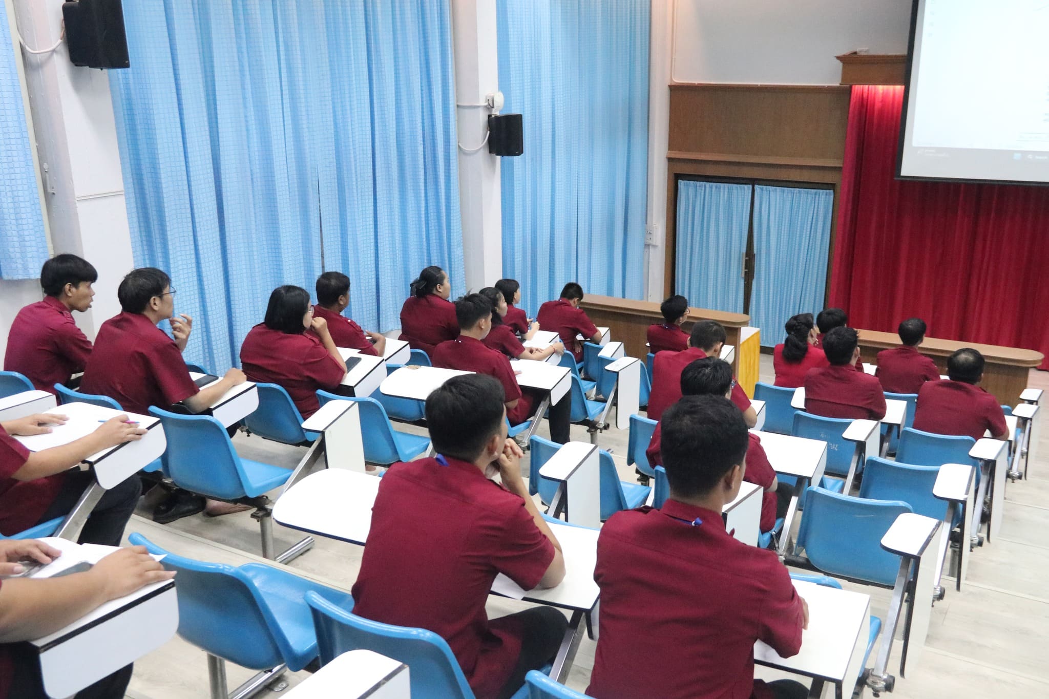 วันที่ ๑๕ พฤษภาคม ๒๕๖๗ เวลา ๑๕.๐๐ น. นายธาตรี พิบูลมณฑา ผู้อำนวยการวิทยาลัยเทคนิคอุบลราชธานีมอบหมายให้ นายไวพจน์ ศรีธัญ รองผู้อำนวยการฝ่ายพัฒนากิจการนักเรียนนักศึกษา เป็นประธานในการประชุมปรึกษาหารือเกี่ยวกับความปลอดภัยภายในวิทยาลัยเทคนิคอุบลราชธานี เพื่อเตรียมความพร้อมในการเปิดภาคเรียนที่ ๑ ปีการศึกษา ๒๕๖๗ ณ ห้องประชุมบัวฟ้า ทั้งนี้มีนายสรรพสิทธิ์ ละออเอี่ยม หัวหน้างานปกครอง พร้อมด้วย คณะครูที่ปฏิบัติหน้าที่เป็นผู้ช่วยหัวหน้างานปกครองทุกแผนกวิชา และบุคลากรทางการศึกษาที่เกี่ยวข้อง เข้าร่วมการประชุมอย่างพร้อมเพรียง