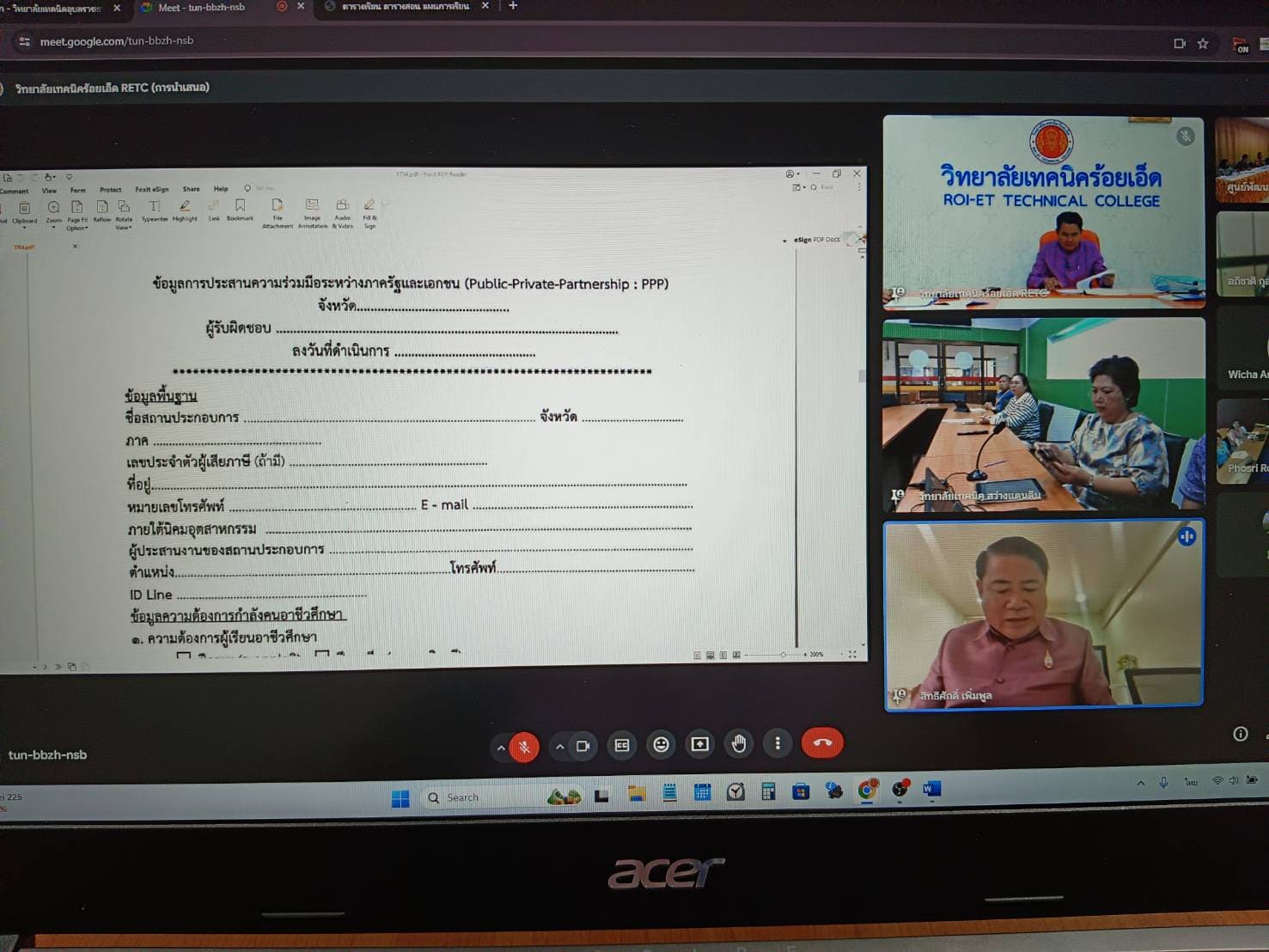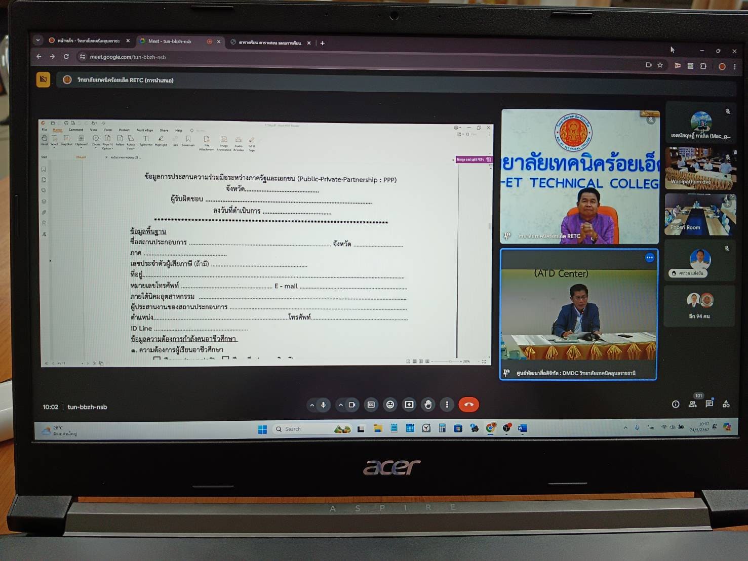 วันที่ ๒๔ พฤษภาคม ๒๕๖๗ เวลา ๐๙.๐๐ น. นายธาตรี พิบูลมณฑา ผู้อำนวยการวิทยาลัยเทคนิคอุบลราชธานี ปฏิบัติหน้าที่ ผู้อำนวยการสำนักงานอาชีวศึกษาจังหวัดอุบลราชธานี พร้อมด้วยคณะผู้บริหารสถานศึกษา ครู และบุคลากรทางการศึกษา ในสังกัดสำนักงานอาชีวศึกษาจังหวัดอุบลราชธานี ให้เกียรติเข้าร่วมการประชุมเตรียมความพร้อมในการรายงานข้อมูลความก้าวหน้าการดำเนินงานการขับเคลื่อนการจัดการอาชีวศึกษาระบบทวิภาคีระหว่างภาครัฐและเอกชน (Public – Private – Partnership : PPP) ระดับพื้นที่ ประจำปีงบประมาณ พ.ศ. ๒๕๖๗ ผ่านระบบออนไลน์ Google Meet ณ ห้องศูนย์วิทยฐานะและพัฒนาครู บุคลากร วิทยาลัยเทคนิคอุบลราชธานี (ATD Center) ในการนี้ได้รับเกียรติจาก นายอาคม จันทร์นาม ผู้อำนวยการวิทยาลัยเทคนิคร้อยเอ็ด ปฏิบัติหน้าที่ ผู้อำนวยการสำนักงานอาชีวศึกษาจังหวัดร้อยเอ็ด เป็นประธานในการประชุม ทั้งนี้เพื่อเตรียมความพร้อมในการรายงานข้อมูลความก้าวหน้าการดำเนินงานการขับเคลื่อนการจัดการอาชีวศึกษาระบบทวิภาคีระหว่างภาครัฐและเอกชน (Public – Private – Partnership : PPP) ระดับพื้นที่ ประจำปีงบประมาณ พ.ศ. ๒๕๖๗ ต่อไป