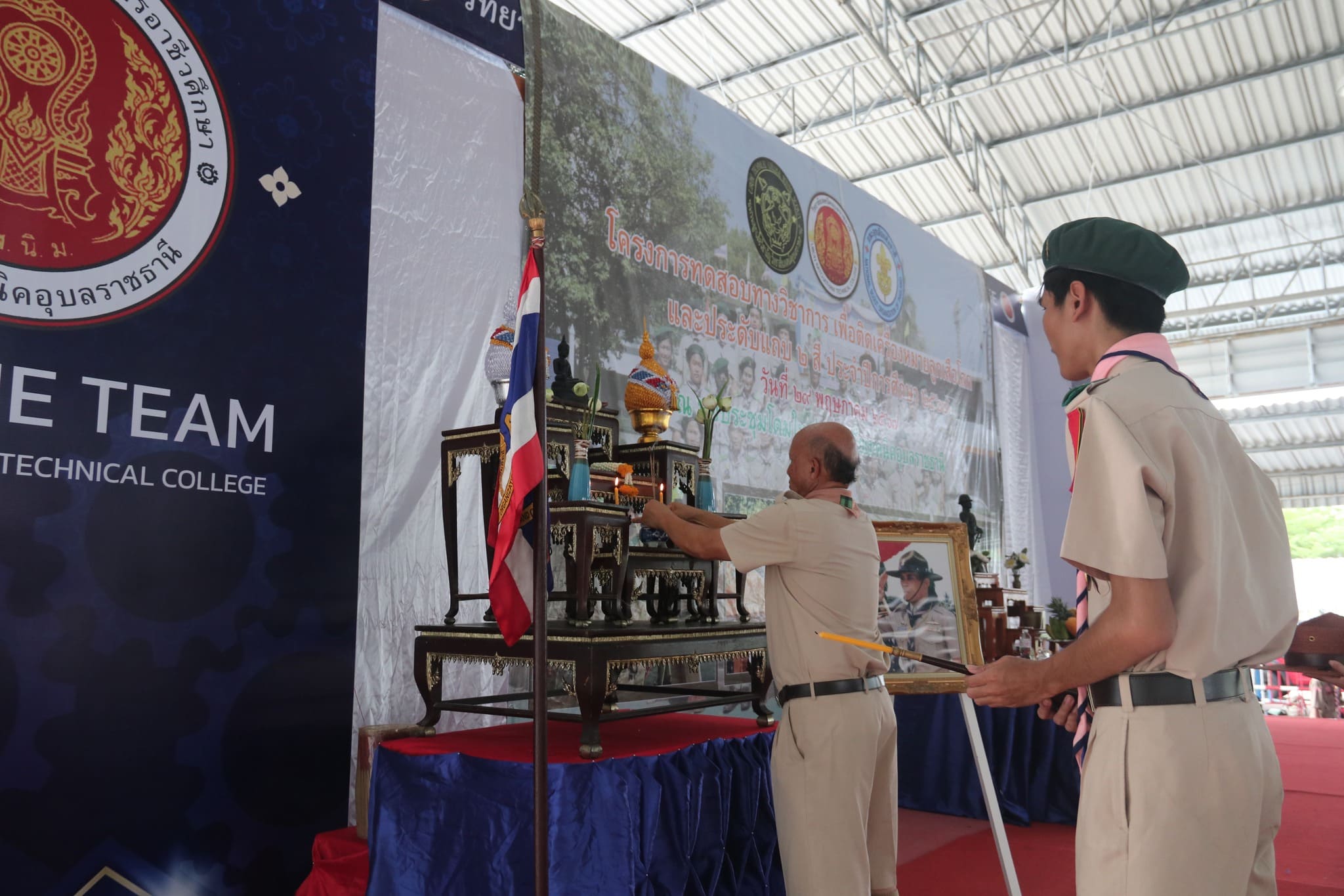 วันที่ ๒๙ พฤษภาคม ๒๕๖๗ เวลา ๑๕.๐๐ น. นายธาตรี พิบูลมณฑา ผู้อำนวยการวิทยาลัยเทคนิคอุบลราชธานี ได้มอบหมายให้ นายไวพจน์ ศรีธัญ รองผู้อำนวยการฝ่ายพัฒนากิจการนักเรียนนักศึกษา พร้อมด้วย นายศักดิ์สิทธิ์ จันทะแสง หัวหน้างานกิจกรรมนักเรียนนักศึกษา นายพงศ์ดนัย รายน้ำเงิน ครูที่ปรึกษาชมรมลูกเสือวิสามัญ ผู้กำกับลูกเสือวิสามัญ และพี่เลี้ยงลูกเสือวิสามัญ นำกองลูกเสือวิสามัญ วิทยาลัยเทคนิคอุบลราชธานี จัดพิธีเตรียมลูกเสือวิสามัญ (ประดับแถบ ๒ สี) ประจำปีการศึกษา ๒๕๖๗ ให้แก่ลูกเสือวิสามัญ วิทยาลัยเทคนิคอุบลราชธานี ณ หอประชุมโดมใหญ่ วิทยาลัยเทคนิคอุบลราชธานี ทั้งนี้เพื่อรับเข้าเป็นลูกเสือวิสามัญตามขั้นตอนให้ถูกต้องตามพิธีการทางลูกเสือต่อไป