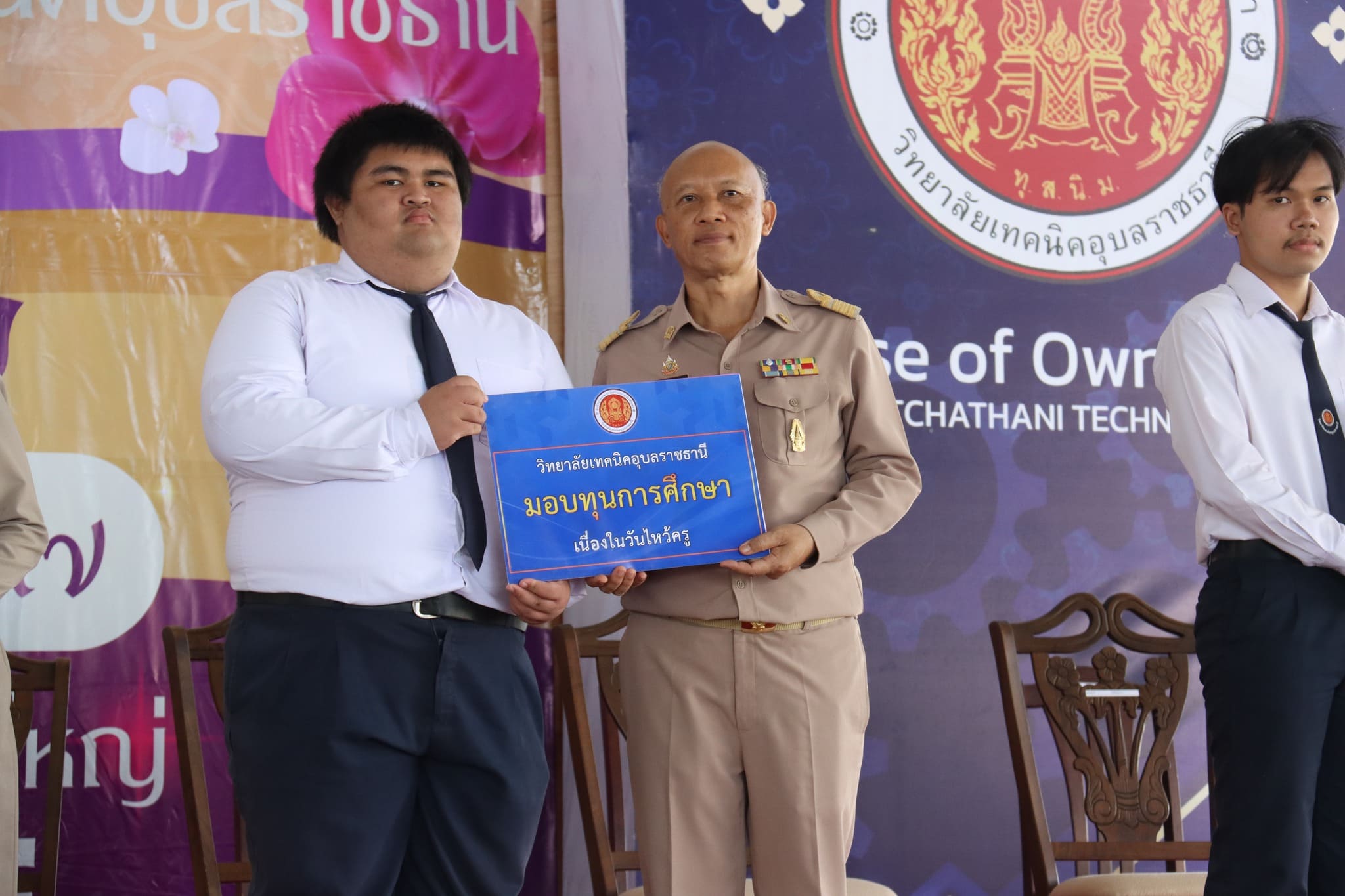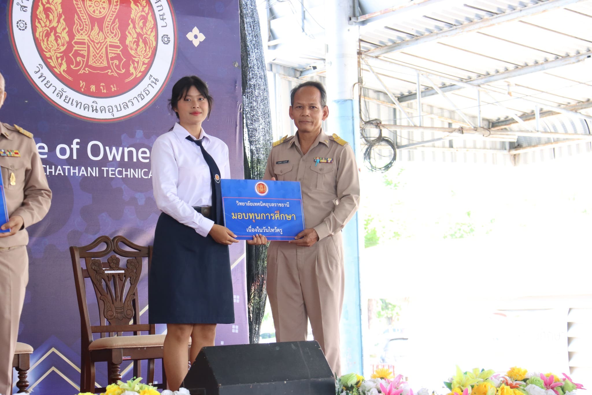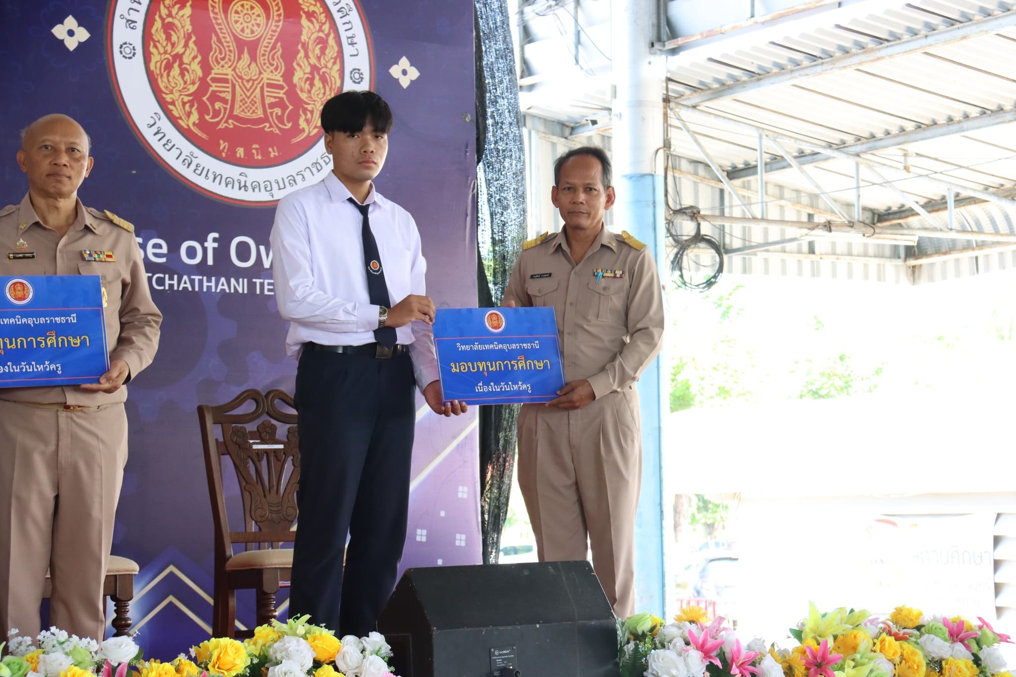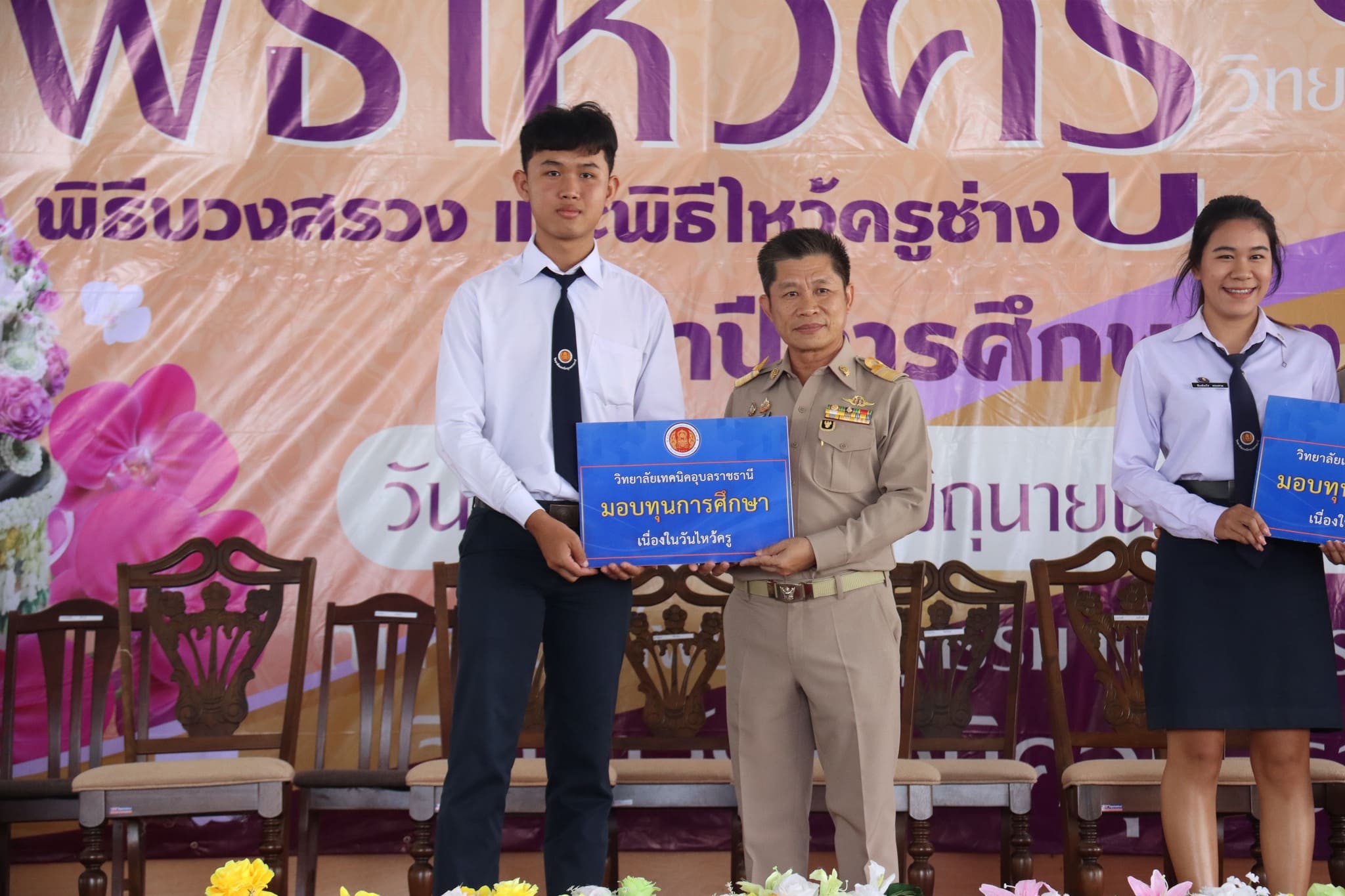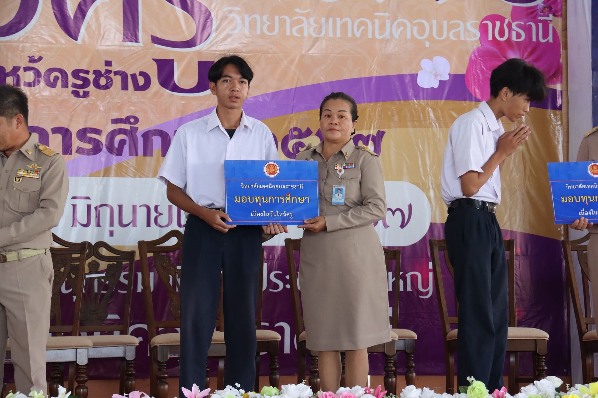 วันที่ ๑๓ มิถุนายน ๒๕๖๗ เวลา ๐๙.๐๐ น. นายธาตรี พิบูลมณฑา ผู้อำนวยการวิทยาลัยเทคนิคอุบลราชธานี ให้เกียรติเป็นประธานในพิธีมอบทุนการศึกษา ให้แก่นักเรียน นักศึกษา วิทยาลัยเทคนิคอุบลราชธานี ที่มีผลการเรียนดี แต่ขาดแคลนทุนทรัพย์ ภายใต้โครงการพิธีไหว้ครู พิธีบวงสรวง และพิธีไหว้ครูช่าง ประจำปีการศึกษา ๒๕๖๗ ๘๗ ปี วิทยาลัยเทคนิคอุบลราชธานี ณ หอประชุมโดมใหญ่ ซึ่งได้รับการสนับสนุนทุนการศึกษาทั้งหมด ๑๕๖ ทุน รวมเป็นเงินทั้งสิ้น ๓๒๒,๕๐๐ บาท ทั้งนี้มี นายไวพจน์ ศรีธัญ รองผู้อำนวยการฝ่ายพัฒนากิจการนักเรียนนักศึกษา นางราตรี สะดีวงศ์ รองผู้อำนวยการฝ่ายแผนงานและความร่วมมือ นางสาวสายฝน สาระผล รองผู้อำนวยการฝ่ายบริหารทรัพยากร พร้อมด้วยคณะครู และบุคลากรทางการศึกษาที่เกี่ยวข้อง เข้าร่วมพิธีอย่างพร้อมเพรียง