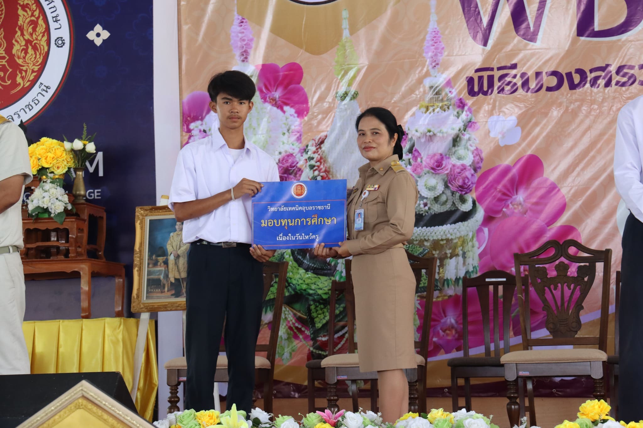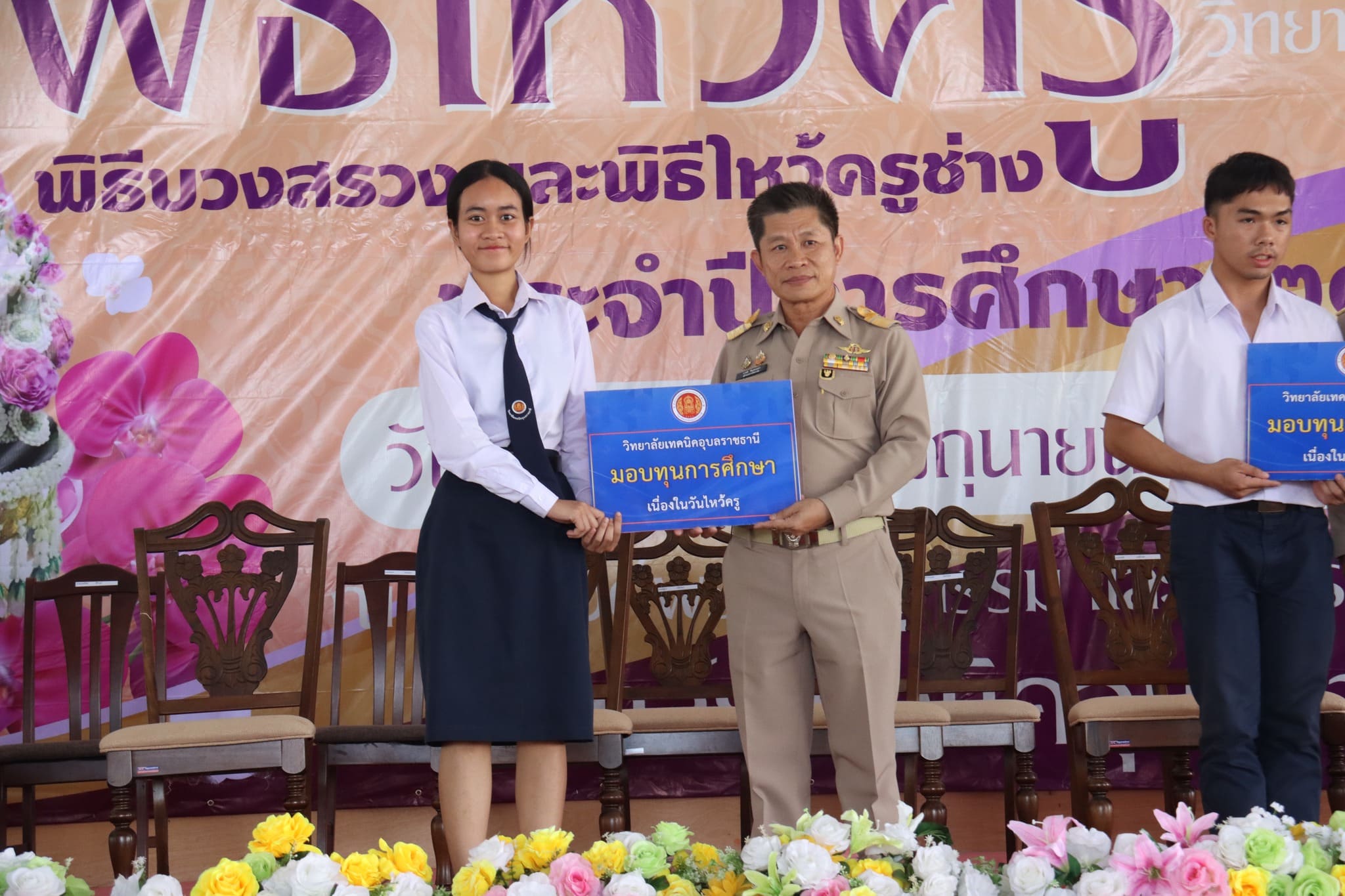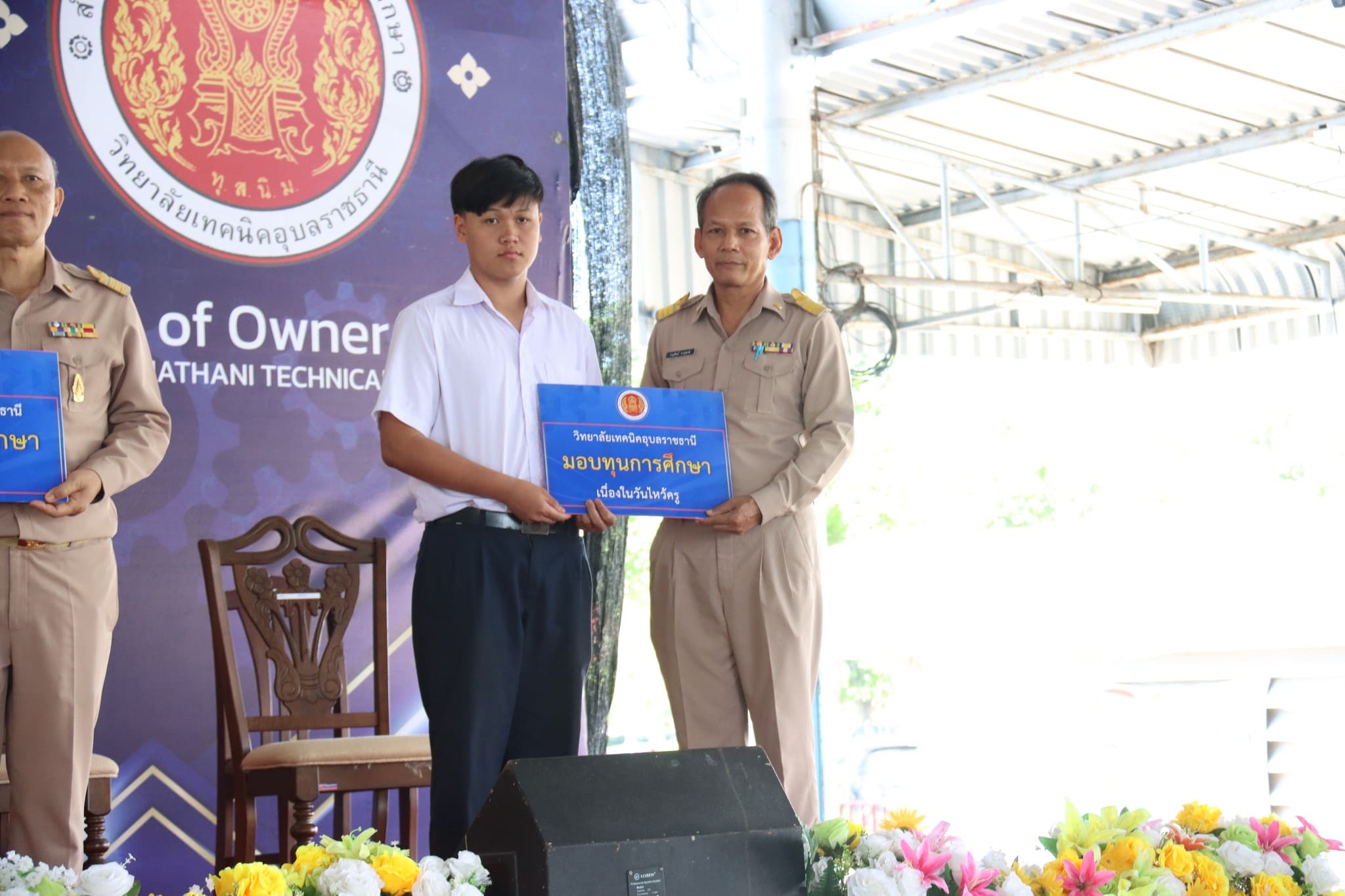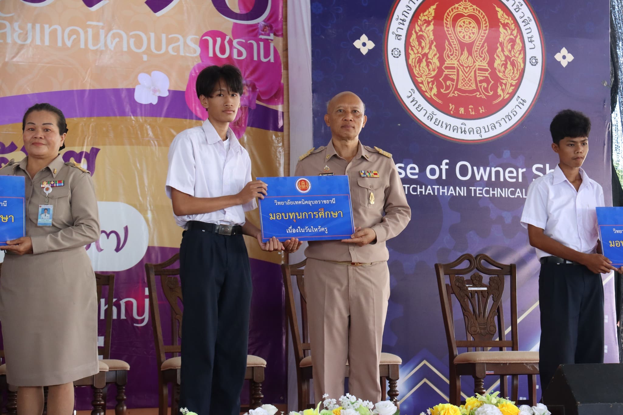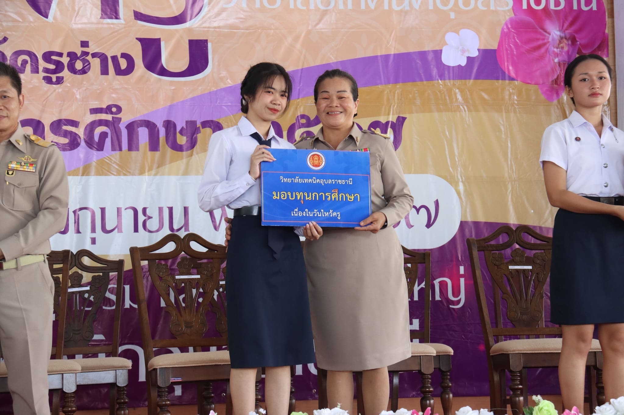 วันที่ ๑๓ มิถุนายน ๒๕๖๗ เวลา ๐๙.๐๐ น. นายธาตรี พิบูลมณฑา ผู้อำนวยการวิทยาลัยเทคนิคอุบลราชธานี ให้เกียรติเป็นประธานในพิธีมอบทุนการศึกษา ให้แก่นักเรียน นักศึกษา วิทยาลัยเทคนิคอุบลราชธานี ที่มีผลการเรียนดี แต่ขาดแคลนทุนทรัพย์ ภายใต้โครงการพิธีไหว้ครู พิธีบวงสรวง และพิธีไหว้ครูช่าง ประจำปีการศึกษา ๒๕๖๗ ๘๗ ปี วิทยาลัยเทคนิคอุบลราชธานี ณ หอประชุมโดมใหญ่ ซึ่งได้รับการสนับสนุนทุนการศึกษาทั้งหมด ๑๕๖ ทุน รวมเป็นเงินทั้งสิ้น ๓๒๒,๕๐๐ บาท ทั้งนี้มี นายไวพจน์ ศรีธัญ รองผู้อำนวยการฝ่ายพัฒนากิจการนักเรียนนักศึกษา นางราตรี สะดีวงศ์ รองผู้อำนวยการฝ่ายแผนงานและความร่วมมือ นางสาวสายฝน สาระผล รองผู้อำนวยการฝ่ายบริหารทรัพยากร พร้อมด้วยคณะครู และบุคลากรทางการศึกษาที่เกี่ยวข้อง เข้าร่วมพิธีอย่างพร้อมเพรียง