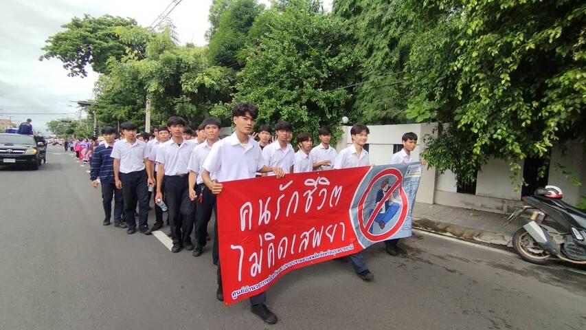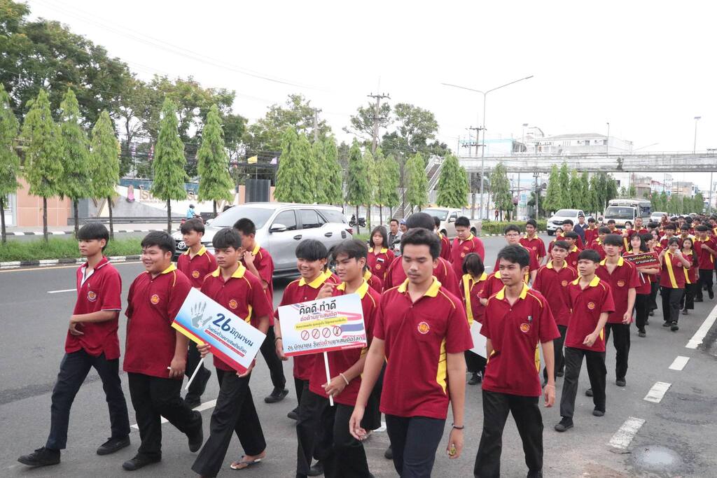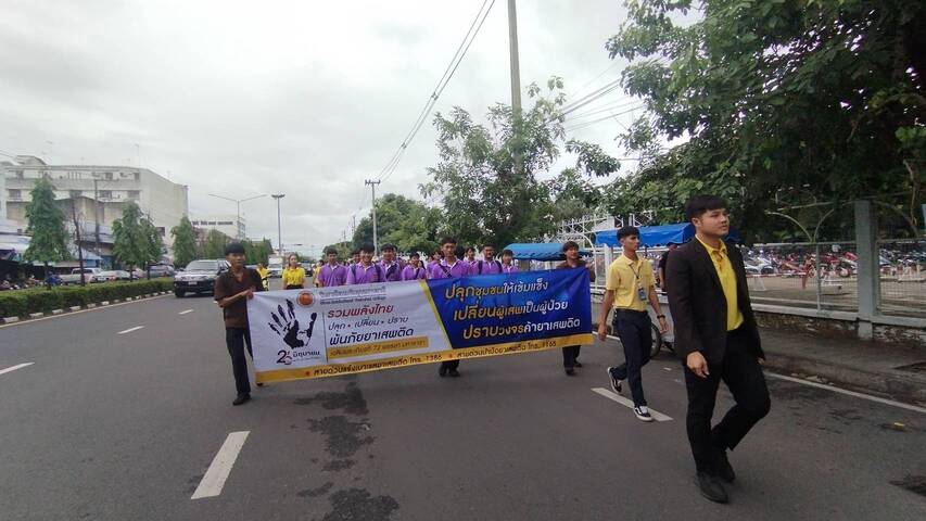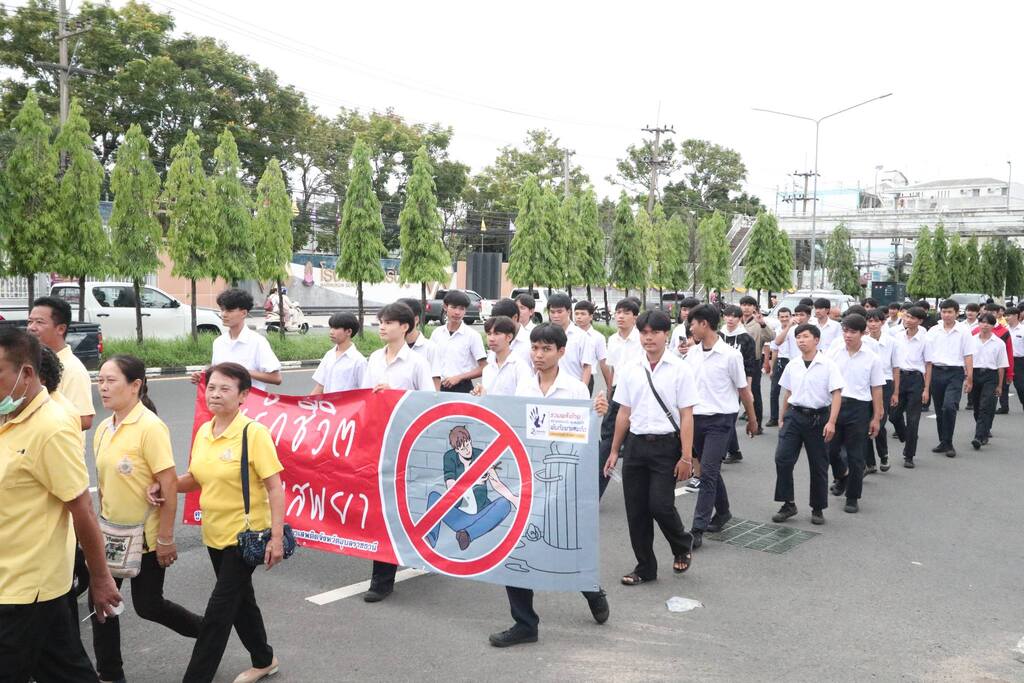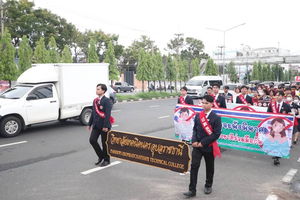 วันที่ ๒๖ มิถุนายน ๒๕๖๗ เวลา ๐๘.๓๐ น. นายธาตรี พิบูลมณฑา ผู้อำนวยการวิทยาลัยเทคนิคอุบลราชธานี มอบหมายให้ นายไวพจน์ ศรีธัญ รองผู้อำนวยการฝ่ายพัฒนากิจการนักเรียนนักศึกษา พร้อมด้วยคณะครู และนักเรียน นักศึกษา แผนกวิชาช่างไฟฟ้ากำลัง วิทยาลัยเทคนิคอุบลราชธานี เข้าร่วมพิธีเปิดกิจกรรมรณรงค์ต้านยาเสพติด เนื่องในวันต่อต้านยาเสพติดโลก (๒๖ มิถุนายน) ปี ๒๕๖๗ ณ หอประชุมไพรพะยอม มหาวิทยาลัยราชภัฏอุบลราชธานี ในการนี้ได้รับเกียรติจาก นายศุภศิษย์ กอเจริญยศ ผู้ว่าราชการจังหวัดอุบลราชธานี เป็นประธานในพิธี โดยมี นายสรรพสิทธิ์ ละออเอี่ยม หัวหน้างานปกครอง พร้อมด้วยคณะครู แผนกวิชาช่างกลโรงงาน และแผนกวิชาช่างยนต์/เครื่องกล นำตัวแทนนักเรียน นักศึกษา วิทยาลัยเทคนิคอุบลราชธานี ร่วมเดินขบวนรณรงค์ประชาสัมพันธ์เพื่อสร้างการรับรู้ เนื่องในวันต่อต้านยาเสพติดโลก ๒๖ มิถุนายน ซึ่งเริ่มจาก โรงเรียนสามัคคีวิทยาคาร ไปยังมหาวิทยาลัยราชภัฏอุบลราชธานี ทั้งนี้เพื่อยืนยันเจตนารมณ์ในการรณรงค์ต่อต้านยาเสพติด เนื่องในวันต่อต้านยาเสพติดโลก ประจำปี ๒๕๖๗ ต่อไป