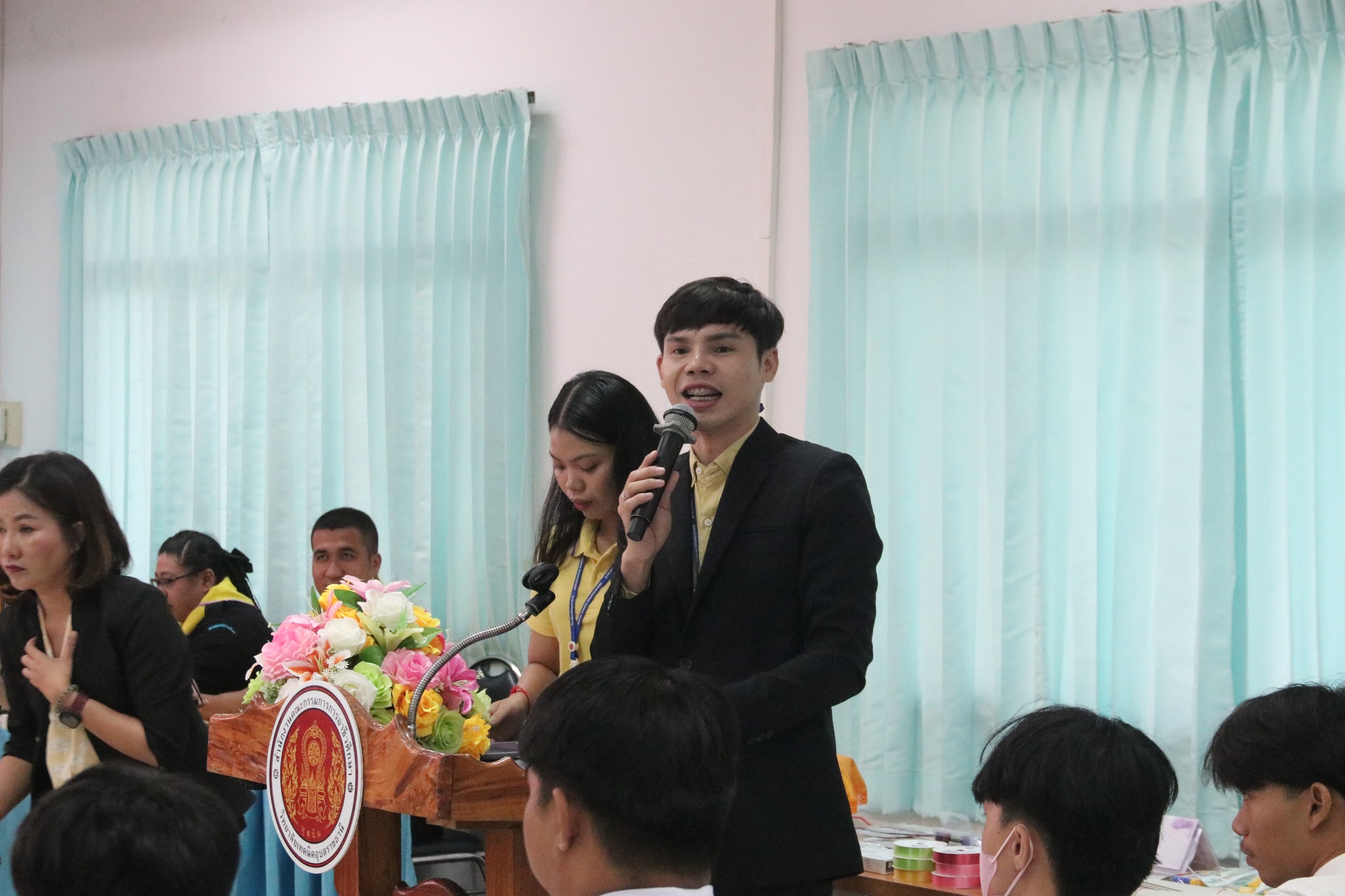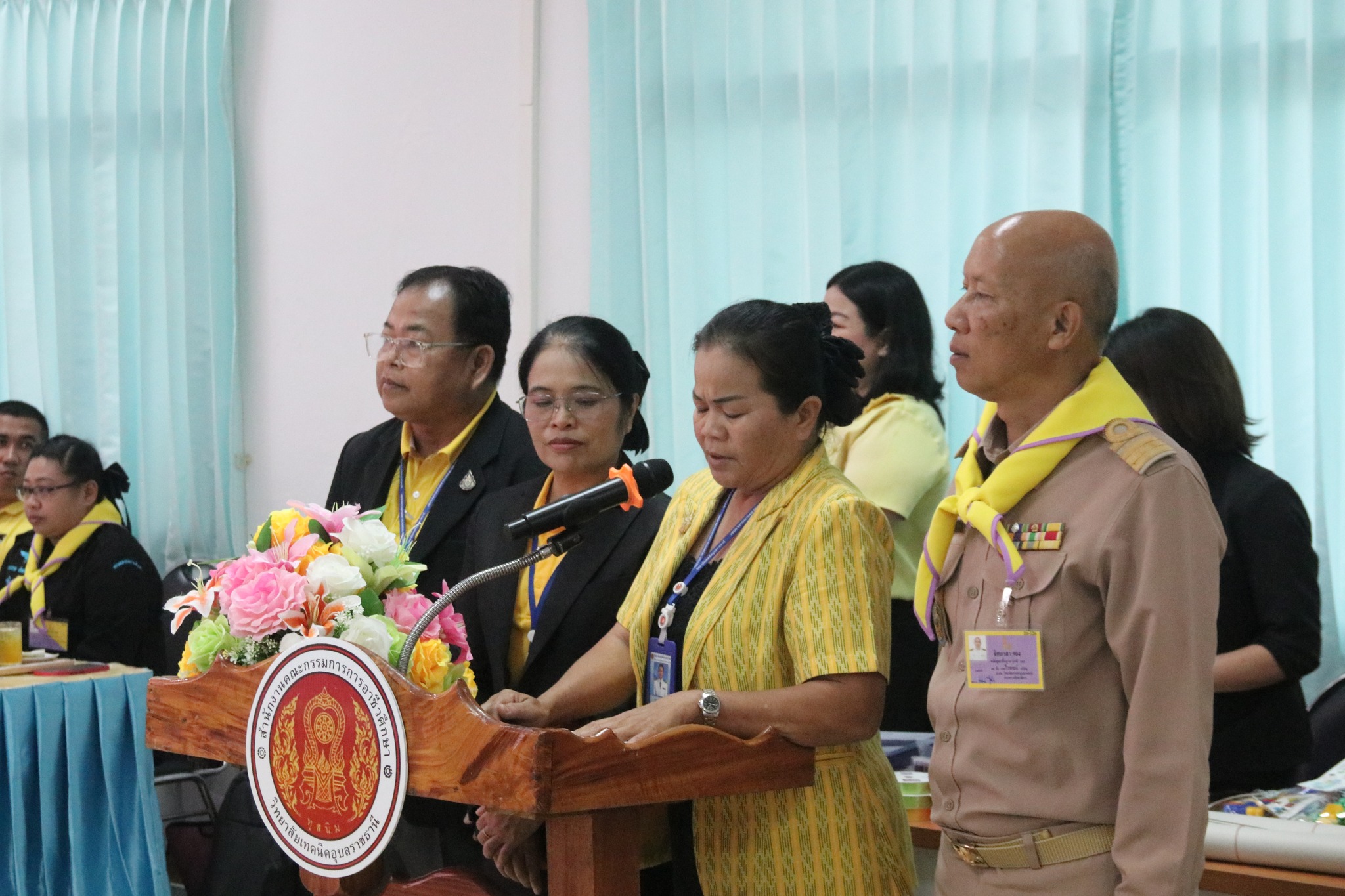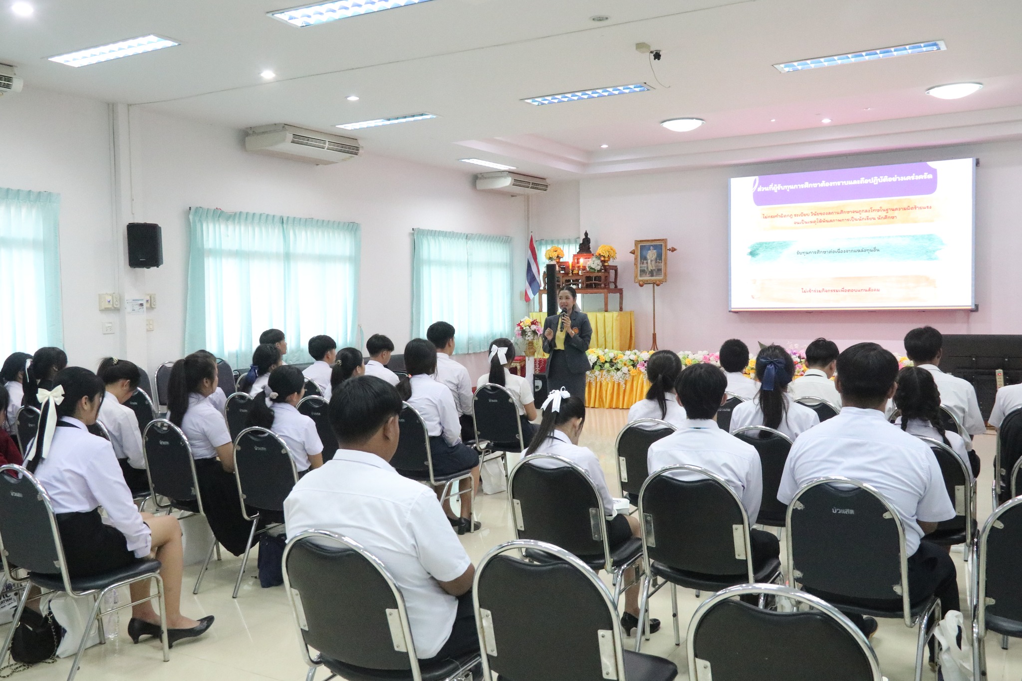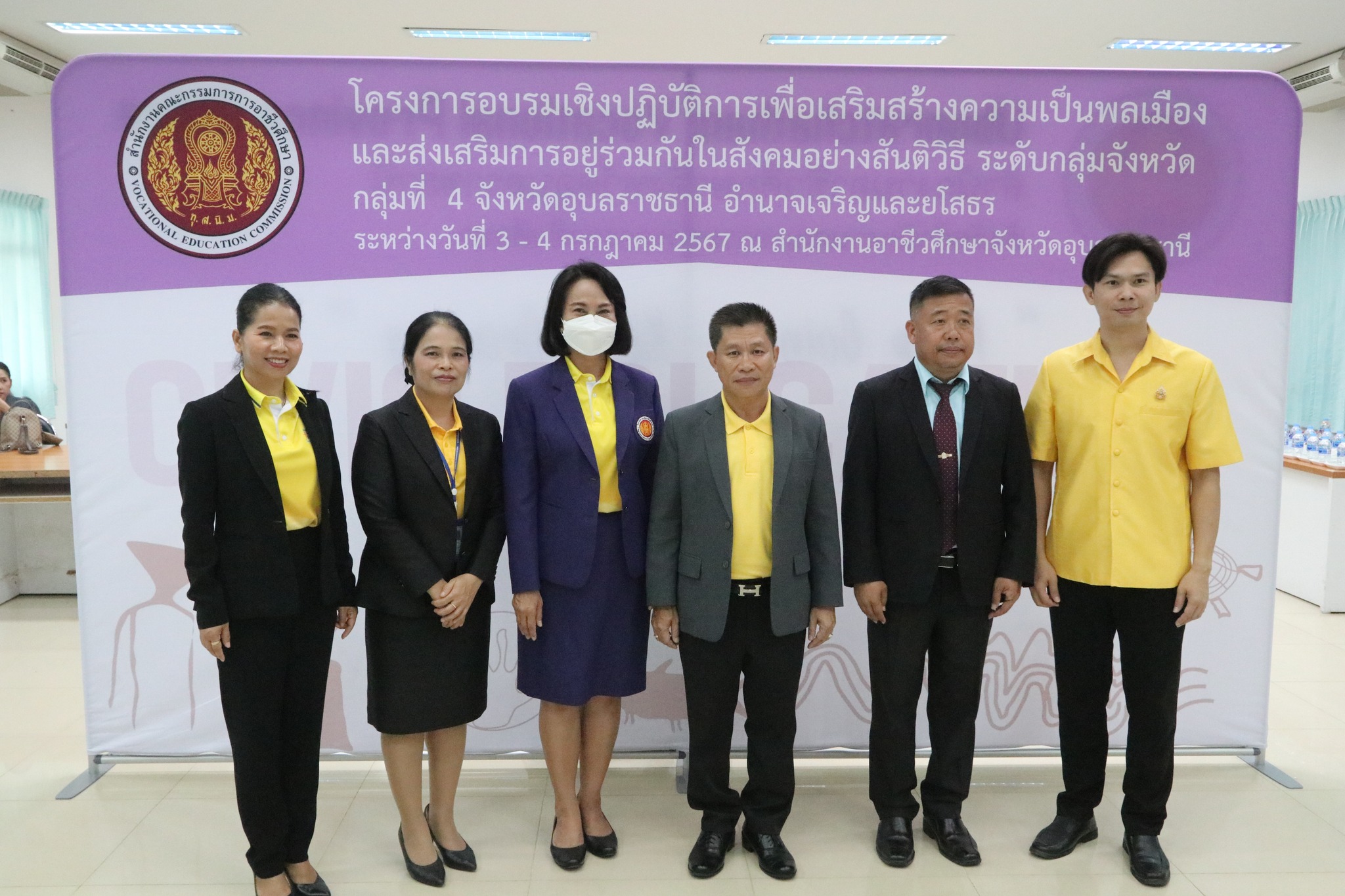 วันที่ ๓ กรกฎาคม ๒๕๖๗ เวลา ๐๙.๐๐ น. นายธาตรี พิบูลมณฑา ผู้อำนวยการวิทยาลัยเทคนิคอุบลราชธานี ปฏิบัติหน้าที่ ผู้อำนวยการสำนักงานอาชีวศึกษาจังหวัดอุบลราชธานี ให้เกียรติเป็นประธานในพิธีเปิดโครงการอบรมเชิงปฏิบัติการเพื่อสร้างความเป็นพลเมือง (Civic Education) และส่งเสริมการอยู่ร่วมกันในสังคมอย่างสันติวิธี ระดับกลุ่มจังหวัด กลุ่มที่ ๔ ณ ห้องประชุมบัวแสด วิทยาลัยเทคนิคอุบลราชธานี ซึ่งดำเนินการอบรมระหว่างวันที่ ๓ – ๔ กรกฎาคม ๒๕๖๗ ในการนี้มี นางราตรี สะดีวงศ์ รองผู้อำนวยการฝ่ายแผนงานและความร่วมมือปฏิบัติหน้าที่ เลขานุการอาชีวศึกษาจังหวัดอุบลราชธานี เป็นผู้กล่าวรายงานในพิธี โดยมีคณะผู้บริหาร ครู และบุคลากรทางการศึกษา นำนักเรียน นักศึกษา ทุนเฉลิมราชกุมารีจาก ๑๖ สถานศึกษา ประกอบด้วย สถานศึกษาในสังกัดสำนักงานอาชีวศึกษาจังหวัดอำนาจเจริญ ยโสธร และอุบลราชธานี เข้าร่วมการอบรมอย่างพร้อมเพรียง ทั้งนี้เพื่อให้ผู้รับทุนมีความรู้ความเข้าใจเกี่ยวกับสิทธิ หน้าที่ของผู้รับทุนเห็นคุณค่าของการเป็นผู้รับทุนการศึกษา มีทักษะชีวิตในประเด็น ความสามารถในการจัดการตนเอง มุ่งเรียนรู้ ให้เกิดจิตสำนึกที่ดีต่อสถาบันหลักของชาติ สามารถทำงานร่วมกับผู้อื่นและใช้ชีวิตร่วมกันในสังคมอย่างสันติวิธีต่อไป