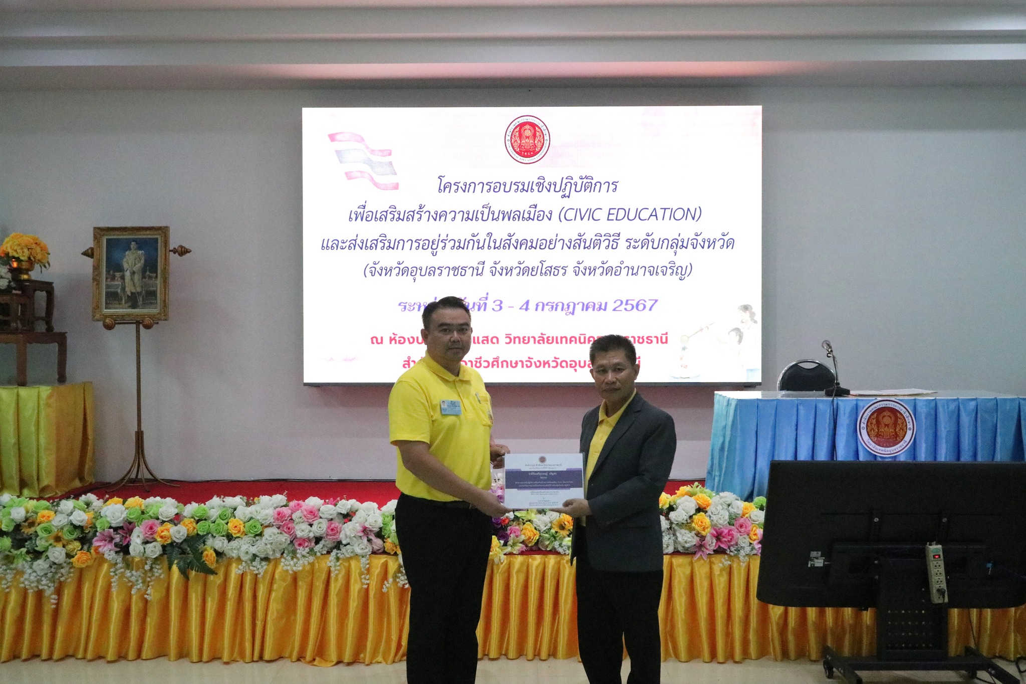 พิธีเปิดโครงการอบรมเชิงปฏิบัติการเพื่อสร้างความเป็นพลเมือง (Civic Education) และส่งเสริมการอยู่ร่วมกันในสังคมอย่างสันติวิธี ระดับกลุ่มจังหวัด กลุ่มที่ ๔