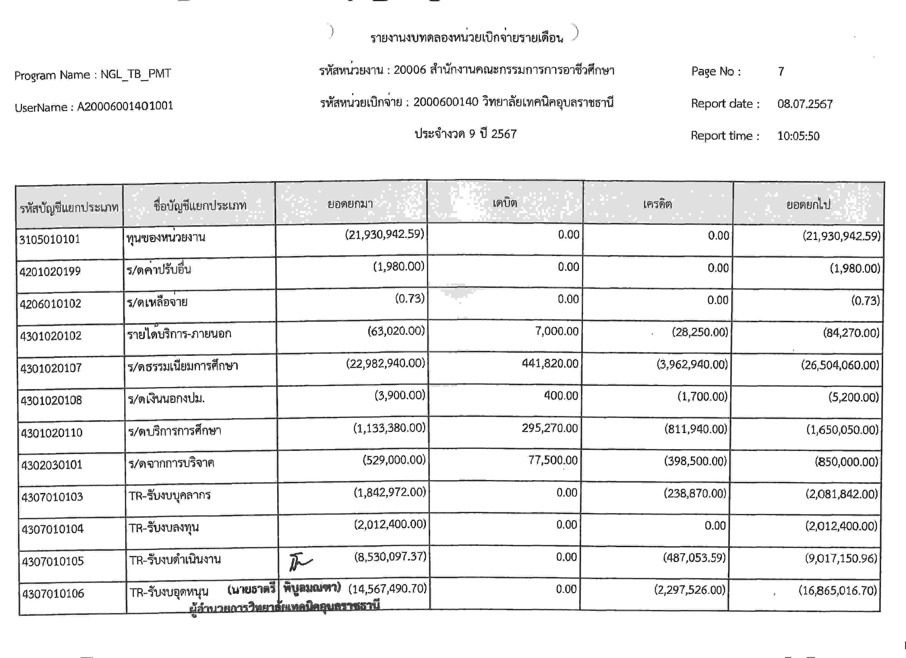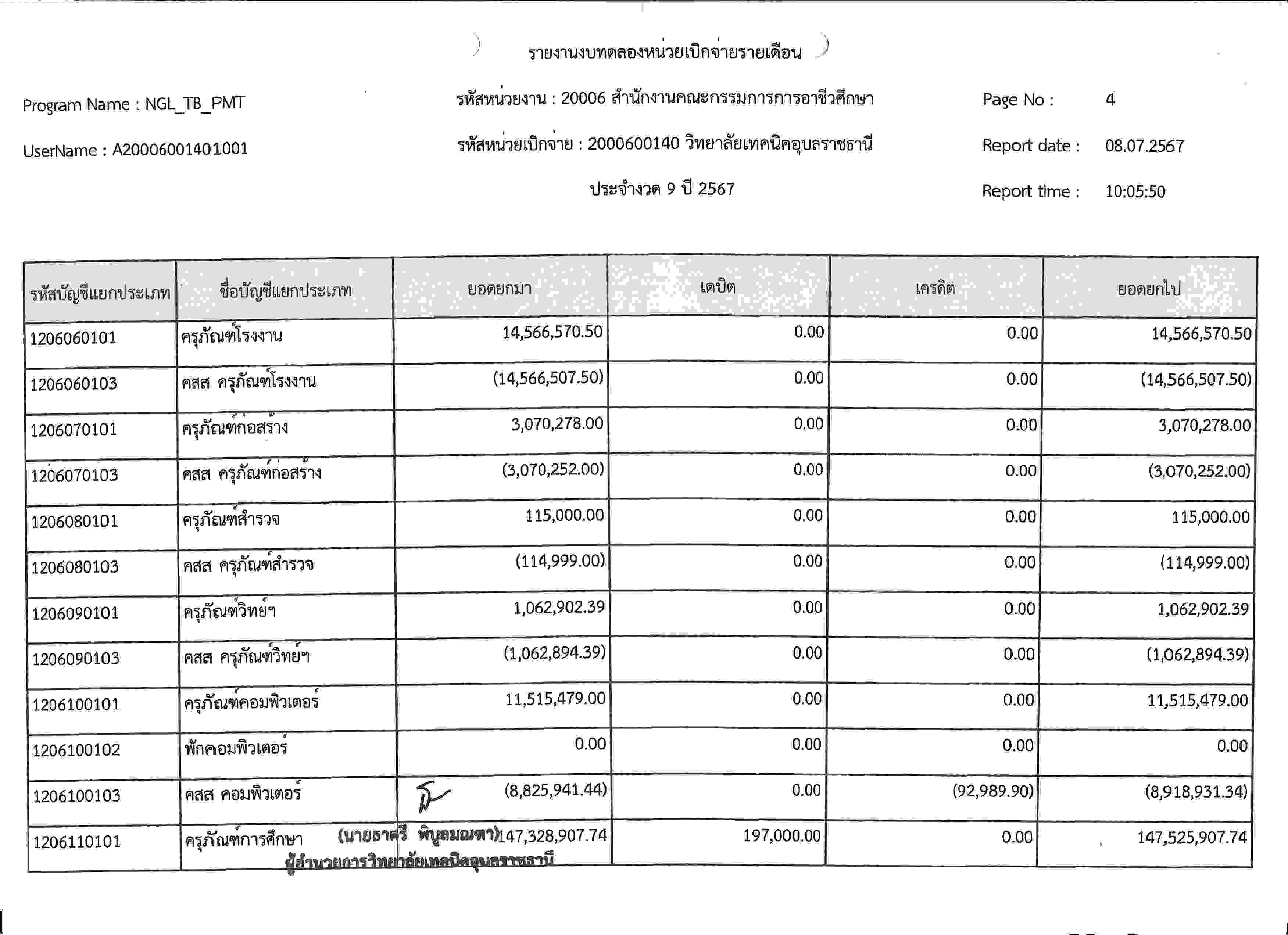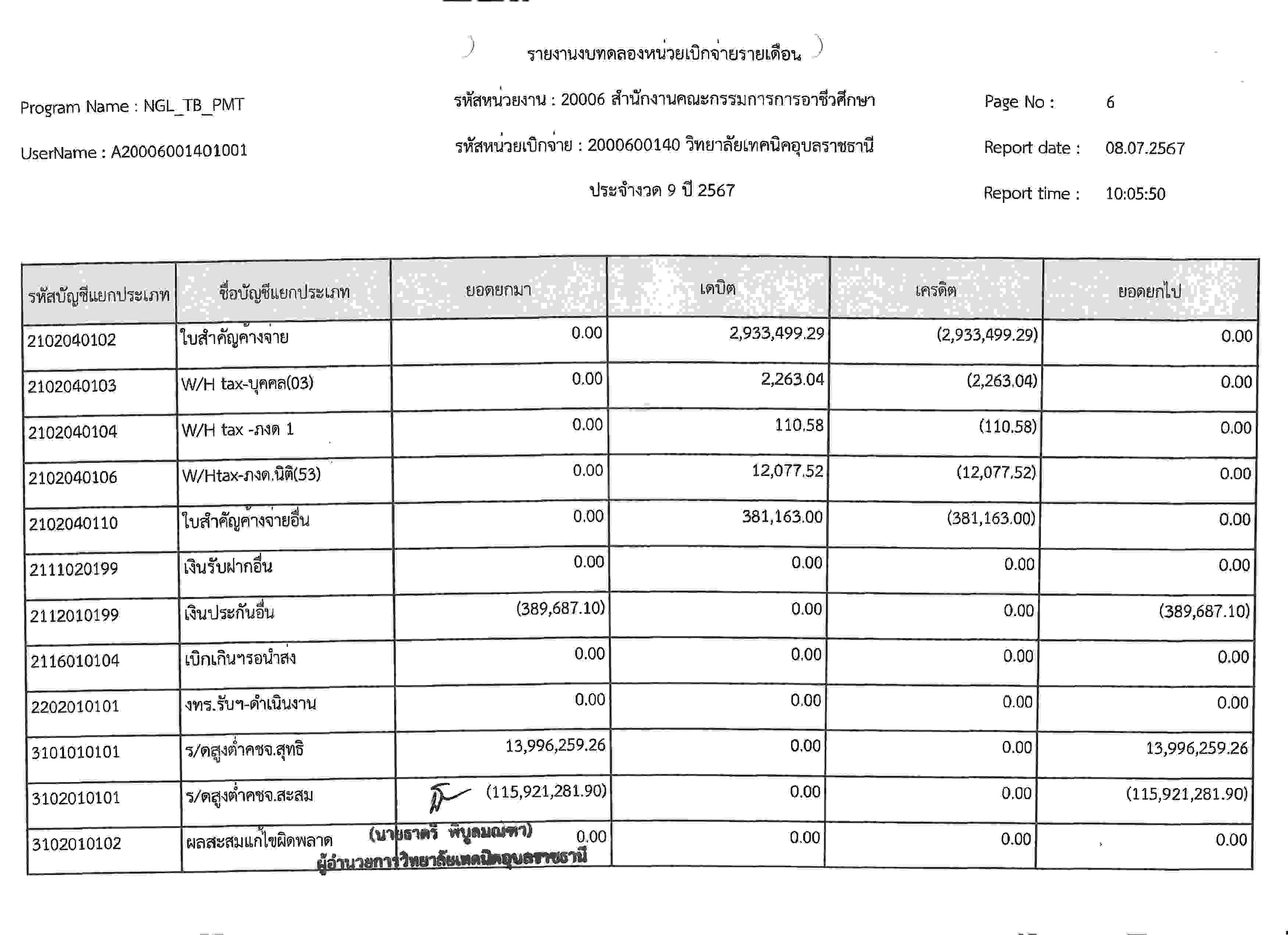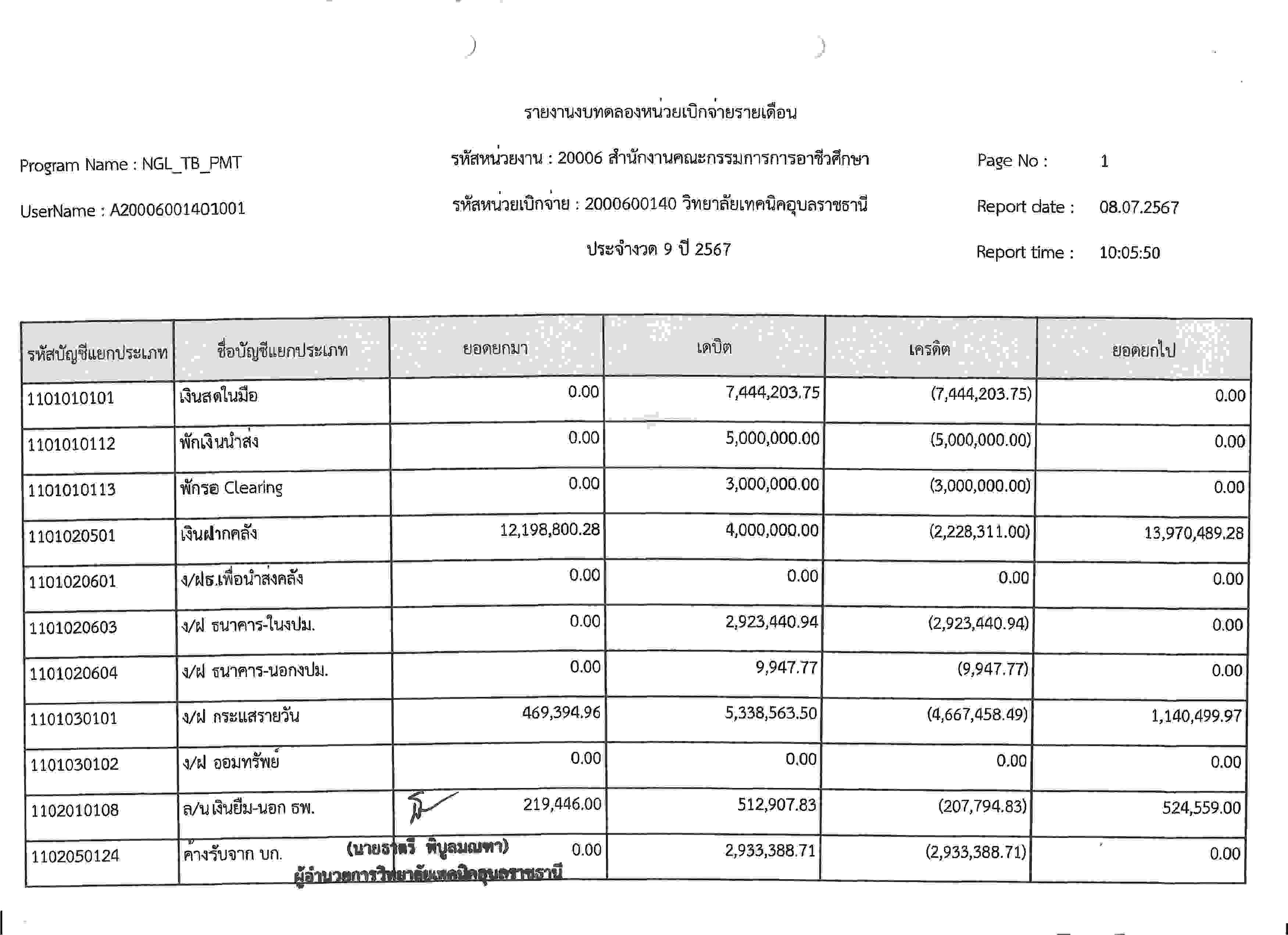 รายงานงบทดลองประจำเดือนมิถุนายน 2567