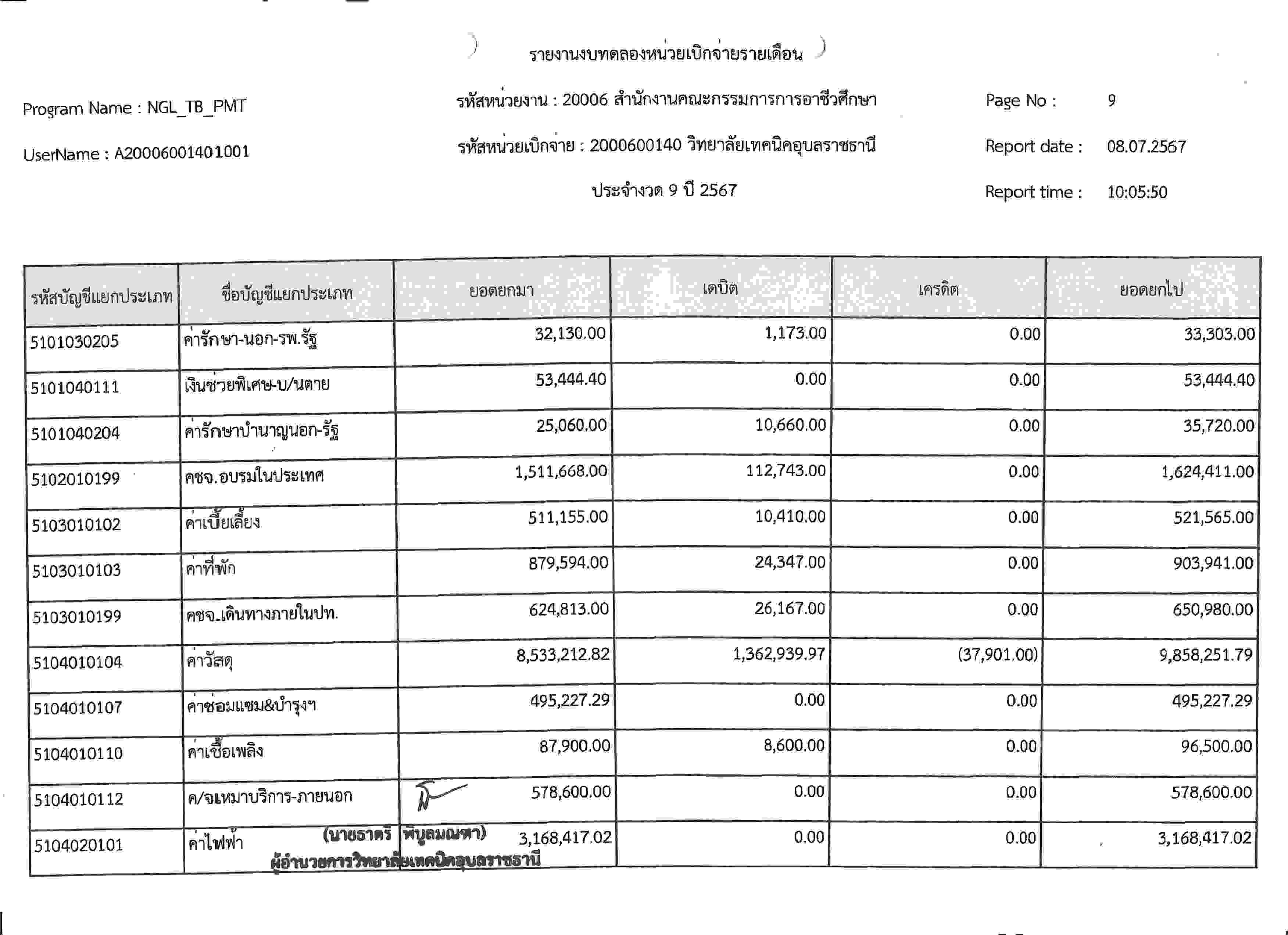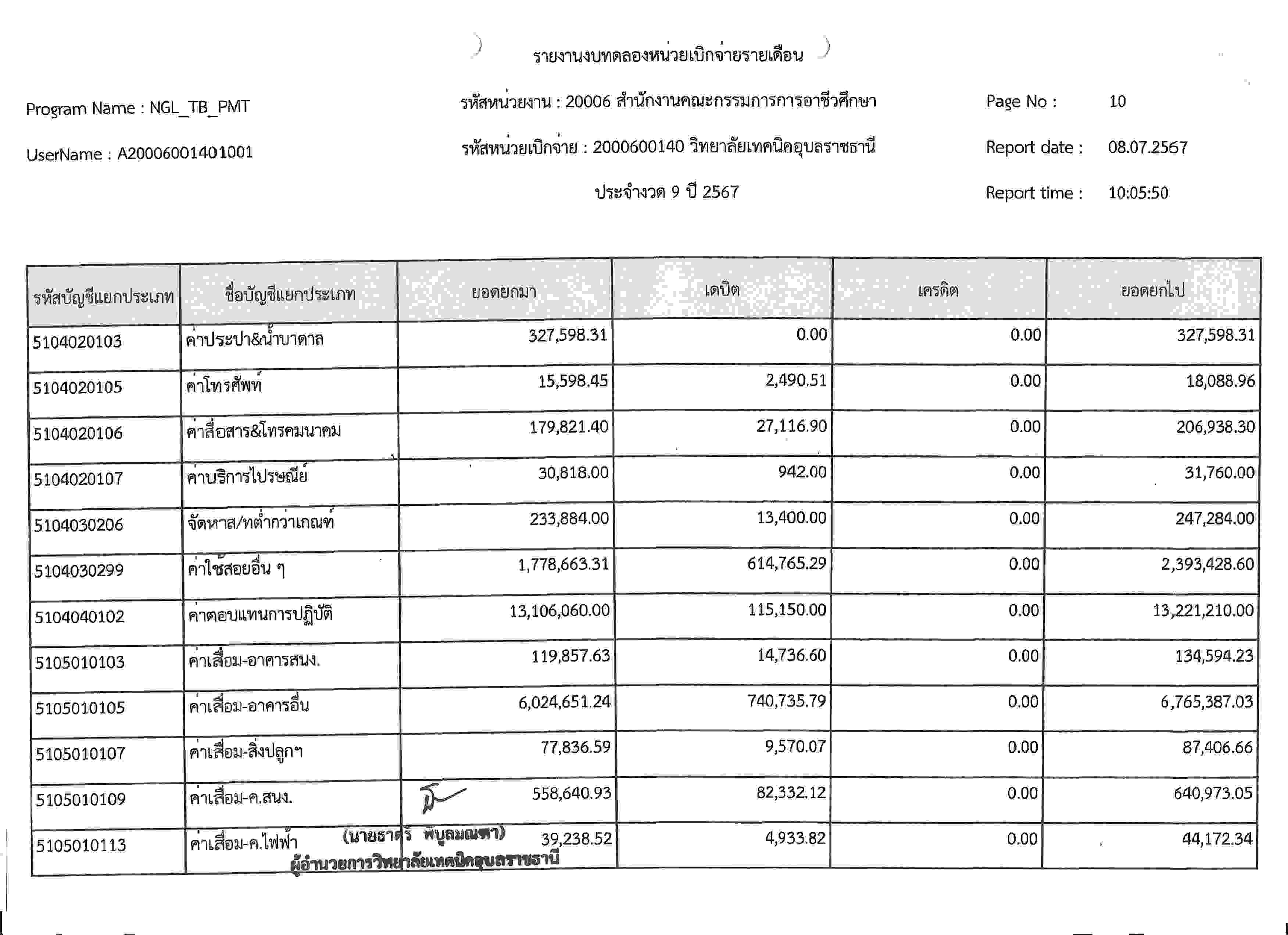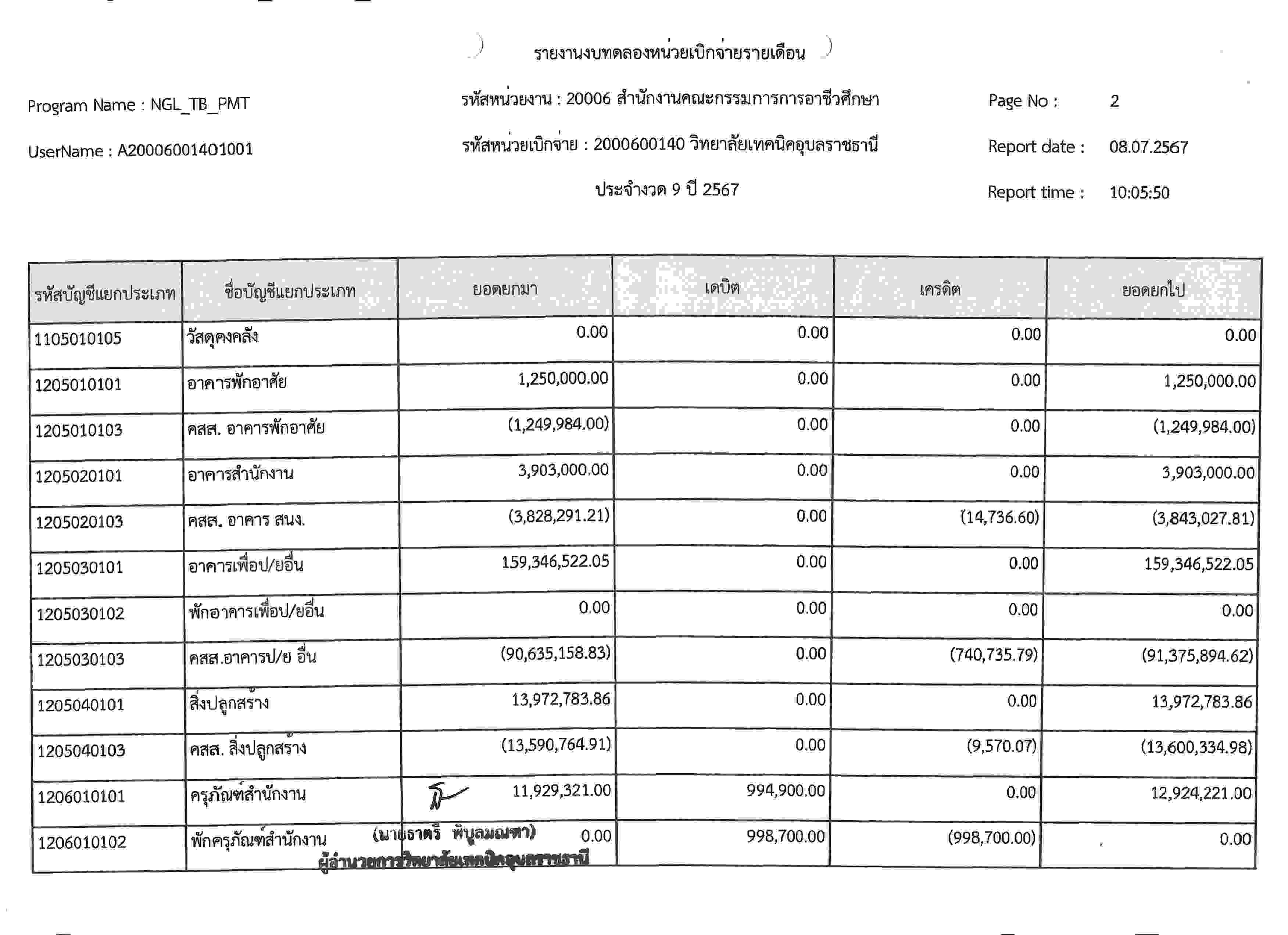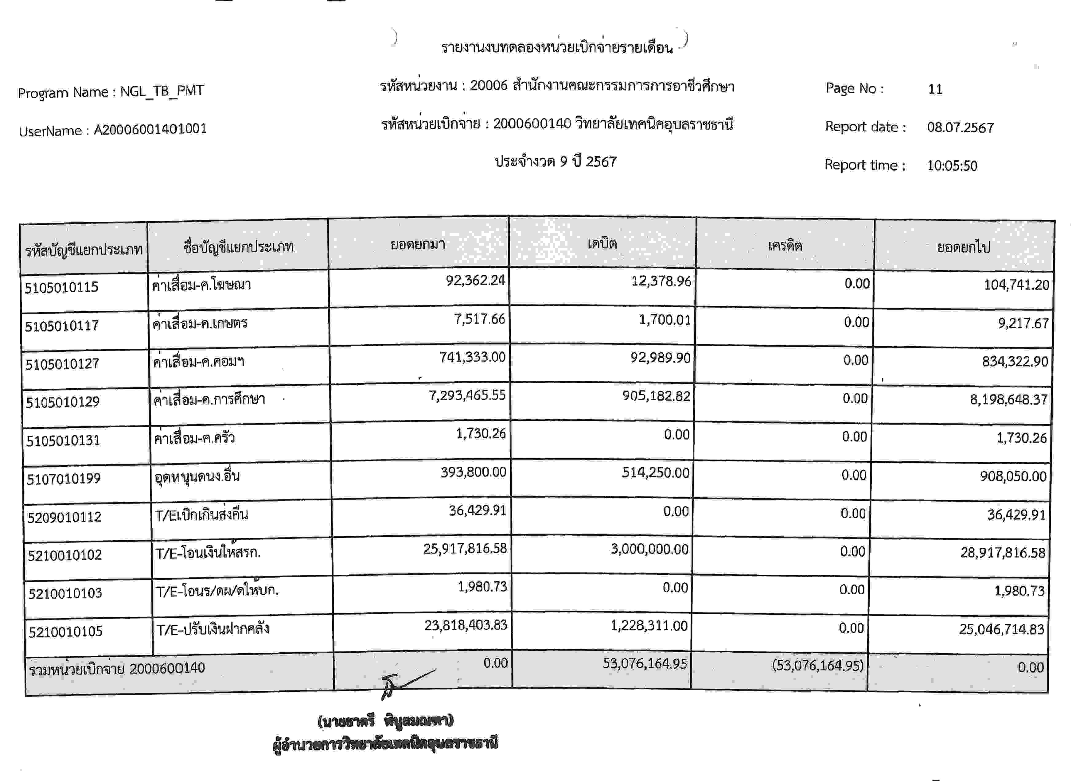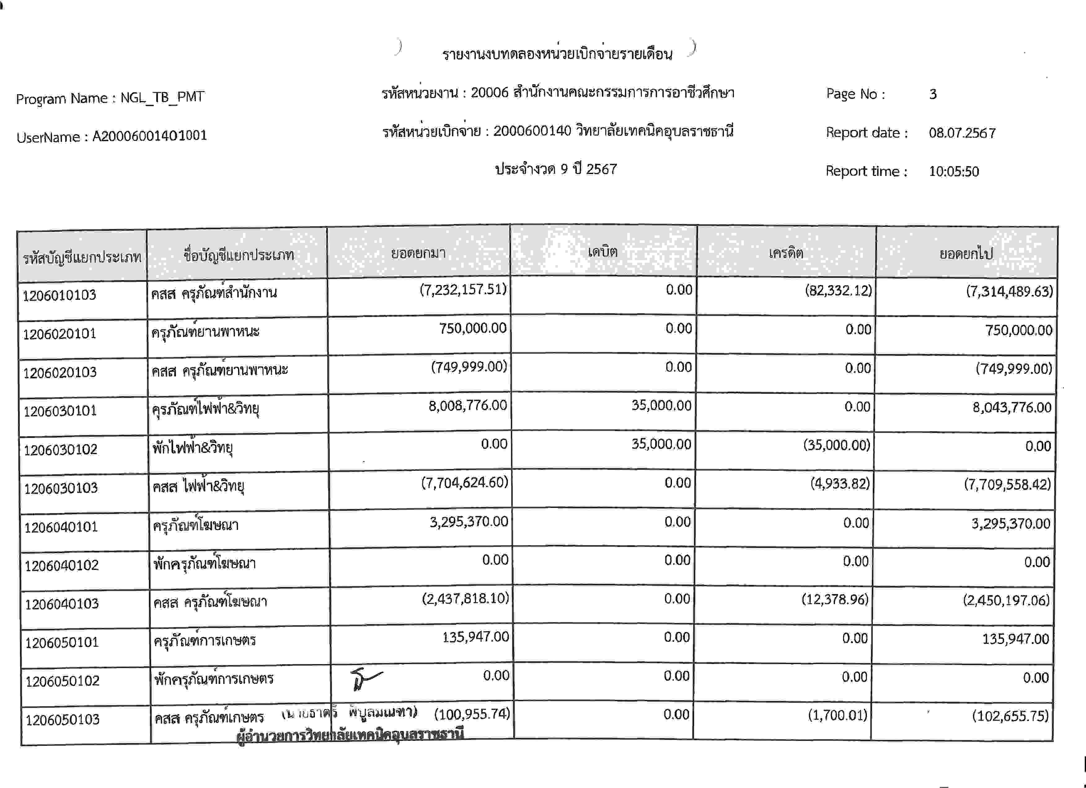 รายงานงบทดลองประจำเดือนมิถุนายน 2567