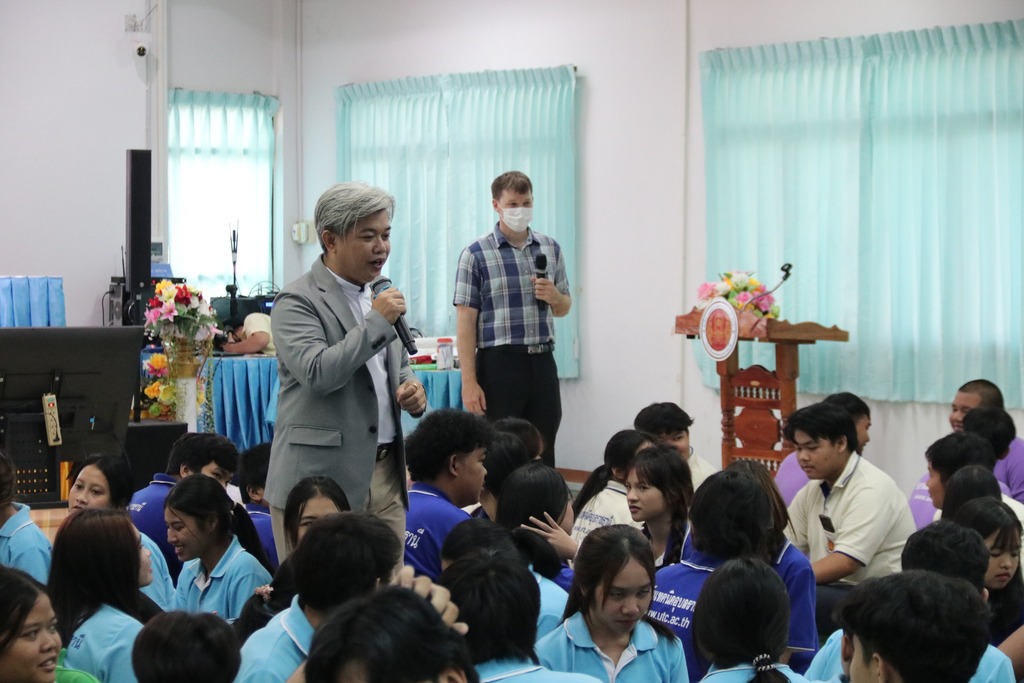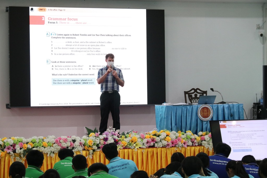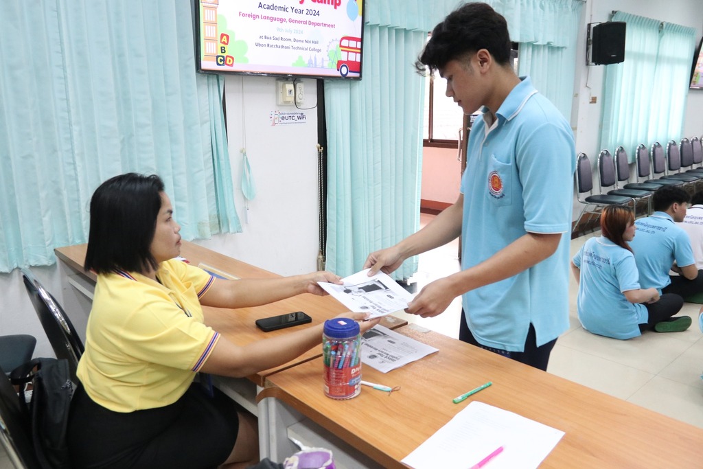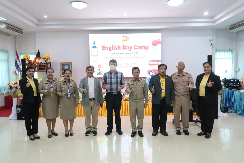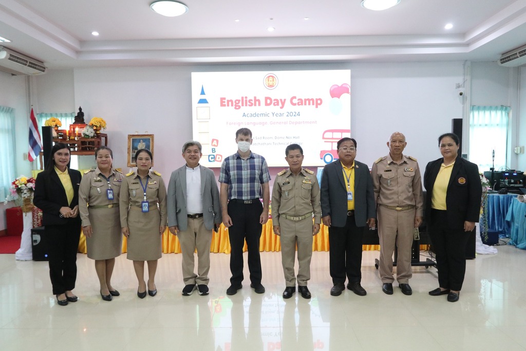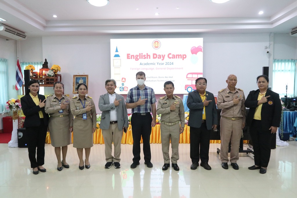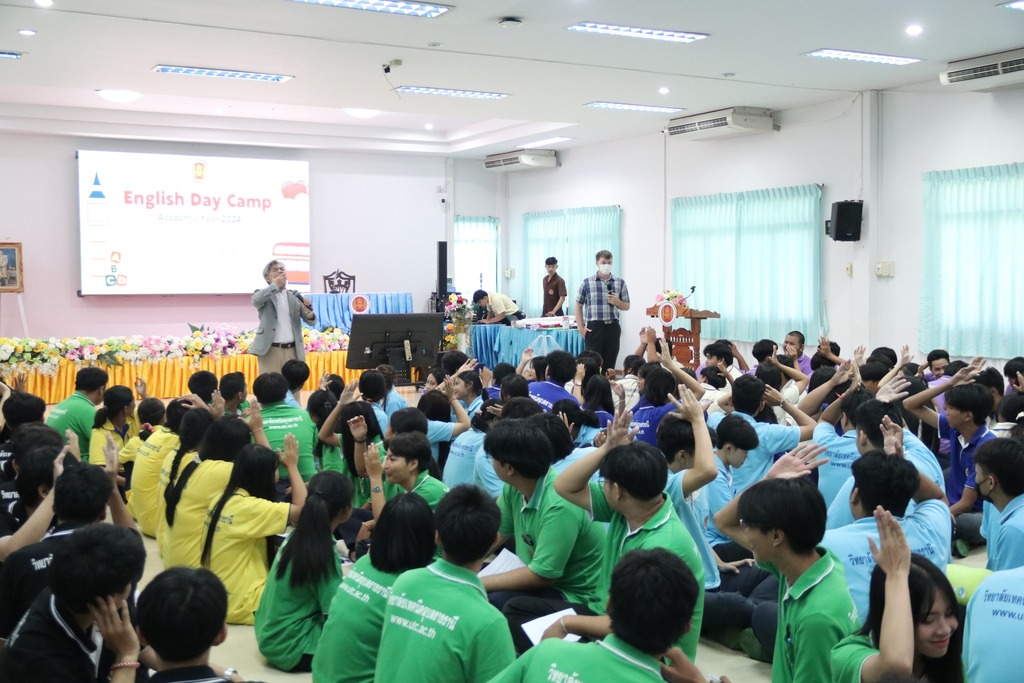 วันที่ ๙ กรกฎาคม ๒๕๖๗ เวลา ๐๙.๐๐ น. นายธาตรี พิบูลมณฑา ผู้อำนวยการวิทยาลัยเทคนิคอุบลราชธานี ให้เกียรติเป็นประธานในพิธีเปิดโครงการ English Day Camp ณ ห้องประชุมบัวแสด ซึ่งดำเนินการจัดโครงการโดย หมวดวิชาภาษาต่างประเทศ แผนกวิชาสามัญสัมพันธ์ และได้รับความอนุเคราะห์วิทยากรจากบริษัท Hybrid Success และวิทยาลัยอาชีวศึกษาอุบลราชธานี ในการนี้มี นายสุวิชา มั่นยืน รองผู้อำนวยการฝ่ายวิชาการ เป็นผู้กล่าวรายงาน โดยมี นายไวพจน์ ศรีธัญ รองผู้อำนวยการฝ่ายพัฒนากิจการนักเรียนนักศึกษา นางราตรี สะดีวงศ์ รองผู้อำนวยการฝ่ายแผนงานและความร่วมมือ นางสาวสายฝน สาระผล รองผู้อำนวยการฝ่ายบริหารทรัพยากร นายอิทธิวัฒน์ ไทยแท้ หัวหน้าแผนกวิชาสามัญสัมพันธ์ นางสาวปรานี ศรีมันตะ หัวหน้าหมวดวิชาภาษาต่างประเทศ แผนกวิชาสามัญสัมพันธ์ พร้อมด้วยคณะครู แผนกวิชาสามัญสัมพันธ์ และบุคลากรทางการศึกษาที่เกี่ยวข้อง นำนักเรียน นักศึกษา วิทยาลัยเทคนิคอุบลราชธานี เข้าร่วมพิธีอย่างพร้อมเพรียง ทั้งนี้เพื่อพัฒนาทักษะทางด้านภาษาอังกฤษ ในชีวิตประจำวัน เพื่อให้นักเรียน นักศึกษา ได้แลกเปลี่ยนเรียนรู้ภาษาและวัฒนธรรมต่างประเทศเป็นการเชื่อมความสัมพันธ์ระหว่างนักเรียน นักศึกษา ได้แลกเปลี่ยนเรียนรู้ประสบการณ์ร่วมกัน และเพื่อให้นักเรียนนักศึกษามีเจตคติที่ดีต่อการเรียนวิชาภาษาวิชาอังกฤษต่อไป