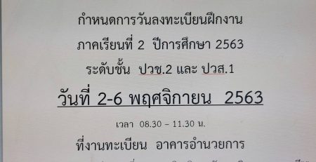 กำหนดการเลื่อนการฝึกอาชีพ/ฝึกประสบการณ์วิชาชีพ ประจำภาคเรียนที่ ๑/๒๕๖๓