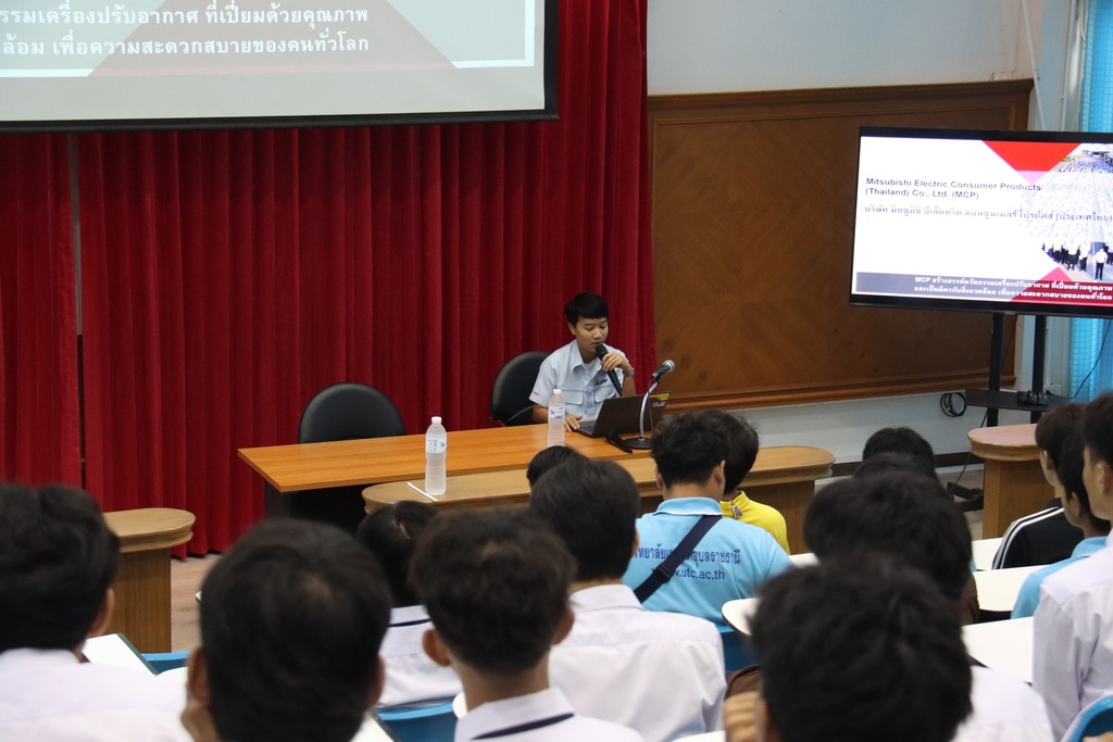 วันที่ ๑๑ กรกฎาคม ๒๕๖๗ เวลา ๐๙.๐๐ น. นายธาตรี พิบูลมณฑา ผู้อำนวยการวิทยาลัยเทคนิคอุบลราชธานี ได้มอบหมายให้ นายสุวิชา มั่นยืน รองผู้อำนวยการฝ่ายวิชาการ พร้อมด้วย นายวิเชียร กำทอง หัวหน้าแผนกวิชาอิเล็กทรอนิกส์ นายทรงศักดิ์ สัตนาโค หัวหน้างานอาชีวศึกษาระบบทวิภาคี และนายคารม แก้วกันยา ครูแผนกวิชาอิเล็กทรอนิกส์ นำนักศึกษา ระดับชั้น ปวส. แผนกวิชาอิเล็กทรอนิกส์ เข้ารับฟังการแนะแนวและรับสมัครนักเรียน นักศึกษา ณ ห้องประชุมบัวฟ้า โดยได้รับความอนุเคราะห์วิทยากรจาก บริษัท มิตซูบิชิ อีเล็กทริค คอนซูมเมอร์ โปรดักส์ (ประเทศไทย) จำกัด ทั้งนี้เพื่อให้นักศึกษาได้รับประสบการณ์ในการทำงาน ตลอดจนได้ฝึกภาคปฏิบัติ จากการปฏิบัติงานจริงและเมื่อจบภาคการศึกษาแล้ว สามารถนำไปพัฒนาตนเองเพื่อให้เป็นบุคลากรที่มีคุณภาพที่เหมาะสมและเป็นที่ต้องการของตลาดแรงงานต่อไป
