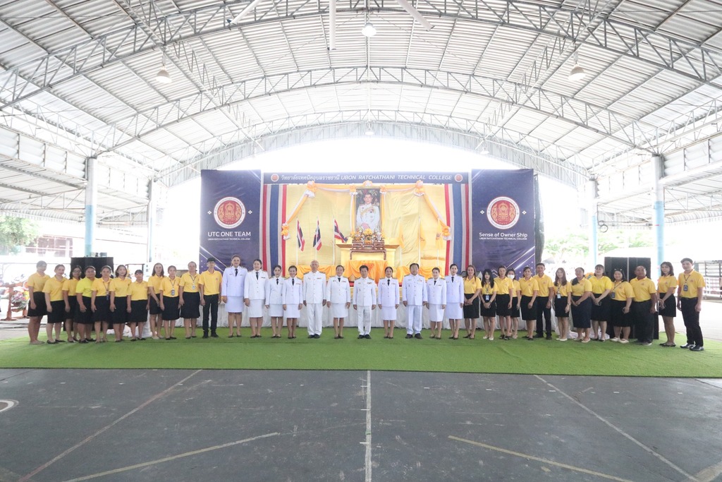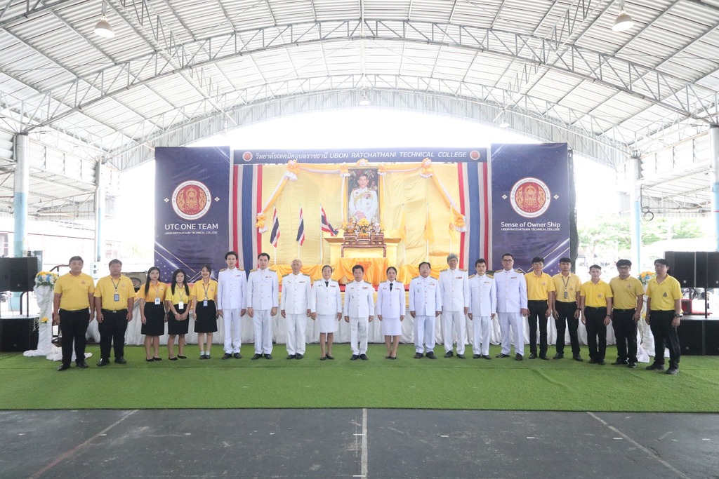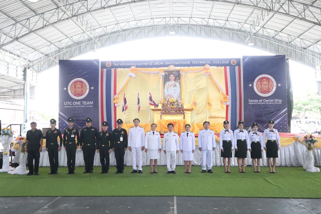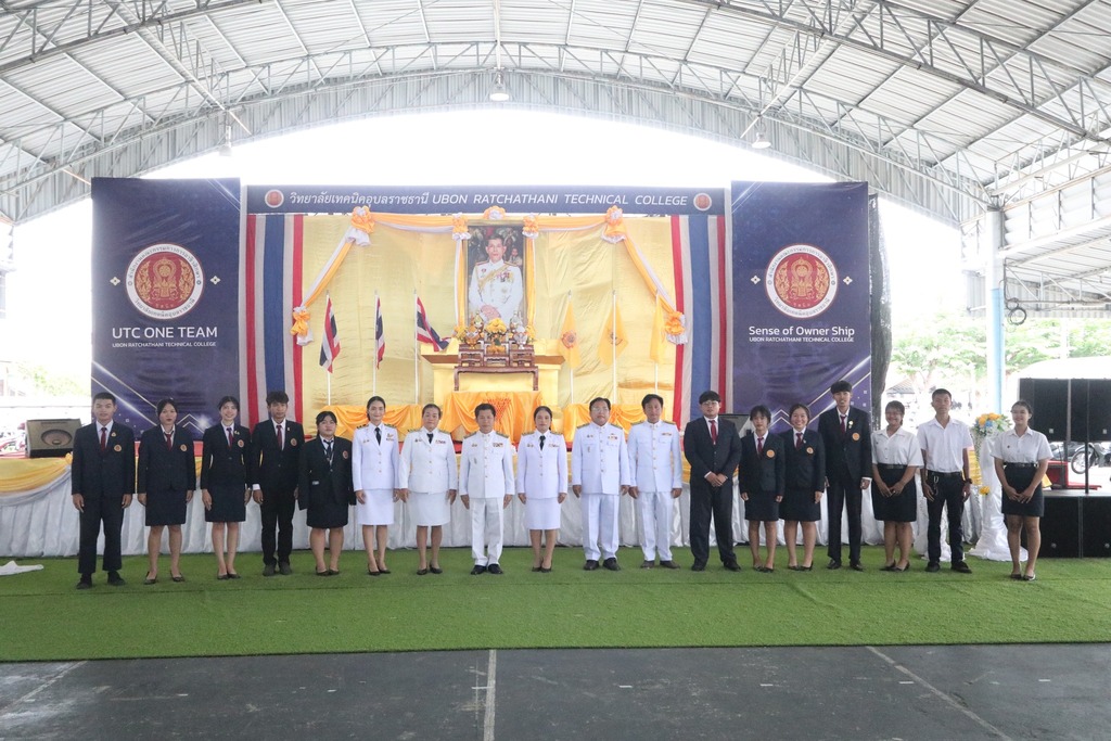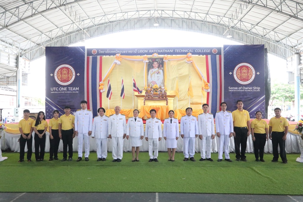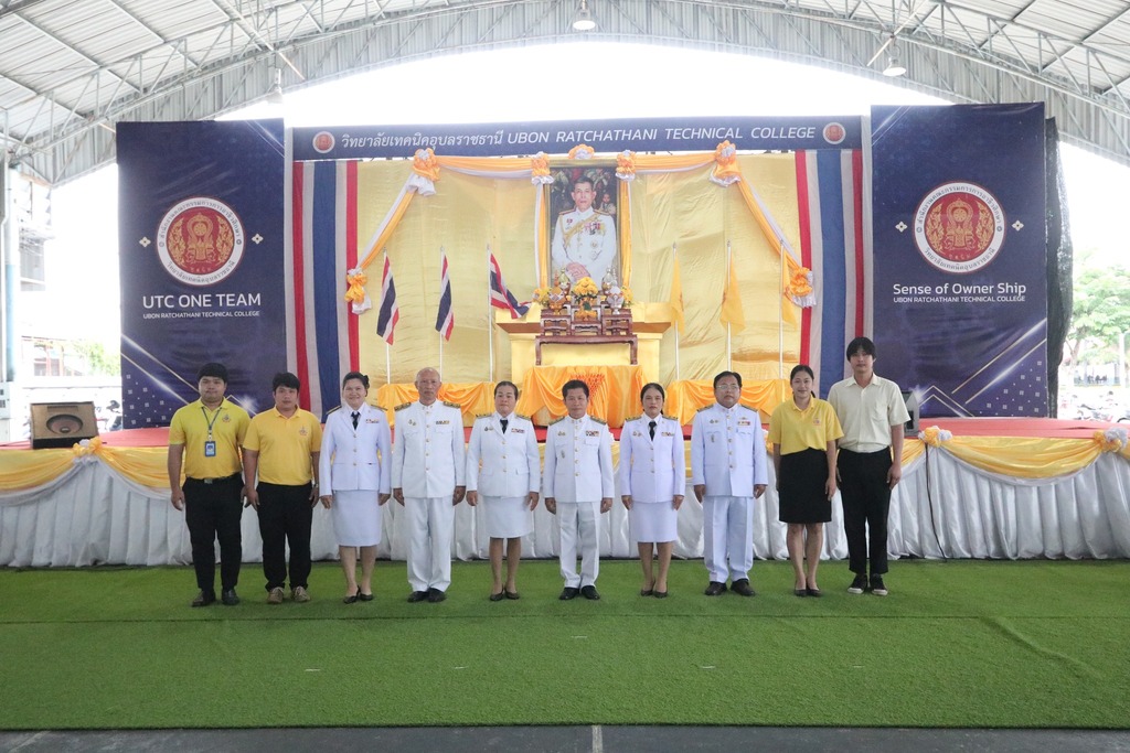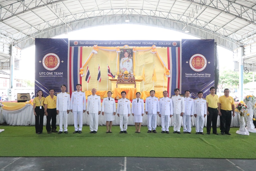 วันที่ ๒๖ กรกฎาคม ๒๕๖๗ เวลา ๐๘.๐๐ น. นายธาตรี พิบูลมณฑา ผู้อำนวยการวิทยาลัยเทคนิคอุบลราชธานี ให้เกียรติเป็นประธานในพิธีเฉลิมพระเกียรติและพิธีถวายสัตย์ปฏิญาณเพื่อเป็นข้าราชการที่ดีและพลังของแผ่นดิน เนื่องในโอกาสพระราชพิธีมหามงคลเฉลิมพระชนมพรรษา ๖ รอบ ๒๘ กรกฎาคม ๒๕๖๗ พระบาทสมเด็จพระปรเมนทรรามาธิบดีศรีสินทรมหาวชิราลงกรณ พระวชิรเกล้าเจ้าอยู่หัว ณ หอประชุมโดมใหญ่ วิทยาลัยเทคนิคอุบลราชธานี โดยมี นายไวพจน์ ศรีธัญ รองผู้อำนวยการฝ่ายพัฒนากิจการนักเรียนนักศึกษา นายสุวิชา มั่นยืน รองผู้อำนวยการฝ่ายวิชาการ นางราตรี สะดีวงศ์ รองผู้อำนวยการฝ่ายแผนงานและความร่วมมือ นางสาวสายฝน สาระผลรองผู้อำนวยการฝ่ายบริหารทรัพยากร พร้อมด้วยคณะครู บุคลากรทางการศึกษา และตัวแทนนักเรียน นักศึกษาวิทยาลัยเทคนิคอุบลราชธานี เข้าร่วมพิธีอย่างพร้อมเพรียง ทั้งนี้เพื่อแสดงความจงรักภักดีและน้อมสำนึกในพระมหากรุณาธิคุณที่พระองค์มีต่อพสกนิกรชาวไทย