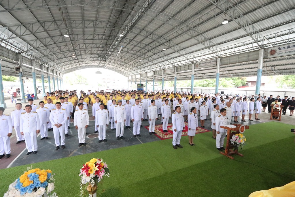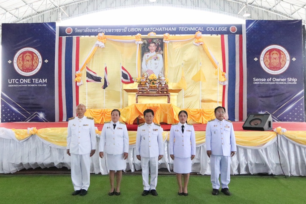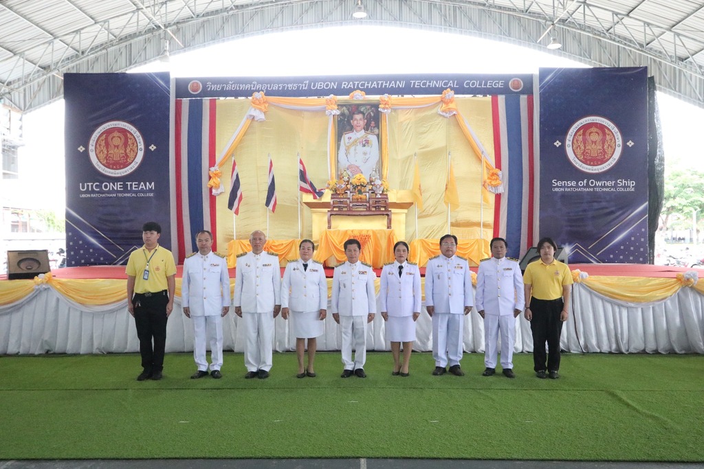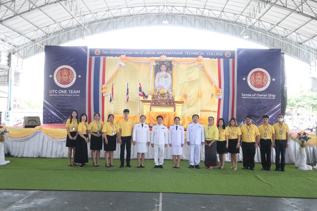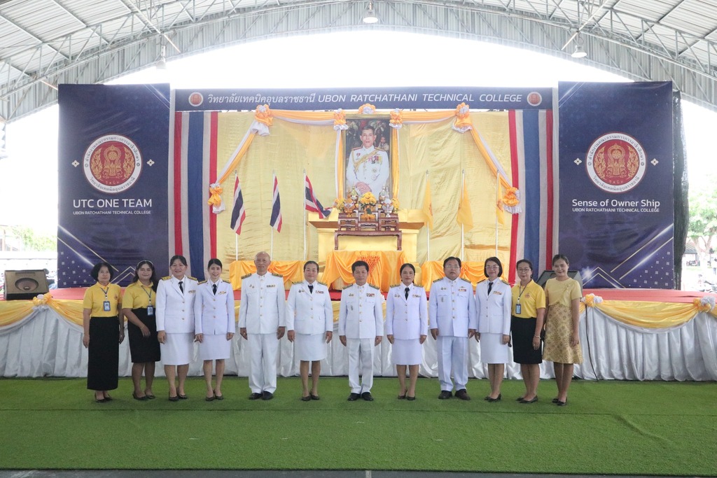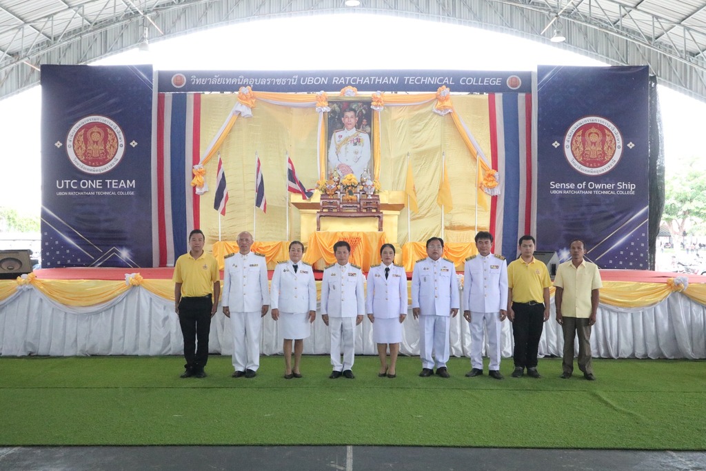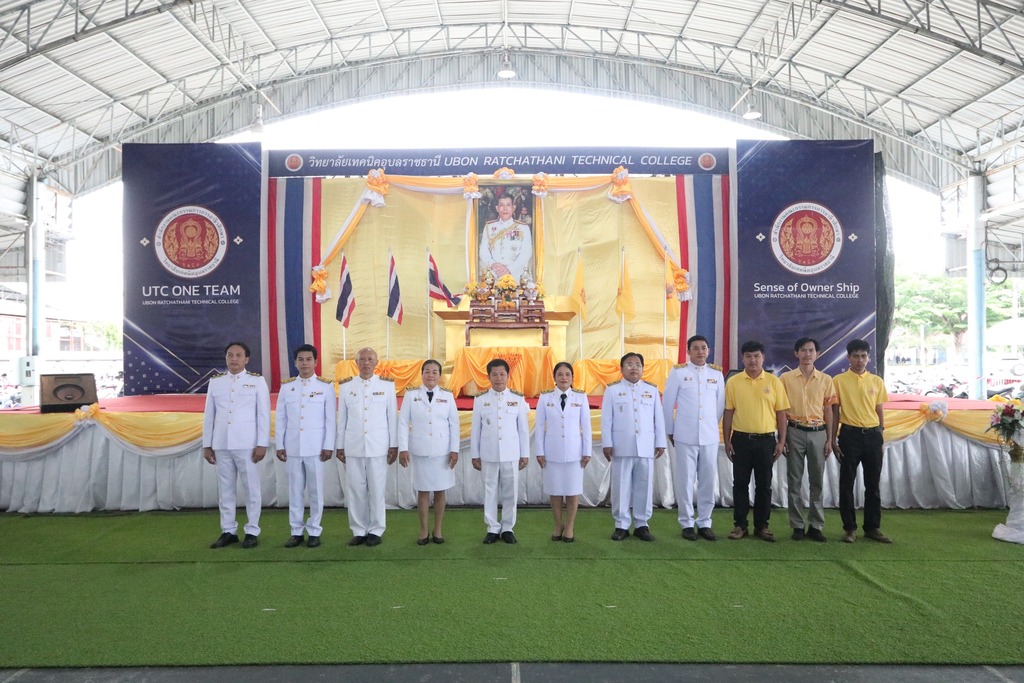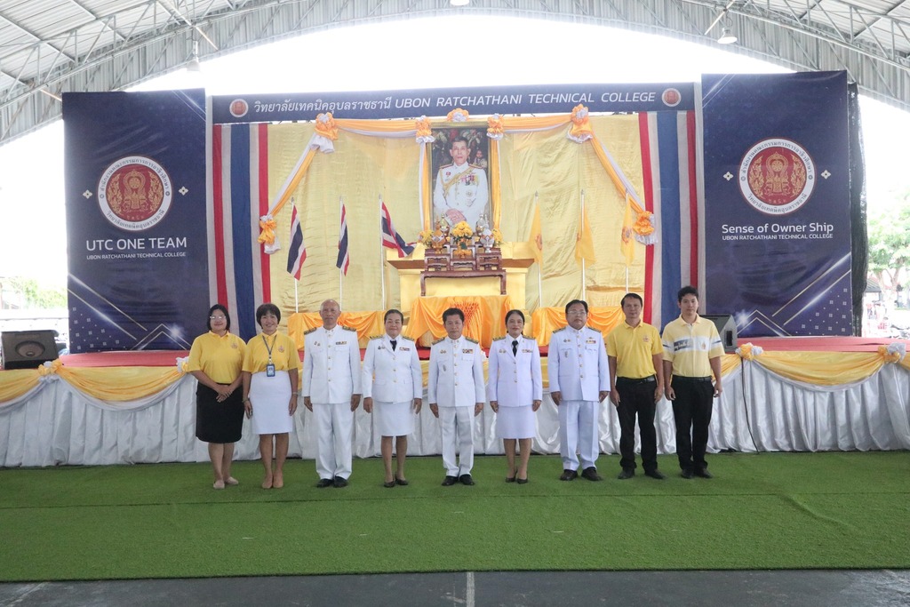วันที่ ๒๖ กรกฎาคม ๒๕๖๗ เวลา ๐๘.๐๐ น. นายธาตรี พิบูลมณฑา ผู้อำนวยการวิทยาลัยเทคนิคอุบลราชธานี ให้เกียรติเป็นประธานในพิธีเฉลิมพระเกียรติและพิธีถวายสัตย์ปฏิญาณเพื่อเป็นข้าราชการที่ดีและพลังของแผ่นดิน เนื่องในโอกาสพระราชพิธีมหามงคลเฉลิมพระชนมพรรษา ๖ รอบ ๒๘ กรกฎาคม ๒๕๖๗ พระบาทสมเด็จพระปรเมนทรรามาธิบดีศรีสินทรมหาวชิราลงกรณ พระวชิรเกล้าเจ้าอยู่หัว ณ หอประชุมโดมใหญ่ วิทยาลัยเทคนิคอุบลราชธานี โดยมี นายไวพจน์ ศรีธัญ รองผู้อำนวยการฝ่ายพัฒนากิจการนักเรียนนักศึกษา นายสุวิชา มั่นยืน รองผู้อำนวยการฝ่ายวิชาการ นางราตรี สะดีวงศ์ รองผู้อำนวยการฝ่ายแผนงานและความร่วมมือ นางสาวสายฝน สาระผลรองผู้อำนวยการฝ่ายบริหารทรัพยากร พร้อมด้วยคณะครู บุคลากรทางการศึกษา และตัวแทนนักเรียน นักศึกษาวิทยาลัยเทคนิคอุบลราชธานี เข้าร่วมพิธีอย่างพร้อมเพรียง ทั้งนี้เพื่อแสดงความจงรักภักดีและน้อมสำนึกในพระมหากรุณาธิคุณที่พระองค์มีต่อพสกนิกรชาวไทย