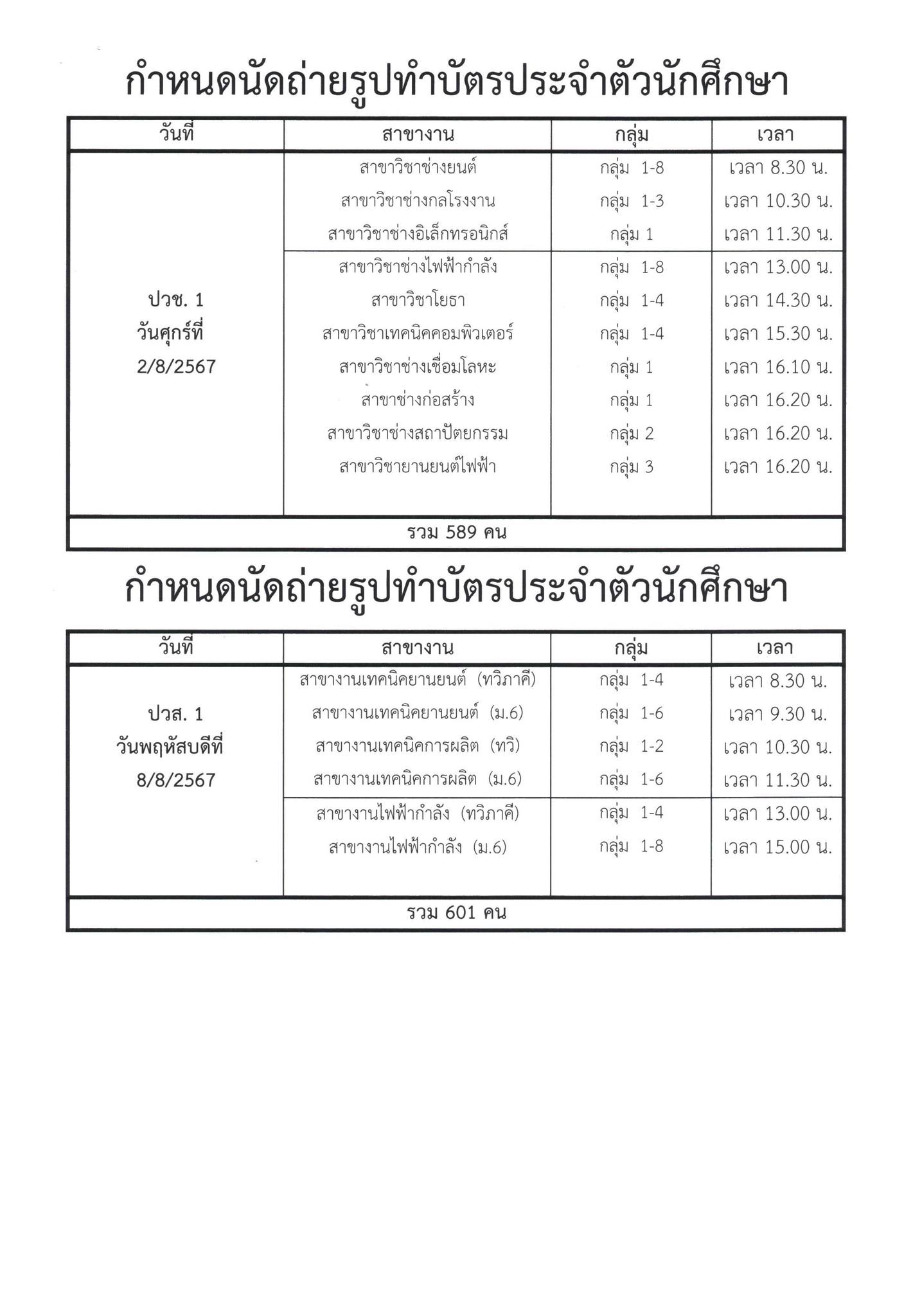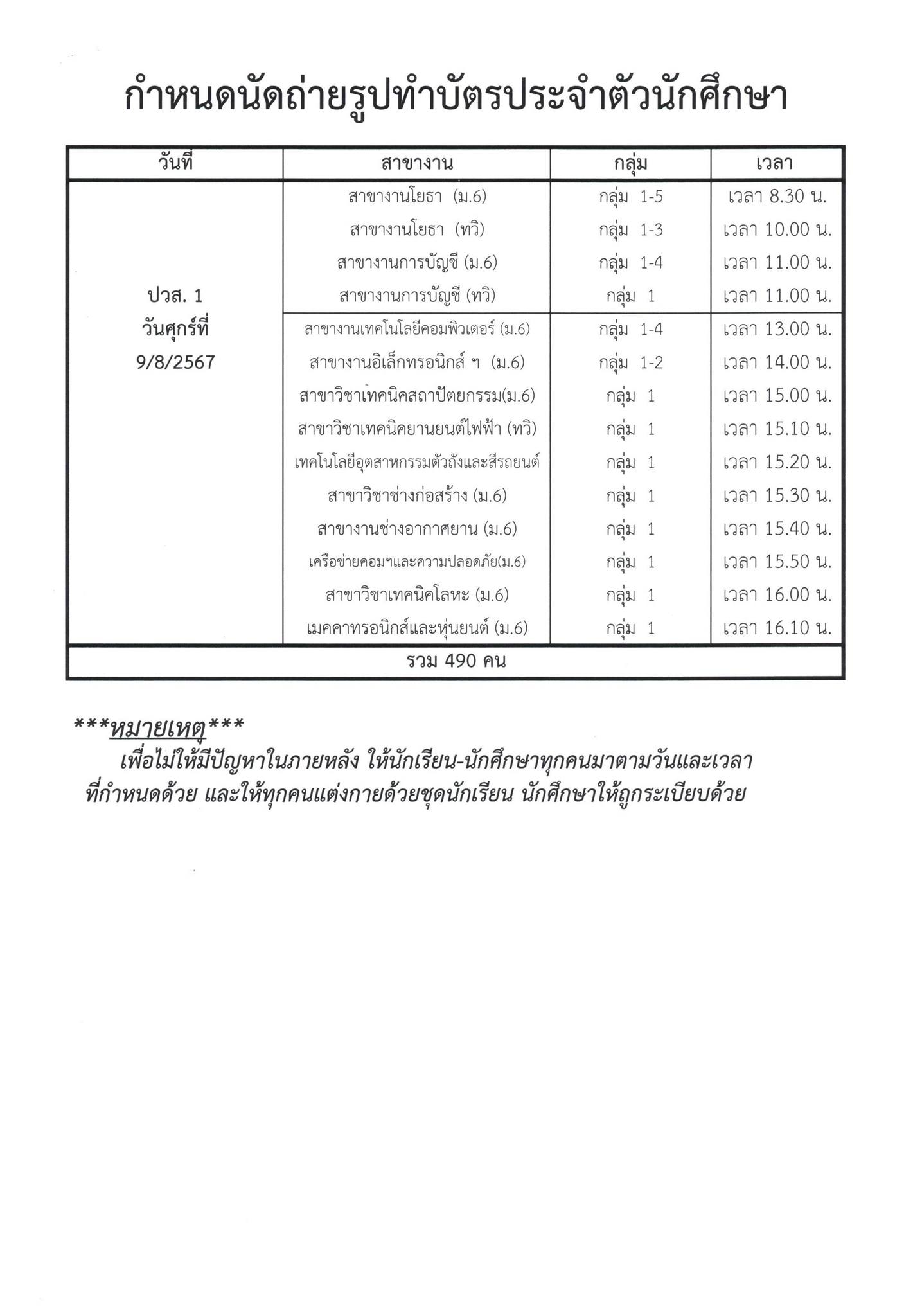 ประกาศจากงานแนะแนวรายชื่อนักเรียนระดับชั้น ปวช.1 เข้ารับการปฐมนิเทศนักเรียนนักศึกษาใหม่ ปีการศึกษา 2565