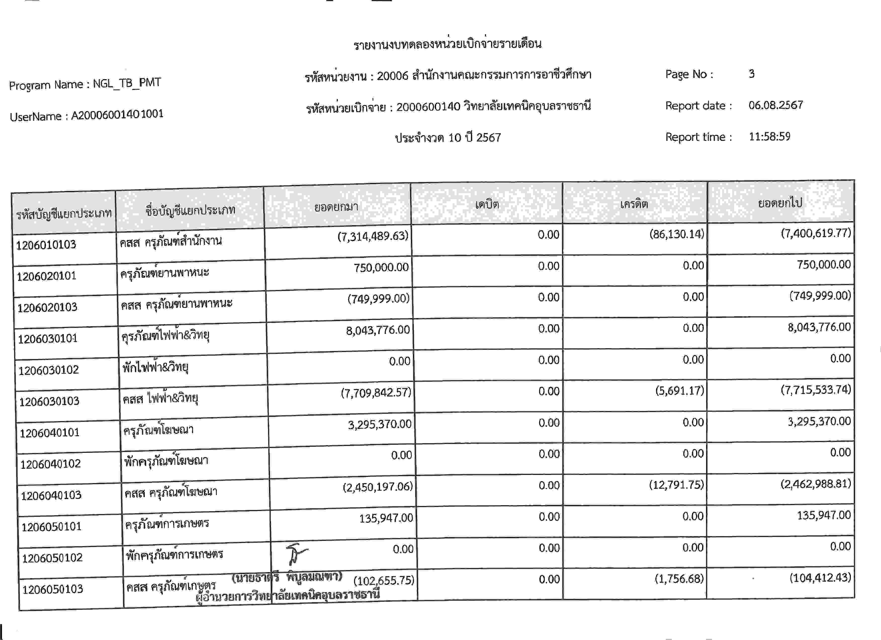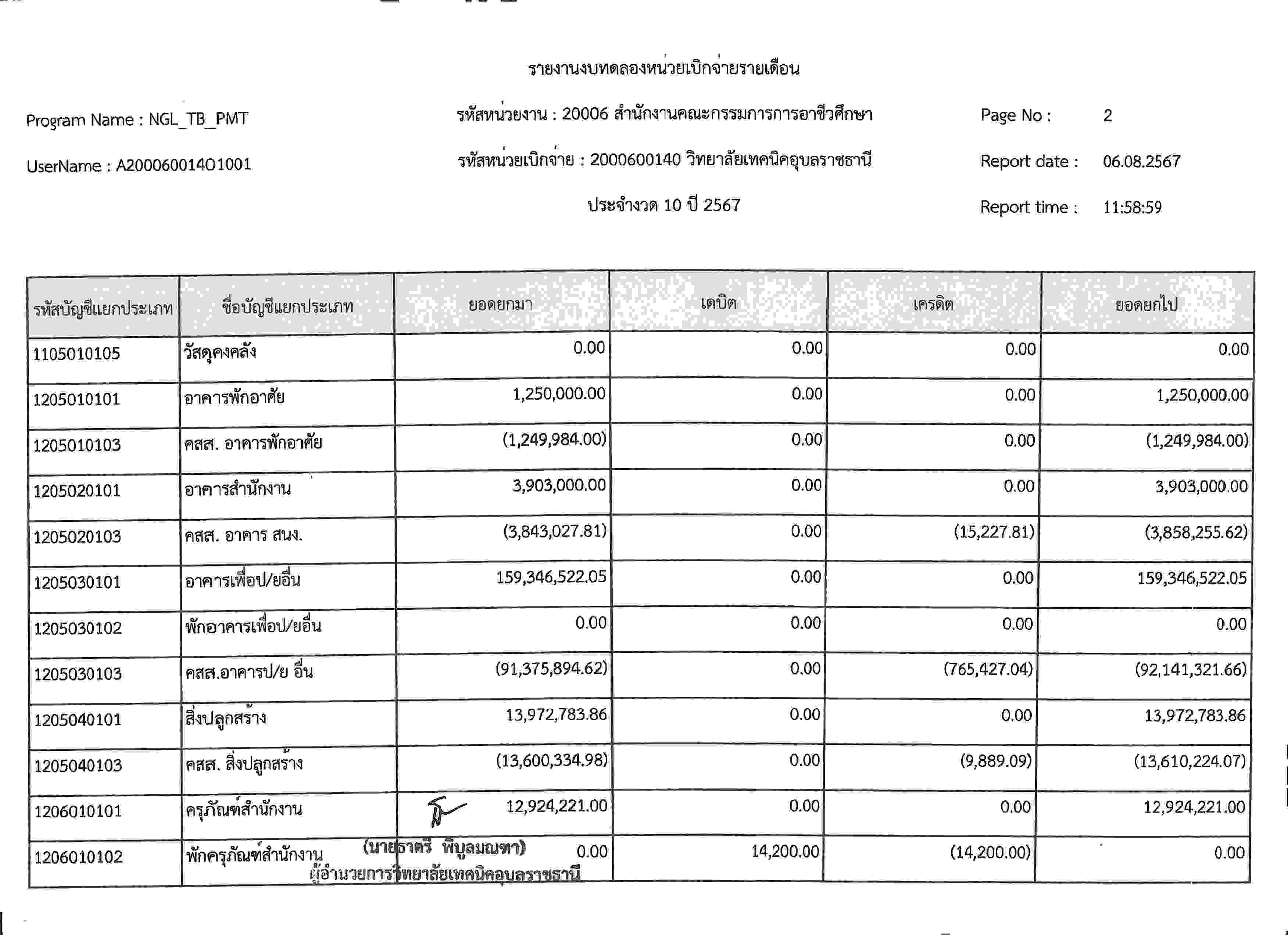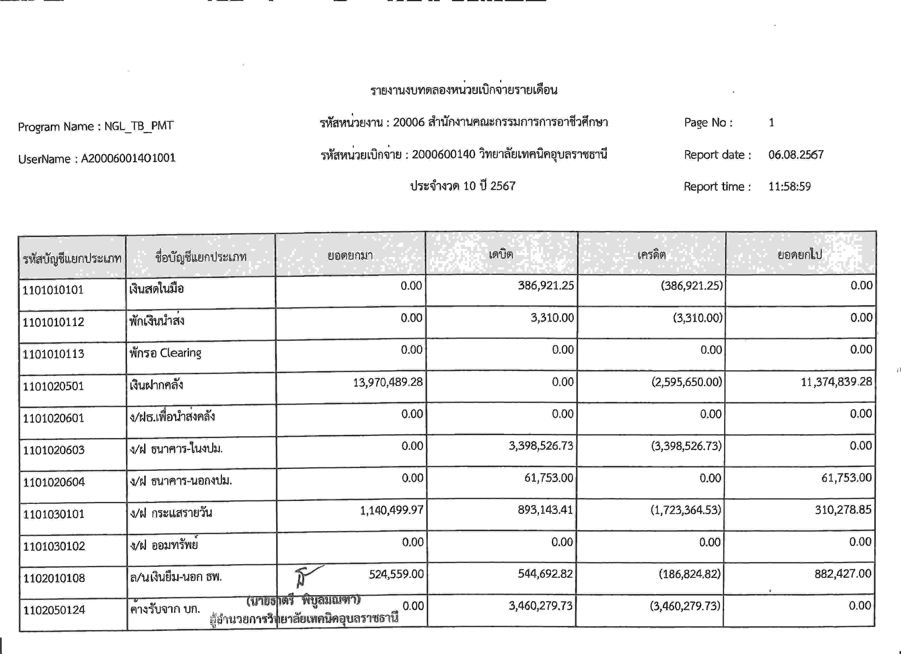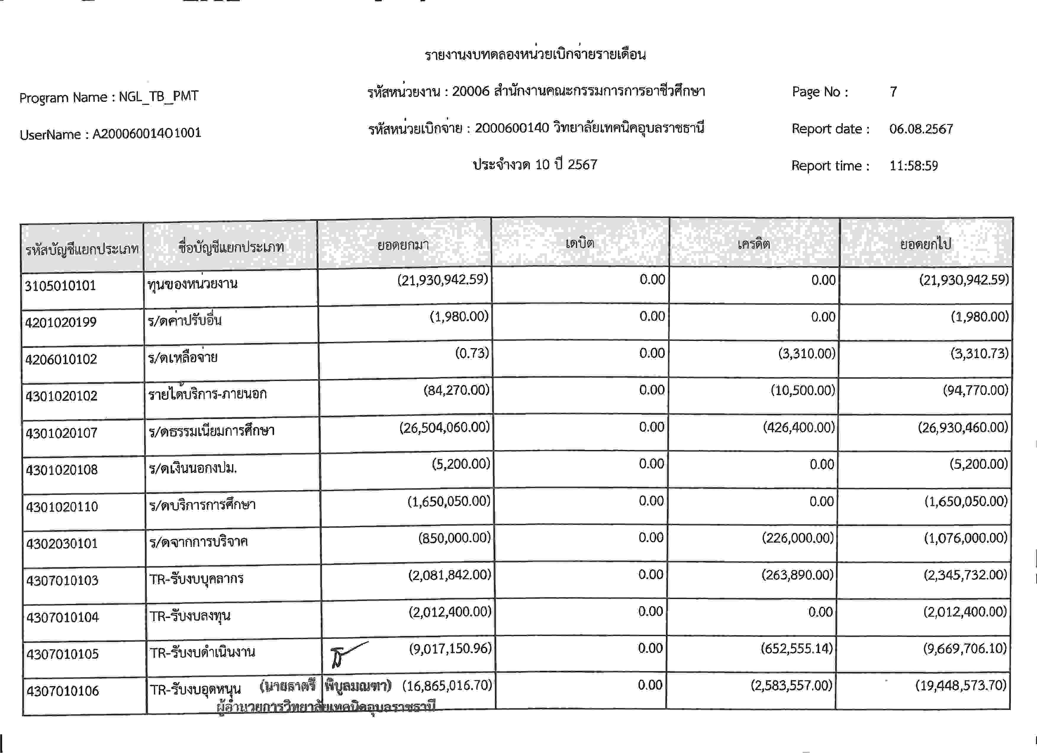รายงานงบทดลองประจำเดือนกรกฎาคม 2567