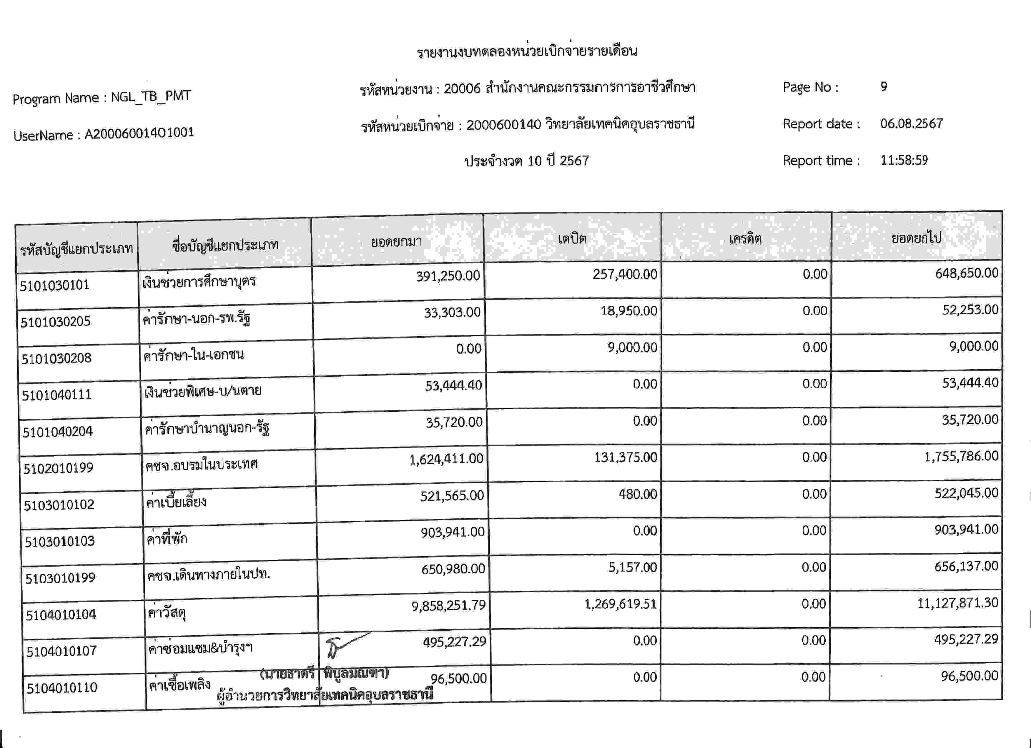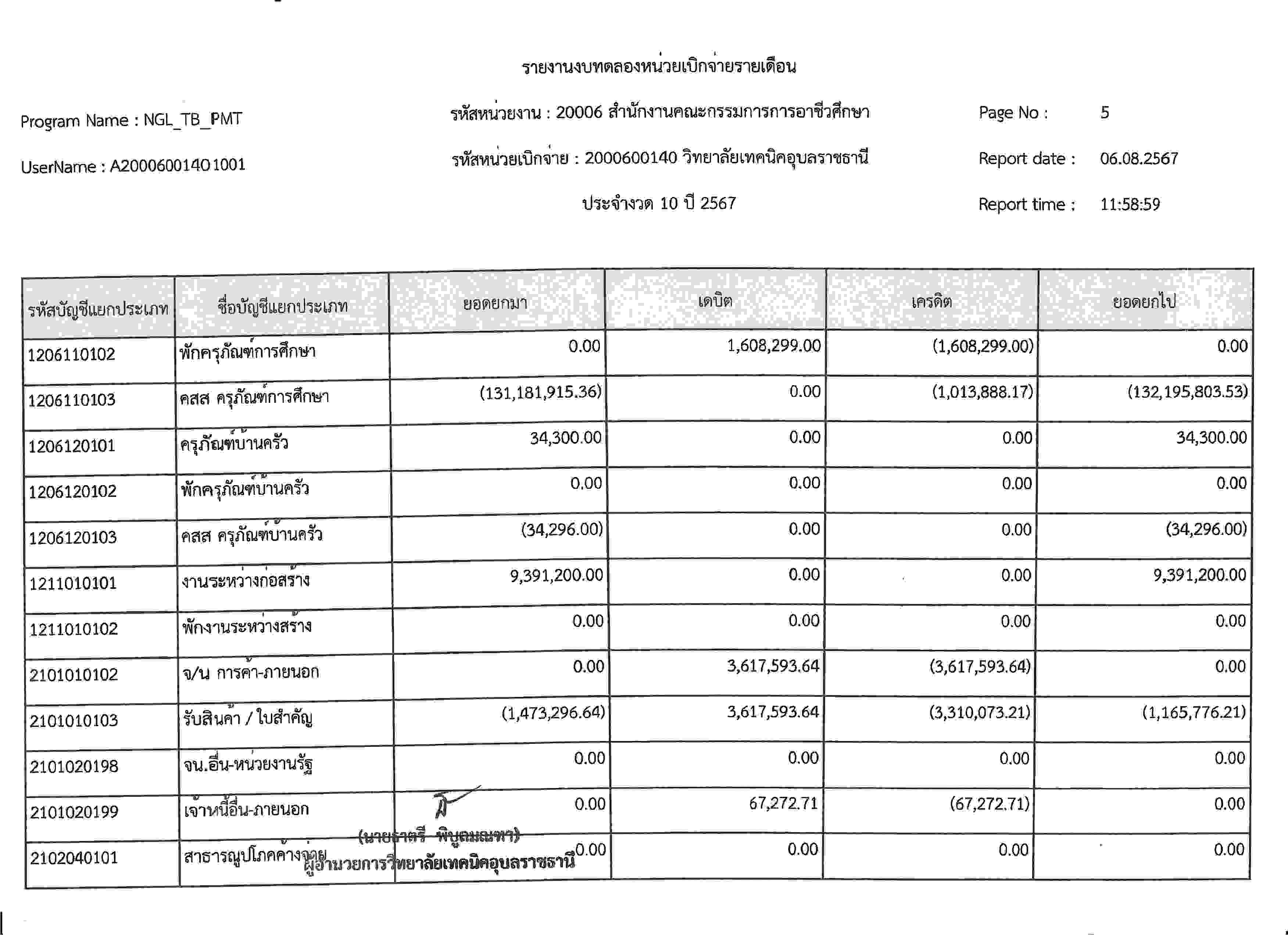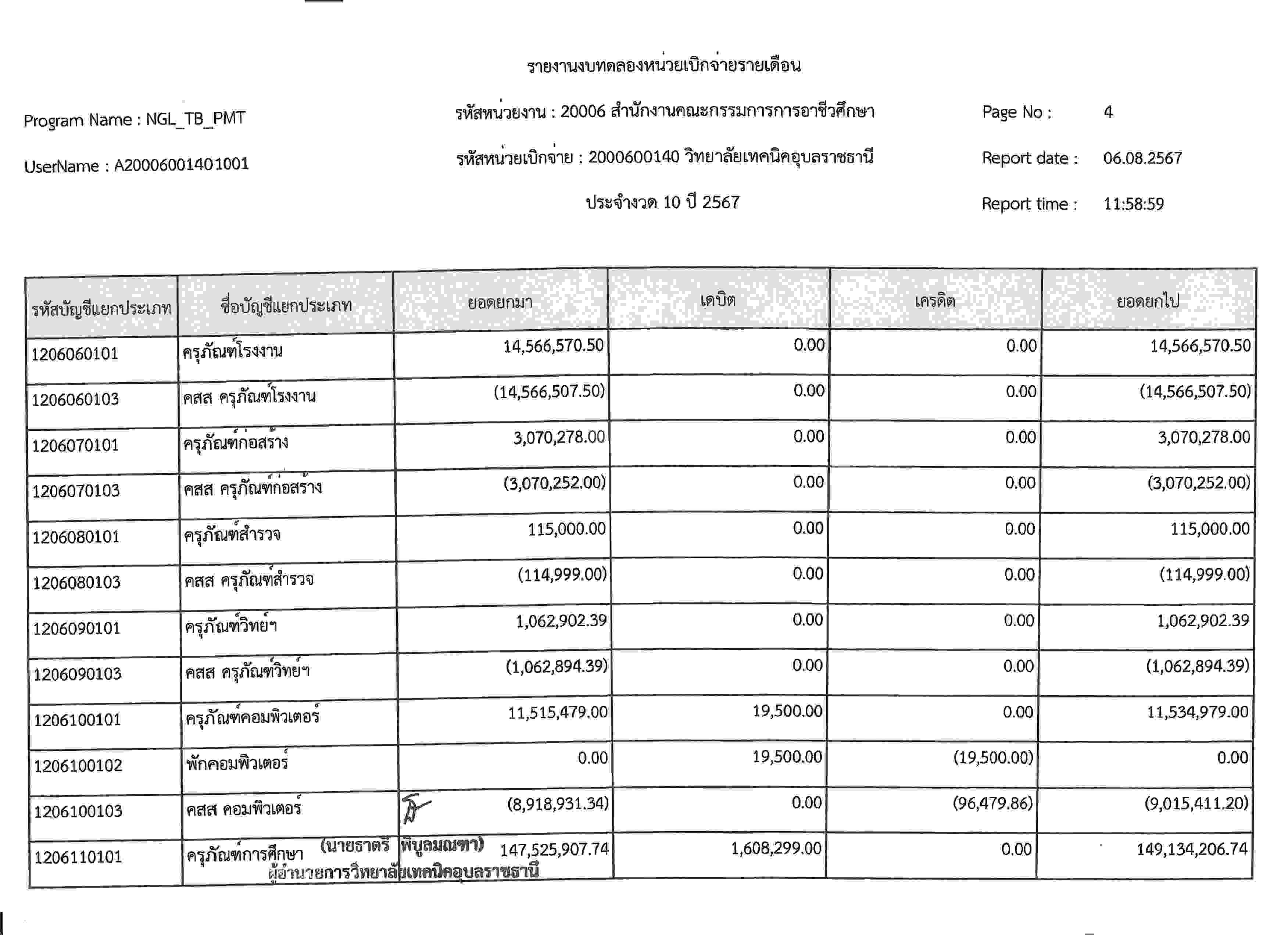 รายงานงบทดลองประจำเดือนกรกฎาคม 2567