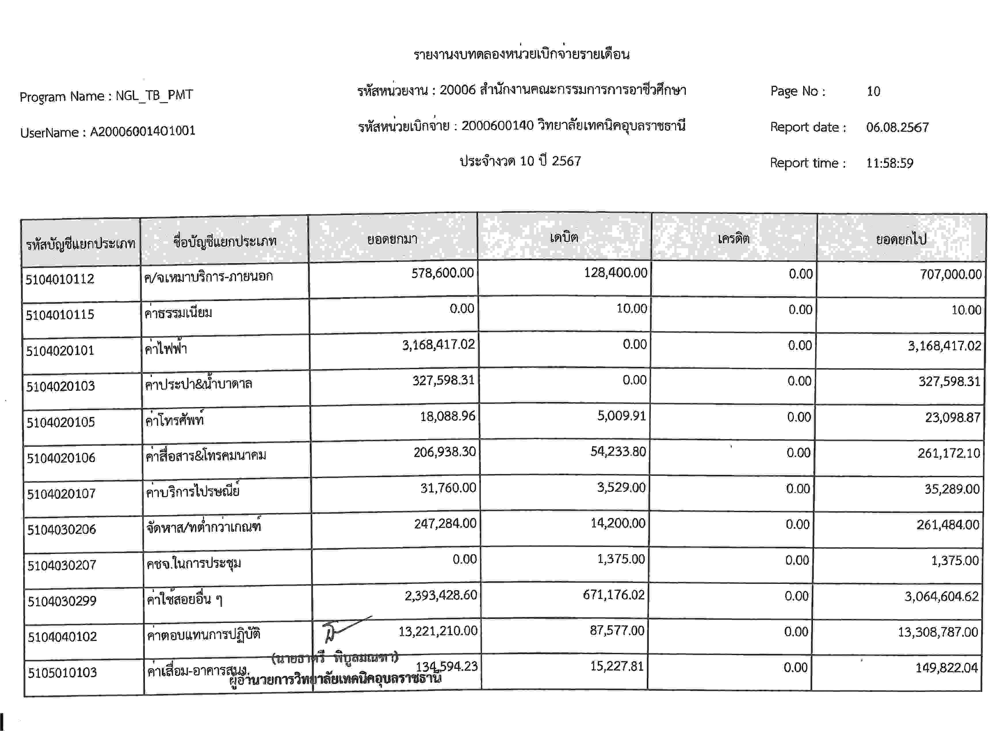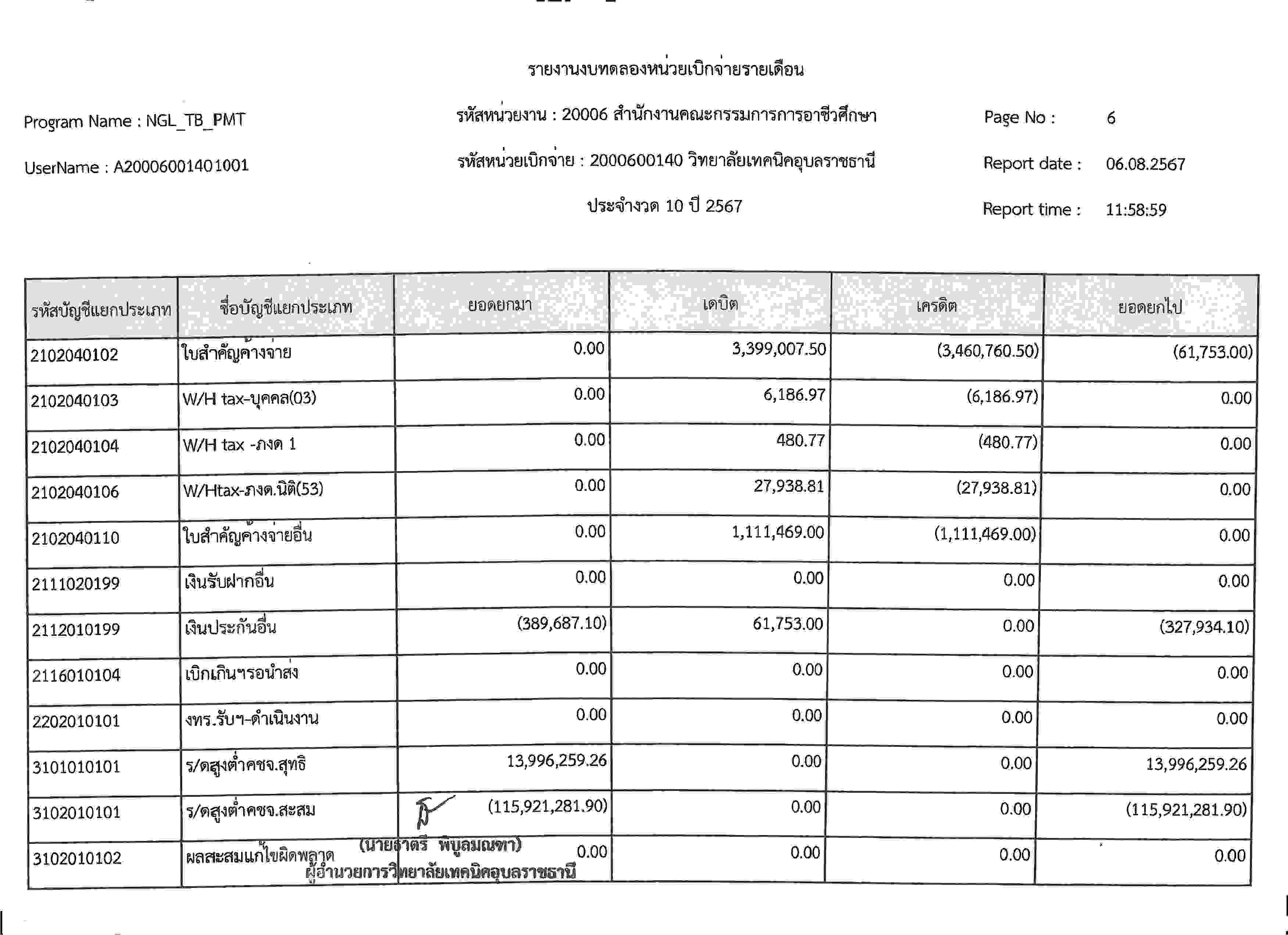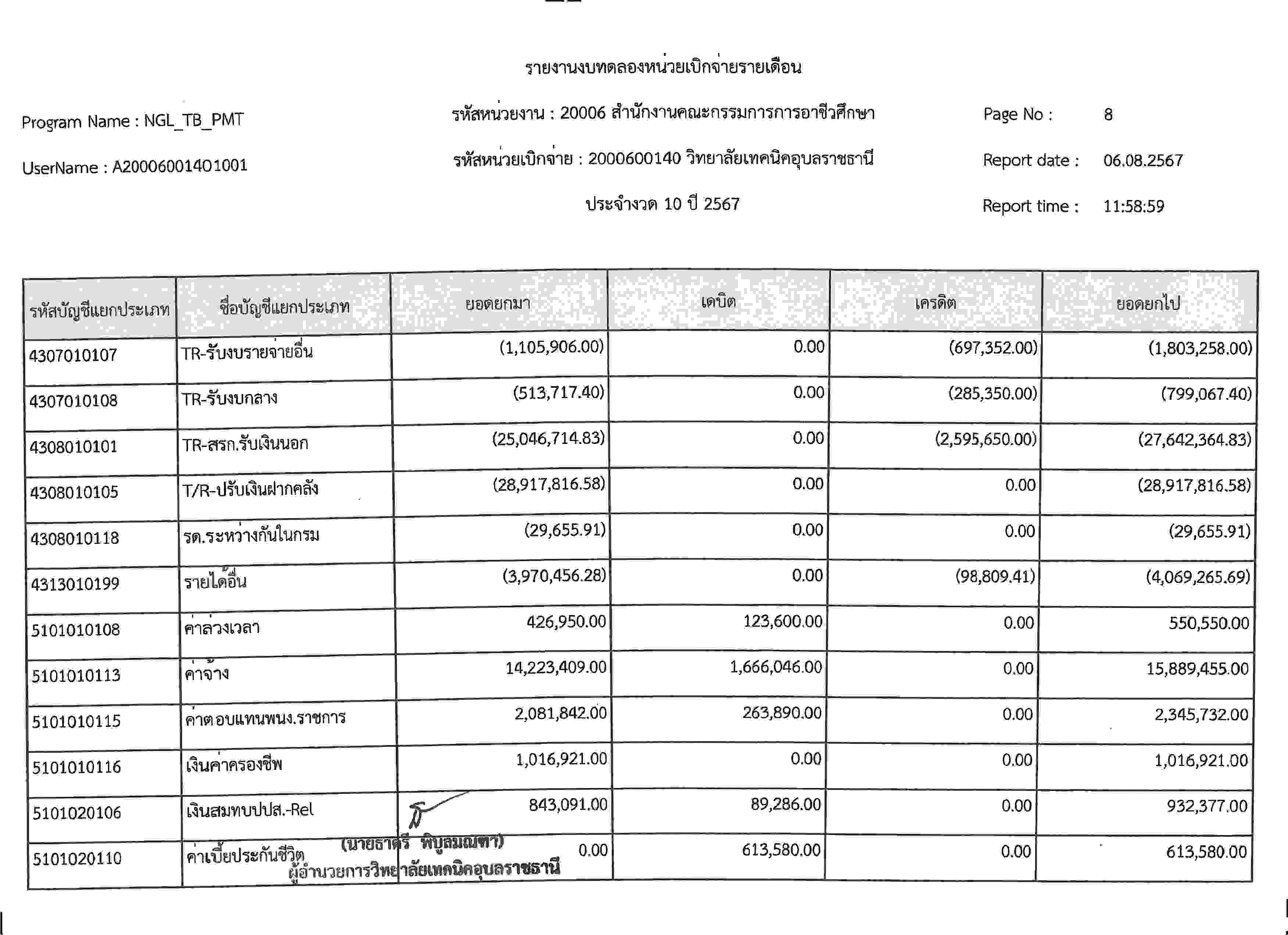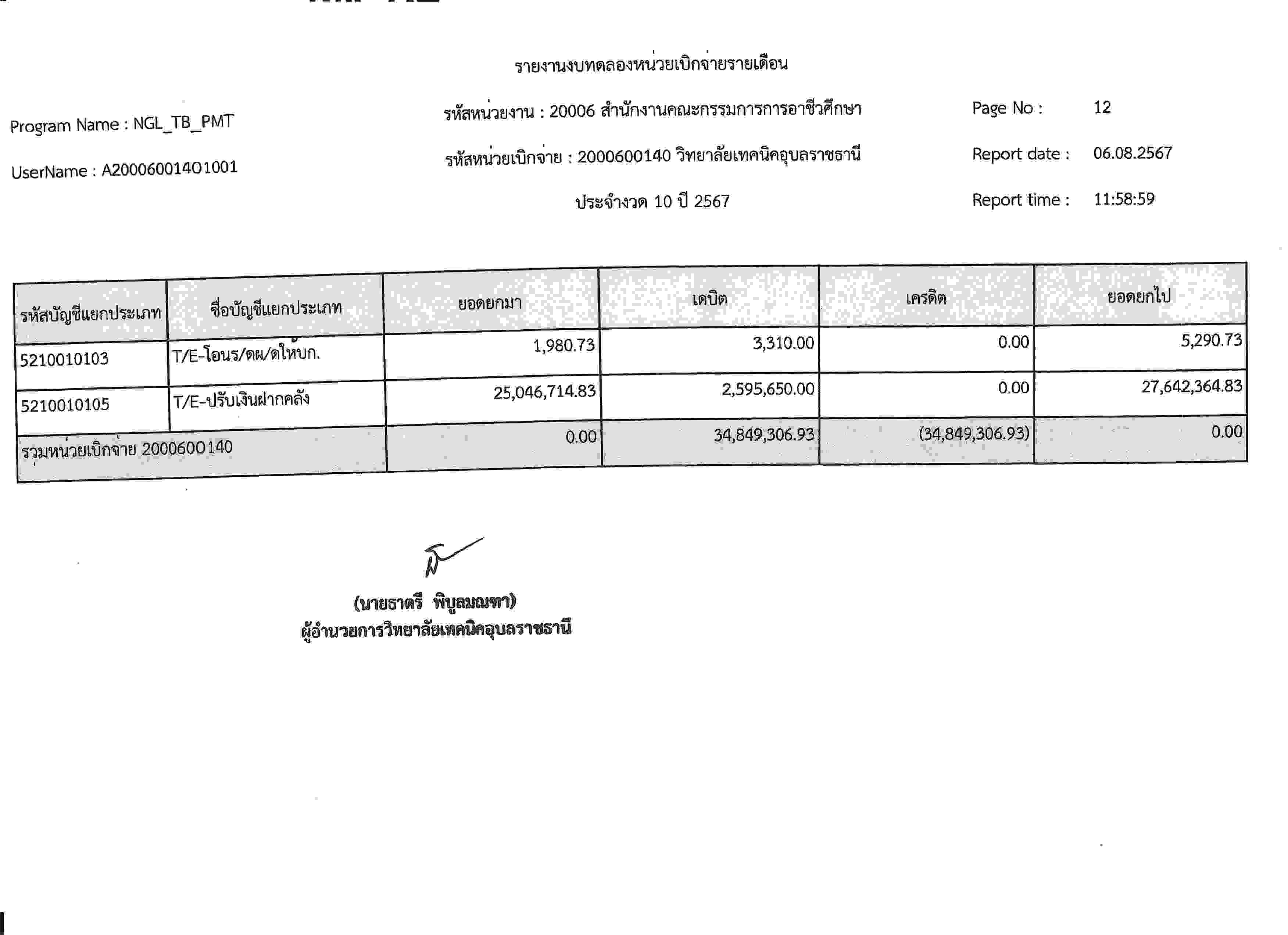 รายงานงบทดลองประจำเดือนกรกฎาคม 2567