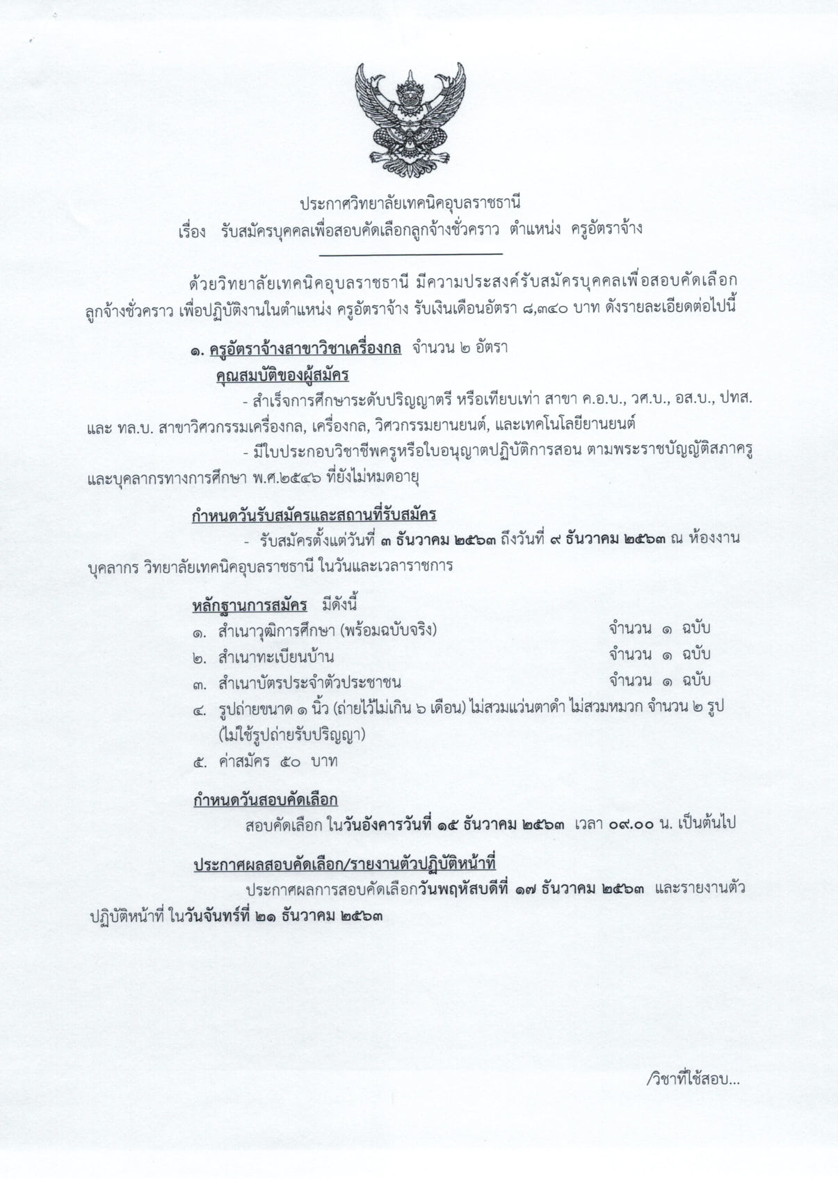 ประกาศ การเปิดการเรียนการสอนวิทยาลัยเทคนิคอุบลราชธานี ภาคเรียนที่ ๑ ปีการศึกษา ๒๕๖๕