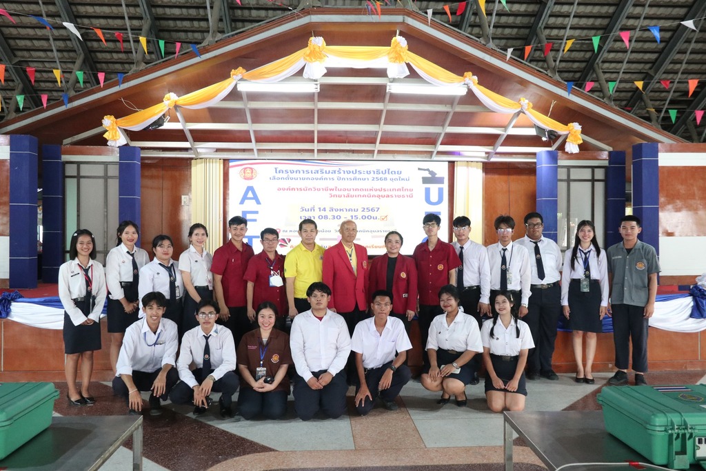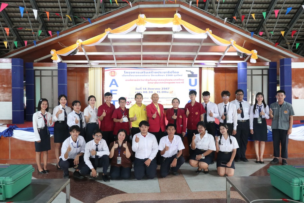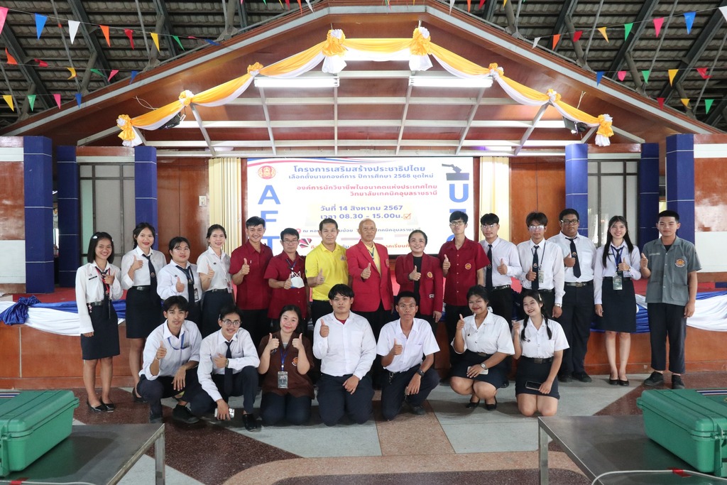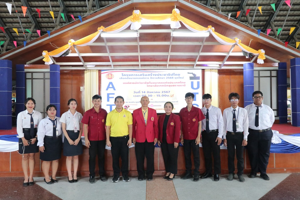 วันที่ ๑๔ สิงหาคม ๒๕๖๗ เวลา ๐๘.๓๐ น. นายธาตรี พิบูลมณฑาผู้อำนวยการวิทยาลัยเทคนิคอุบลราชธานี มอบหมายให้นายไวพจน์ ศรีธัญ รองผู้อำนวยการฝ่ายพัฒนากิจการนักเรียนนักศึกษา เป็นประธานในพิธีเปิดโครงการเสริมสร้างประชาธิปไตย เลือกตั้งนายก อวท. ปีการศึกษา ๒๕๖๘ ชุดใหม่ ณ หอประชุมโดมน้อย วิทยาลัยเทคนิคอุบลราชธานี โดยมี นางสาวสายฝน สาระผล รองผู้อำนวยการฝ่ายบริหารทรัพยากร และคณะครูที่ปรึกษา อวท. นำนักเรียน นักศึกษา เข้าร่วมกิจกรรมอย่างพร้อมเพรียง ทั้งนี้เพื่อเลือกตั้งนายกองค์การนักวิชาชีพในอนาคตแห่งประเทศไทย หน่วยวิทยาลัยเทคนิคอุบลราชธานี ประจำปี ๒๕๖๘ เพื่อให้นักเรียน นักศึกษา ได้มาใช้สิทธิของตนเอง และเพื่อแสดงถึงการมีความเป็นประชาธิปไตยของวิทยาลัยเทคนิคอุบลราชธานี