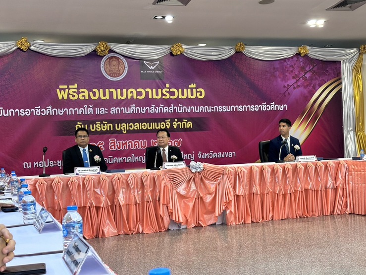 พิธีลงนามความร่วมมือระหว่าง สถาบันการอาชีวศึกษา สถานศึกษาในสังกัดสำนักงานคณะกรรมการการอาชีวศึกษา กับ บริษัท บลูเวลเอนเนอจี จำกัด