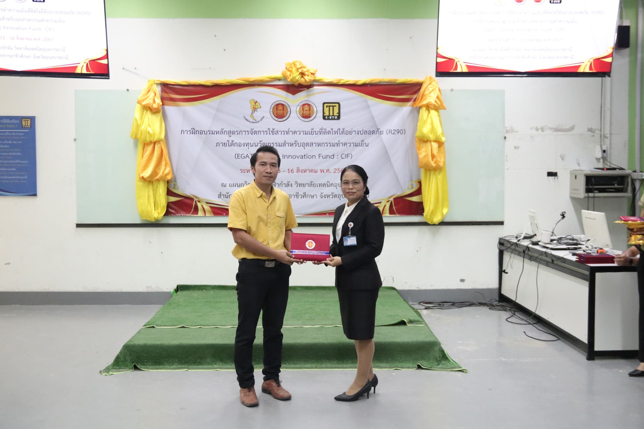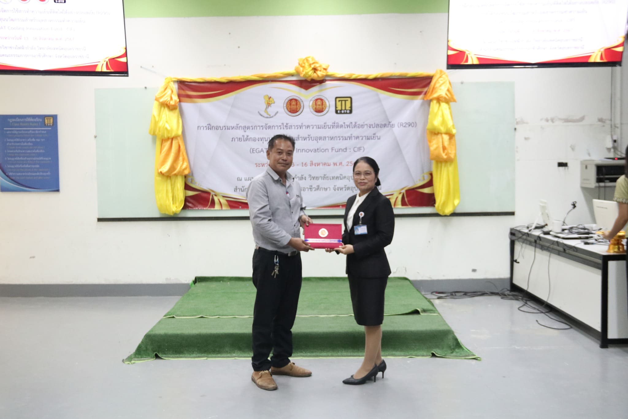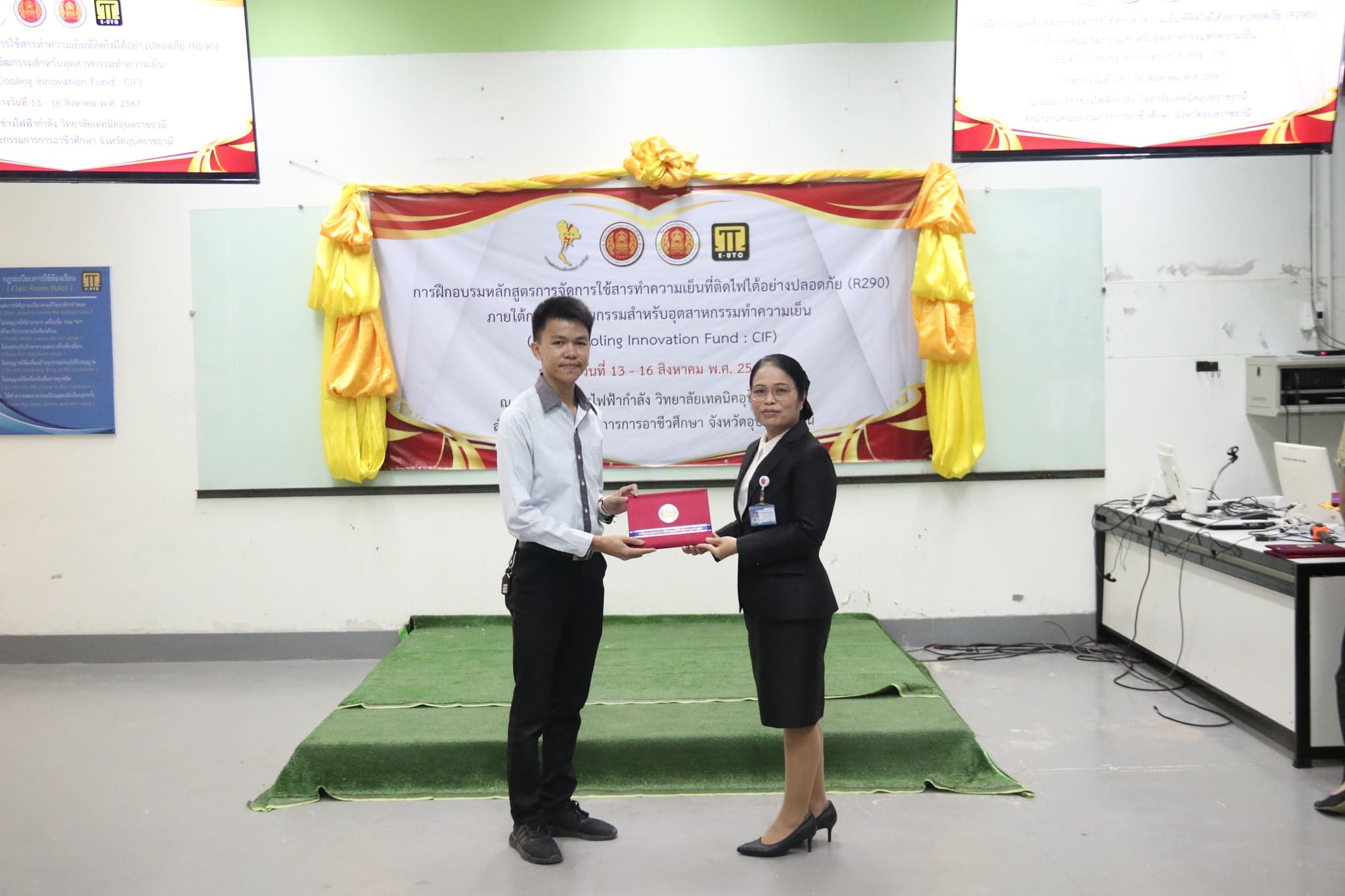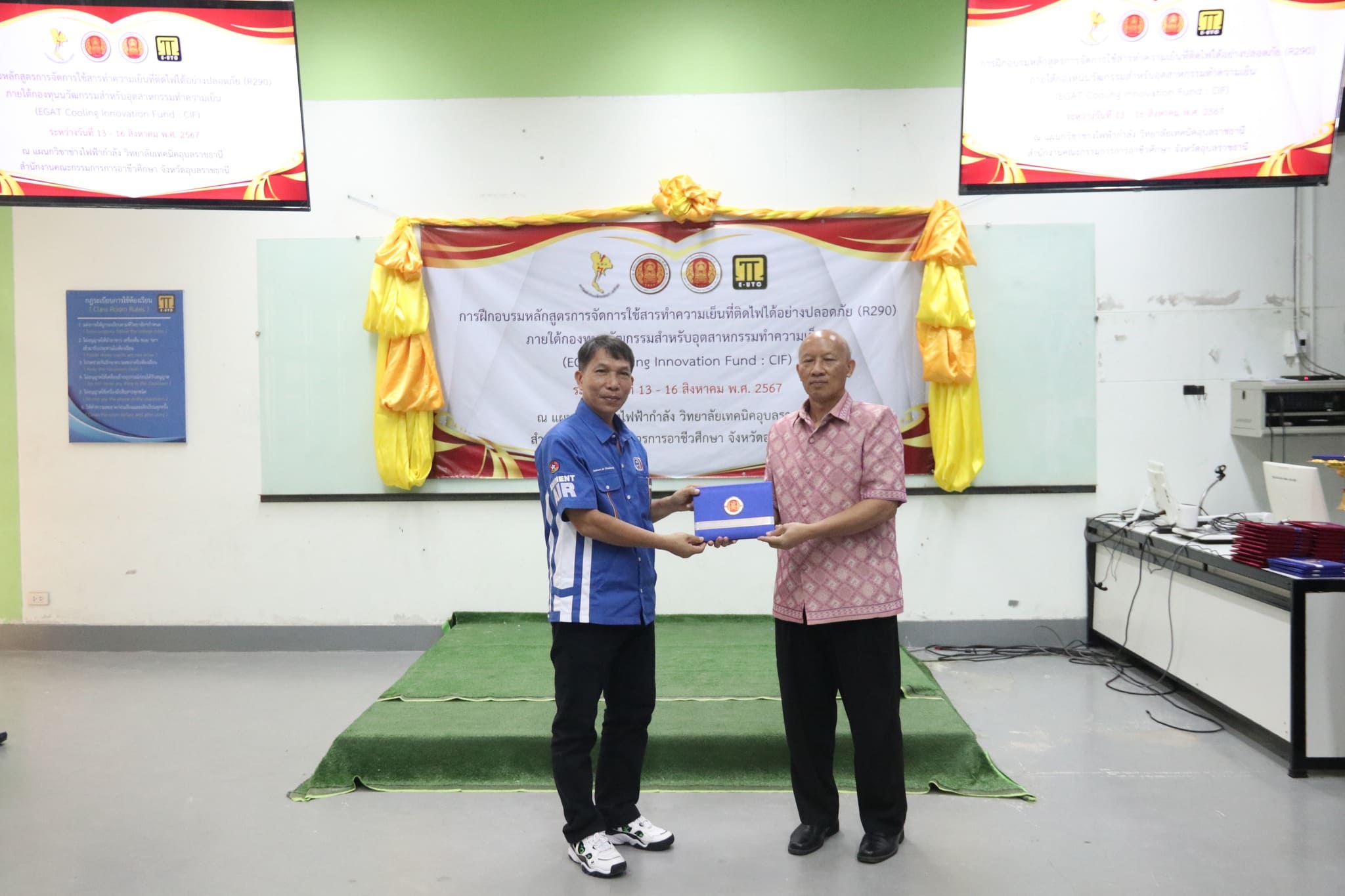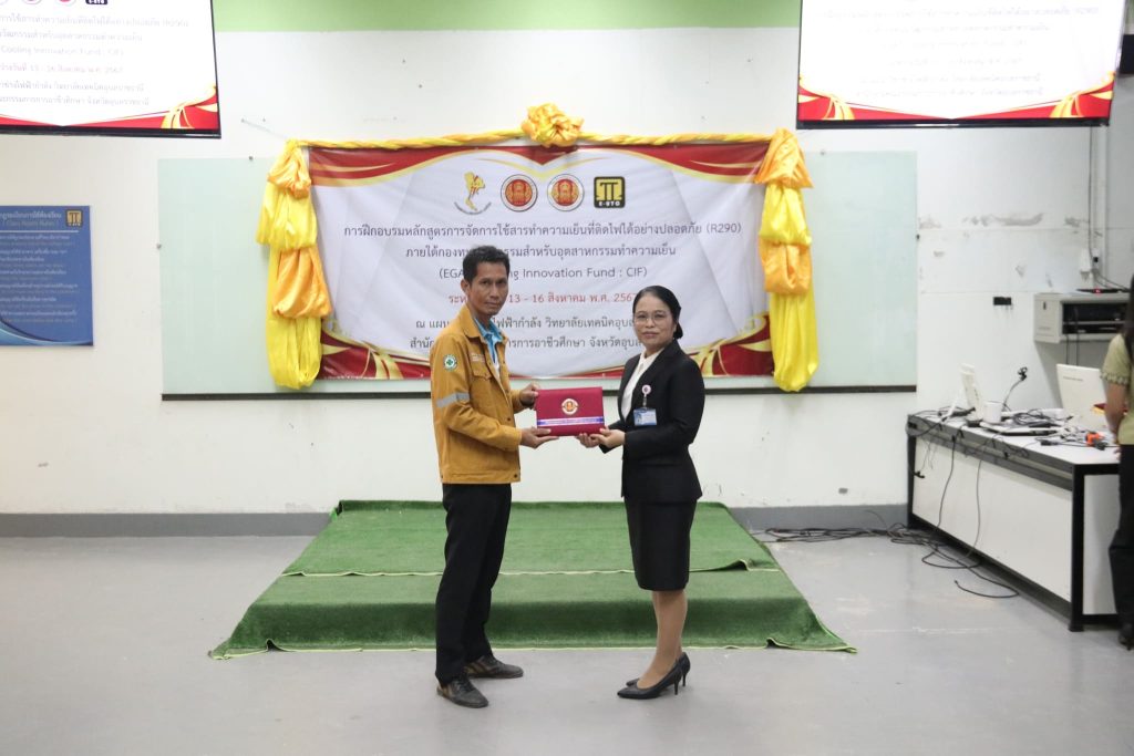 จัดพิธีปิดเเละมอบเกียรติบัตรโครงการฝึกอบรมหลักสูตรการใช้สารทำความเย็นที่ติดไฟได้อย่างปลอดภัย ภายใต้กองทุนวัตกรรมสำหรับอุตสาหกรรมทำความเย็น
