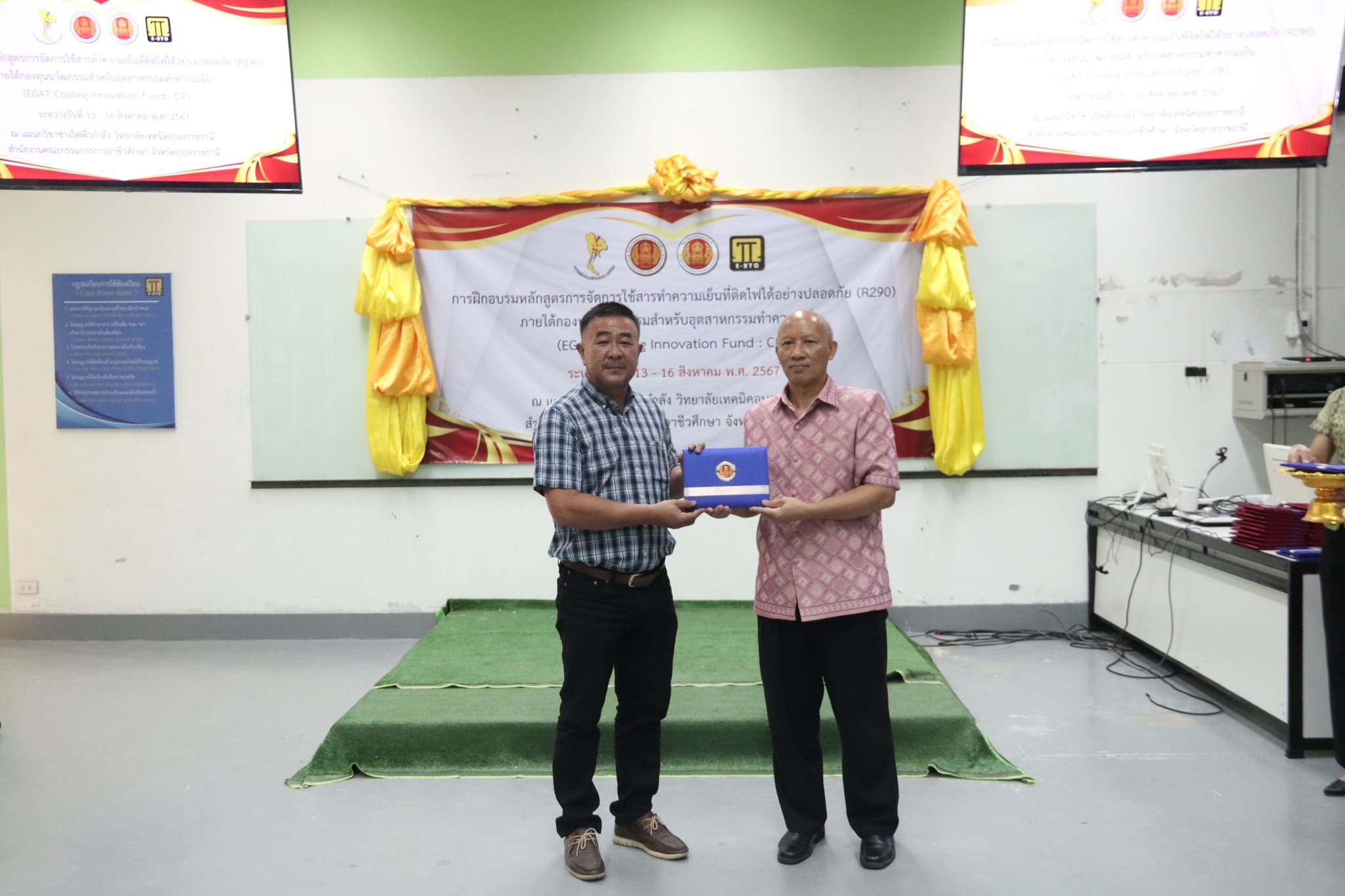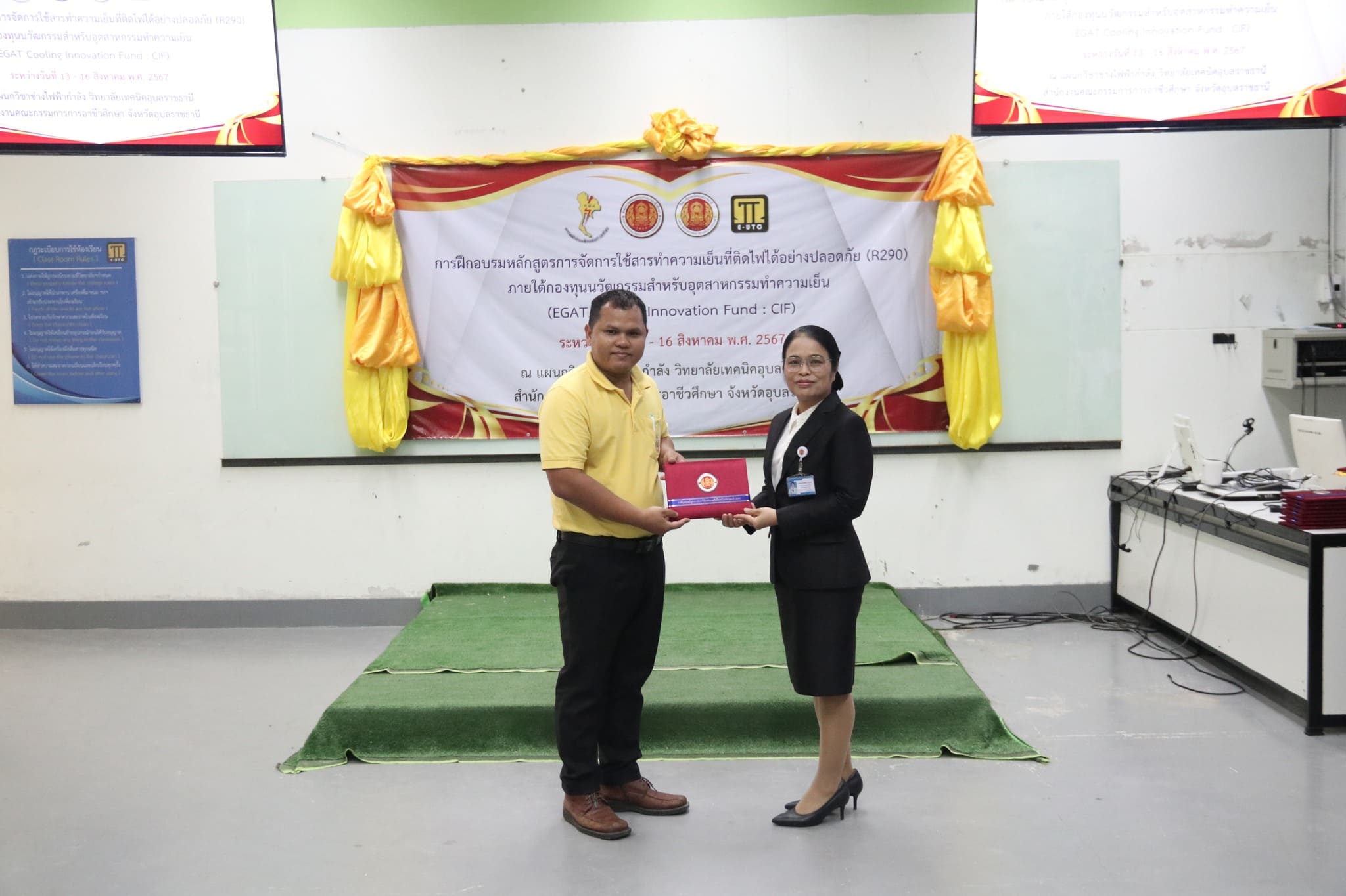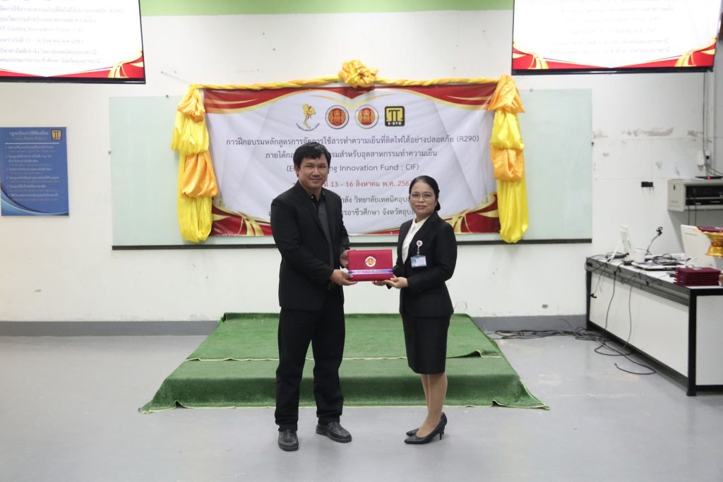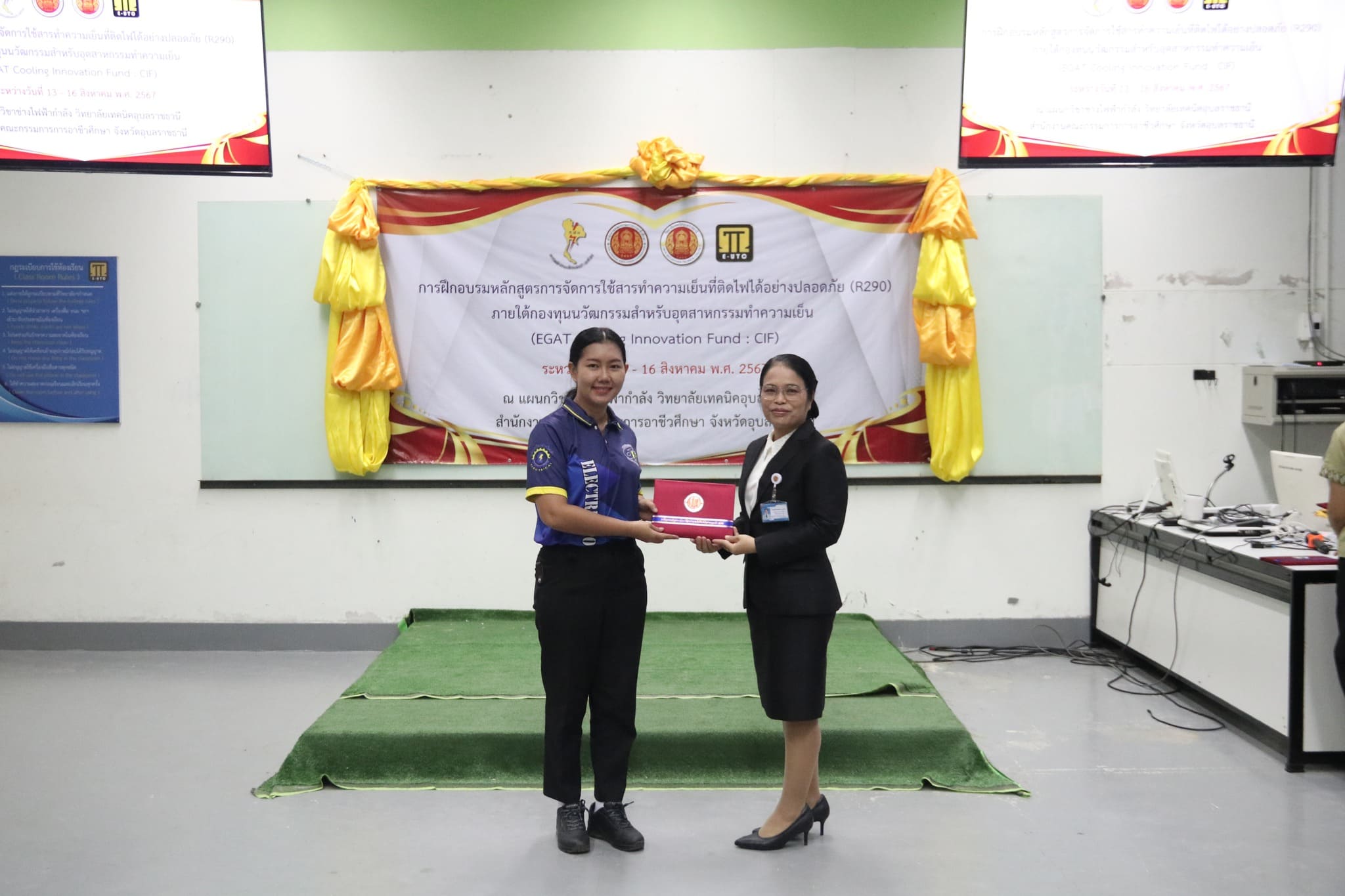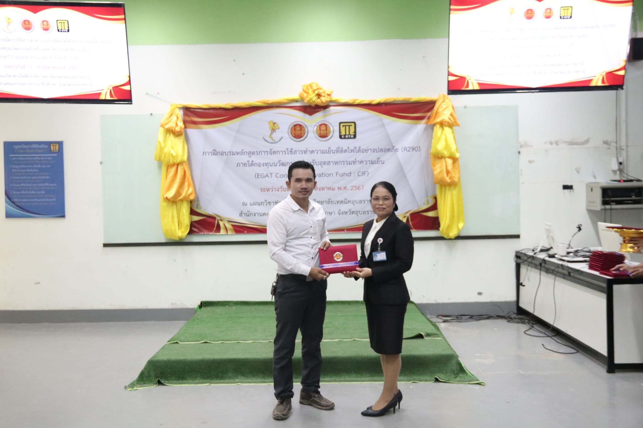 จัดพิธีปิดเเละมอบเกียรติบัตรโครงการฝึกอบรมหลักสูตรการใช้สารทำความเย็นที่ติดไฟได้อย่างปลอดภัย ภายใต้กองทุนวัตกรรมสำหรับอุตสาหกรรมทำความเย็น