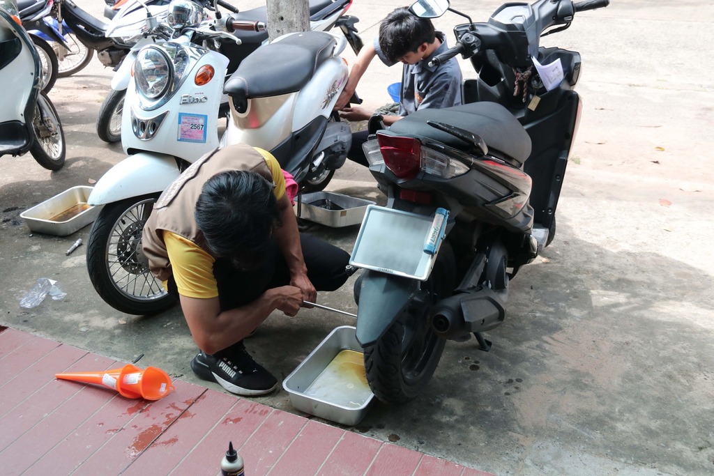 จัดโครงการอาาชีวะจติอาสา เฉลิมพระเกียรติพระบาทสมเด็จพระเจ้าอยู่หัว บริหารเปลี่ยนถ่ายน้ำมันเครื่องรถจักรยายนต์ เนื่องในโอกาสพระราชพิธีมหามงคล เฉลิมพระชนมพรรษา 6 รอบ