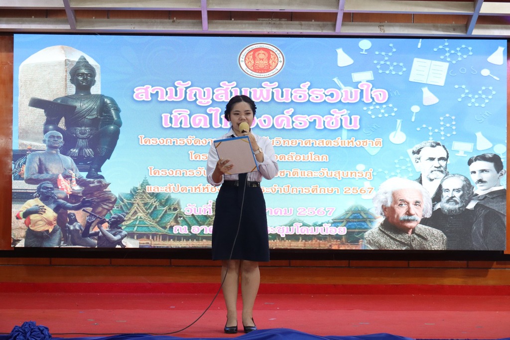 มอบหมายให้ นายไวพจน์ ศรีธัญ รองผู้อำนวยการฝ่ายพัฒนากิจการนักเรียนนักศึกษา เป็นประธานในพิธีเปิดโครงการสัปดาห์วันวิทยาศาสตร์แห่งชาติ โครงการวันสิ่งแวดล้อมโลก โครงการวันภาษาไทยแห่งชาติ