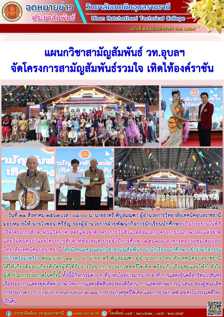 แผนกวิชาสามัญสัมพันธ์ วท.อุบลฯ จัดโครงการสามัญสัมพันธ์รวมใจ เทิดไท้วงค์ราชัน