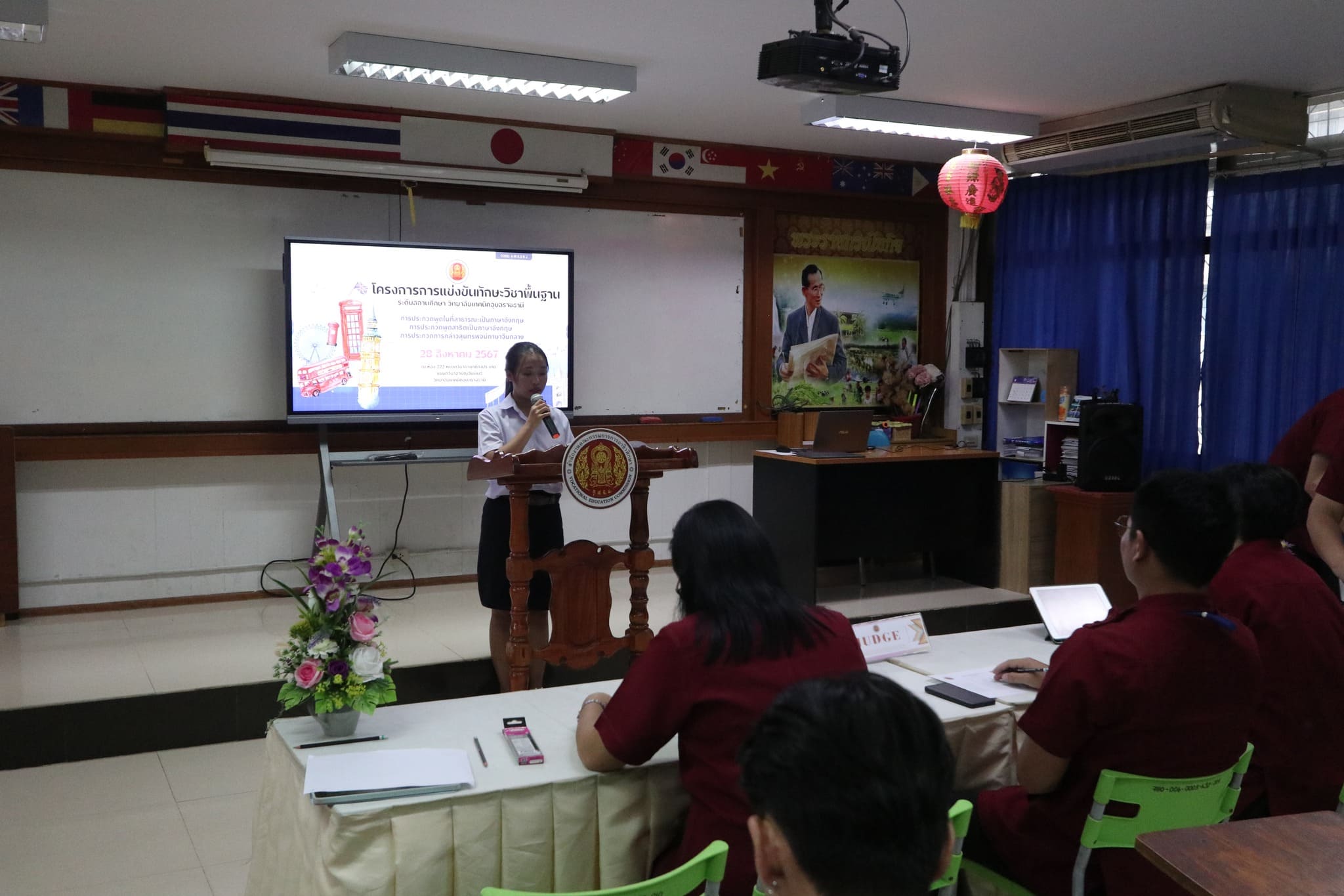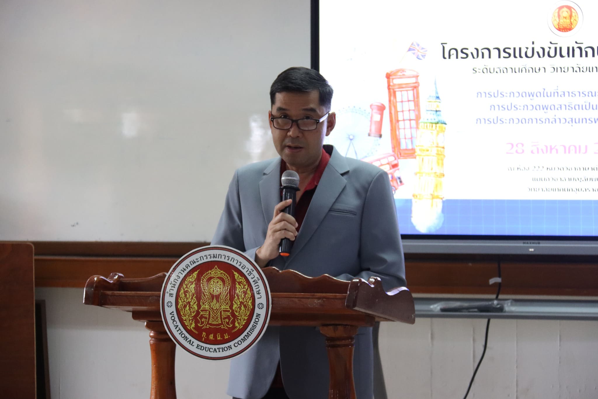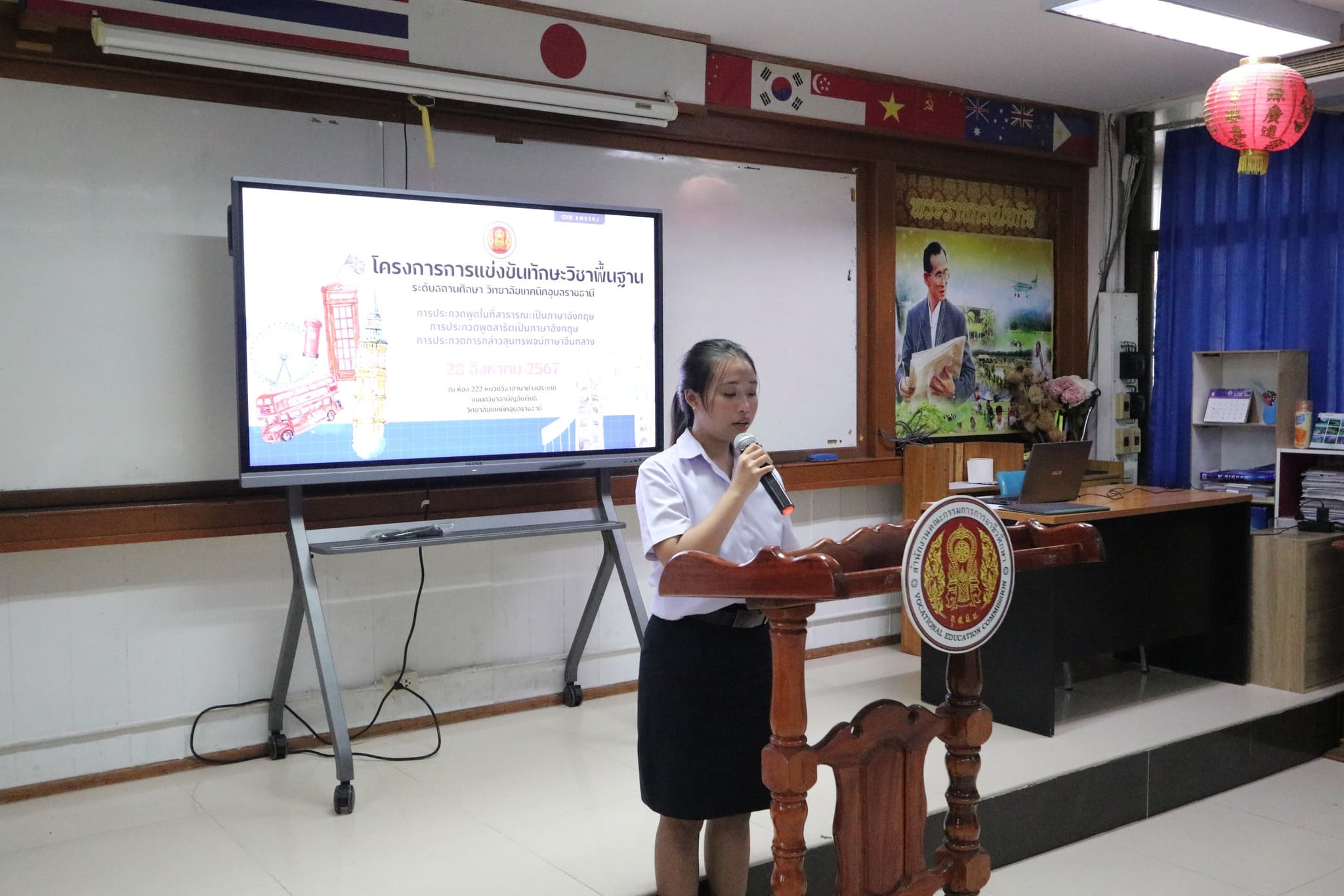 วันที่ ๒๘ สิงหาคม ๒๕๖๗ เวลา ๑๓.๓๐ น. นายธาตรี พิบูลมณฑา ผู้อำนวยการวิทยาลัยเทคนิคอุบลราชธานีมอบหมายให้ นายอิทธิวัฒน์ ไทยแท้หัวหน้าแผนกวิชาสามัญสัมพันธ์ เป็นประธานในพิธีเปิดโครงการแข่งขันทักษะวิชาพื้นฐาน ระดับสถานศึกษา วิทยาลัยเทคนิคอุบลราชธานี ประจำปีงบประมาณ พ.ศ. ๒๕๖๗ ณ ห้อง ๒๒๒ หมวดวิชาภาษาต่างประเทศ แผนกวิชาสามัญสัมพันธ์ ซึ่งได้มีการจัดการประกวด ๓ รายการ ได้แก่ ๑.การประกวดพูดในที่สาธารณะเป็นภาษาอังกฤษ ๒.การประกวดพูดสาธิตเป็นภาษาอังกฤษ และ๓.การประกวดกล่าวสุนทรพจน์ภาษาจีนกลาง โดยมี นางสาวปรานี ศรีมันตะ หัวหน้าหมวดวิชาภาษาต่างประเทศ แผนกวิชาสามัญสัมพันธ์ เป็นผู้กล่าวรายงาน ทั้งนี้มีคณะครู หมวดวิชาภาษาต่างประเทศ แผนกวิชาสามัญสัมพันธ์ นำนักเรียน นักศึกษา เข้าร่วมการประกวดอย่างพร้อมเพรียง