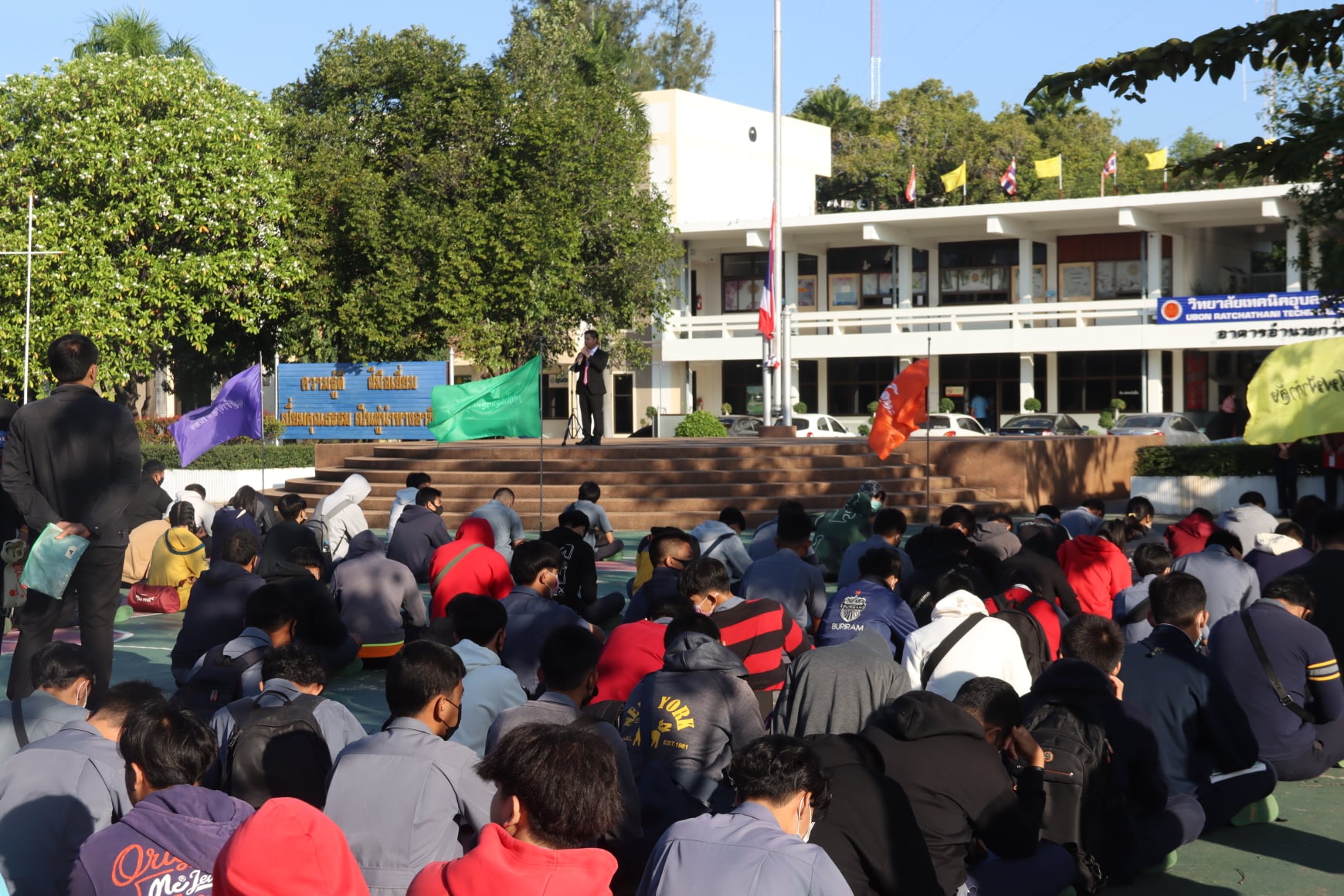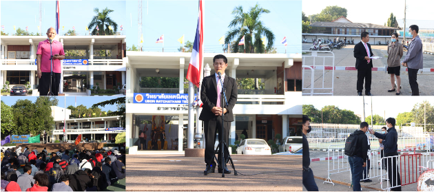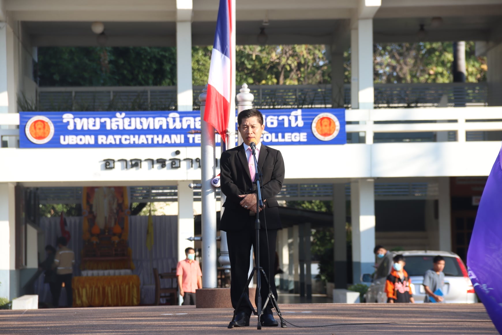 นายธาตรี พิบูลมณฑา ผู้อำนวยการวิทยาลัยเทคนิคอุบลราชธานี พร้อม นายไวพจน์ ศรีธัญ รองผู้อำนวยการฝ่ายพัฒนากิจการนักเรียนนักศึกษา ให้เกียรติขึ้นกล่าวให้โอวาทและพบปะคณะครู นักเรียน ที่เข้าร่วมกิจกรรมหน้าเสาธง โดยเช้าวันนี้เป็นนักเรียนระดับชั้น ปวช.๒ ทุกแผนกวิชา เพื่อชี้แจงกำหนดการเข้าร่วมกิจกรรม เข้าแถวหน้าเสาธง และการปฏิบัติตนของนักเรียน ในการเข้าร่วมกิจกรรมต่างๆ ภายในวิทยาลัยฯ ตลอดจนผู้อำนวยการ ธาตรี พิบูลมณฑา ได้ลงพื้นที่ตรวจเยี่ยม จุดคัดกรองก่อนเข้าสถานศึกษา มาตรการการป้องกันไวรัสโคโรนา ๒๐๑๙ ณ บริเวณหน้าประตูทางเข้าสถานศึกษา และบริเวณลานหน้าเสาธง วิทยาลัยเทคนิคอุบลราชธานี โดยมีคณะครู และนักเรียน เข้าร่วมกิจกรรมกว่า ๘๐๐ คน