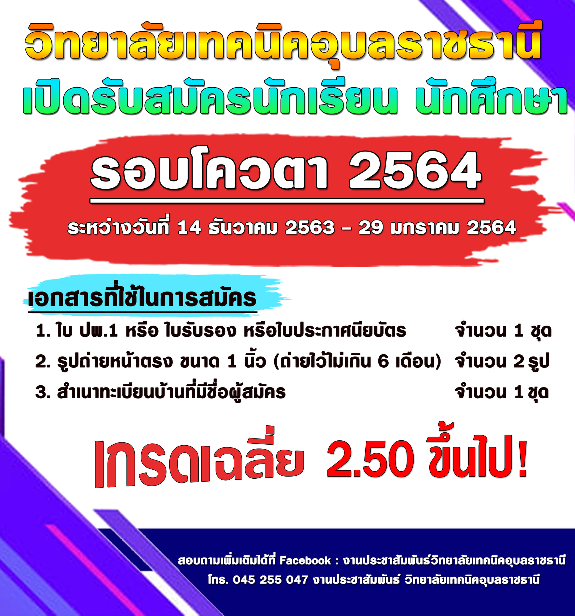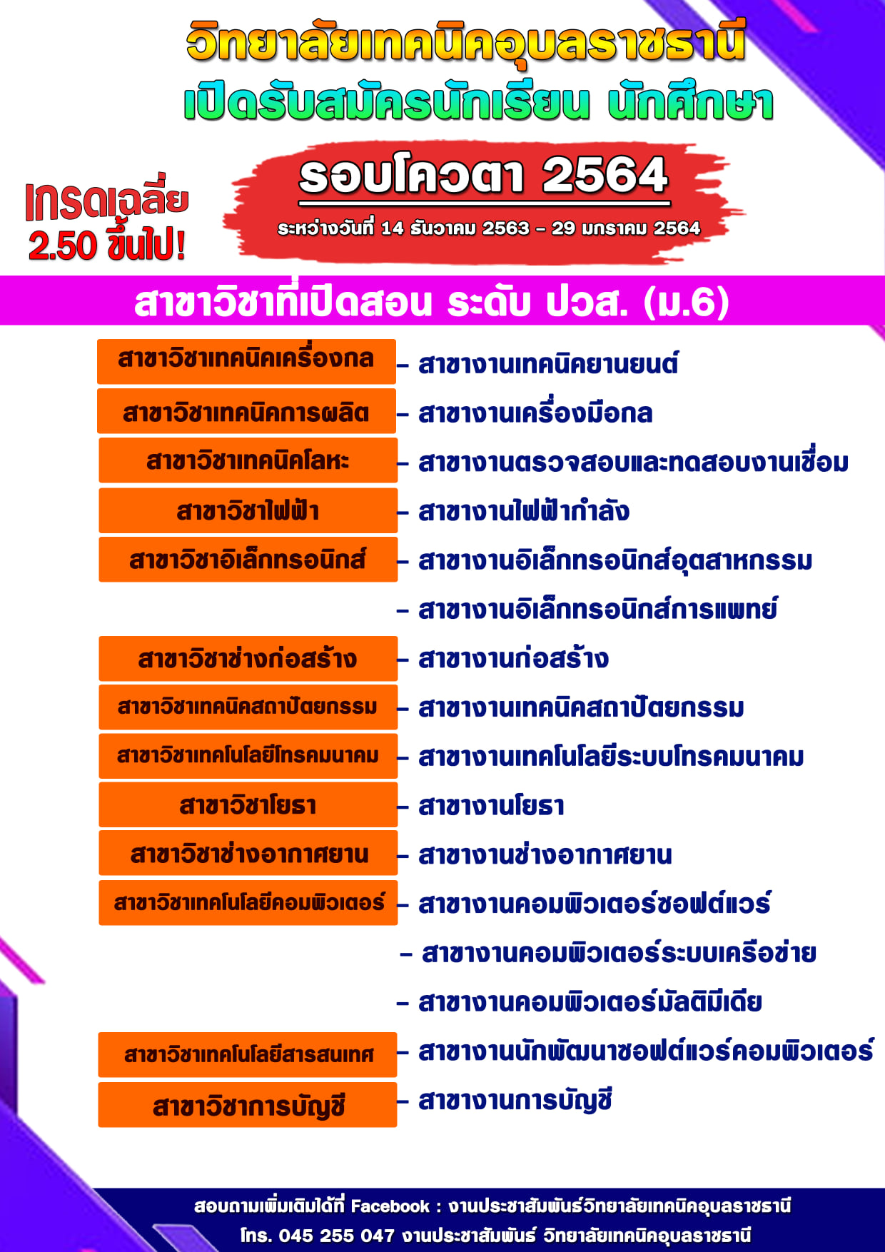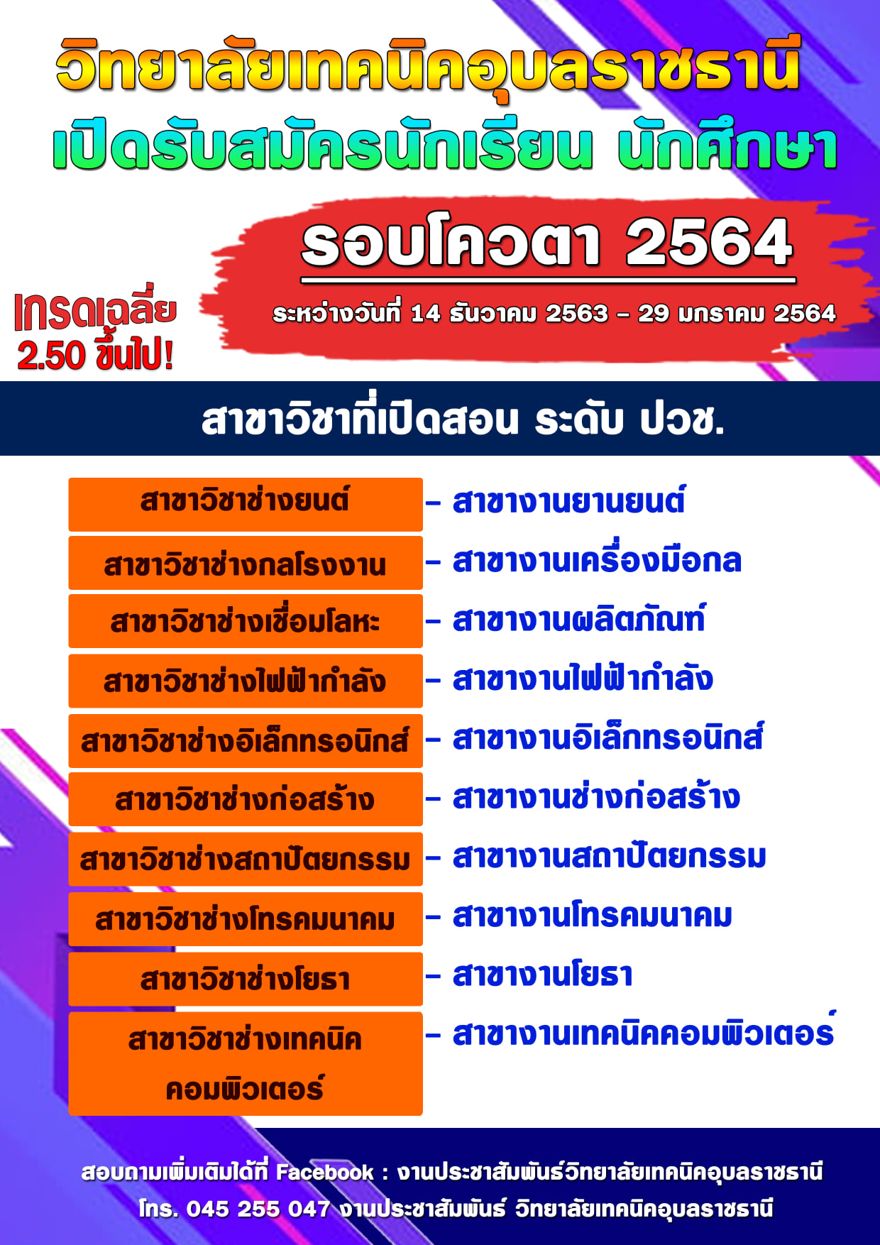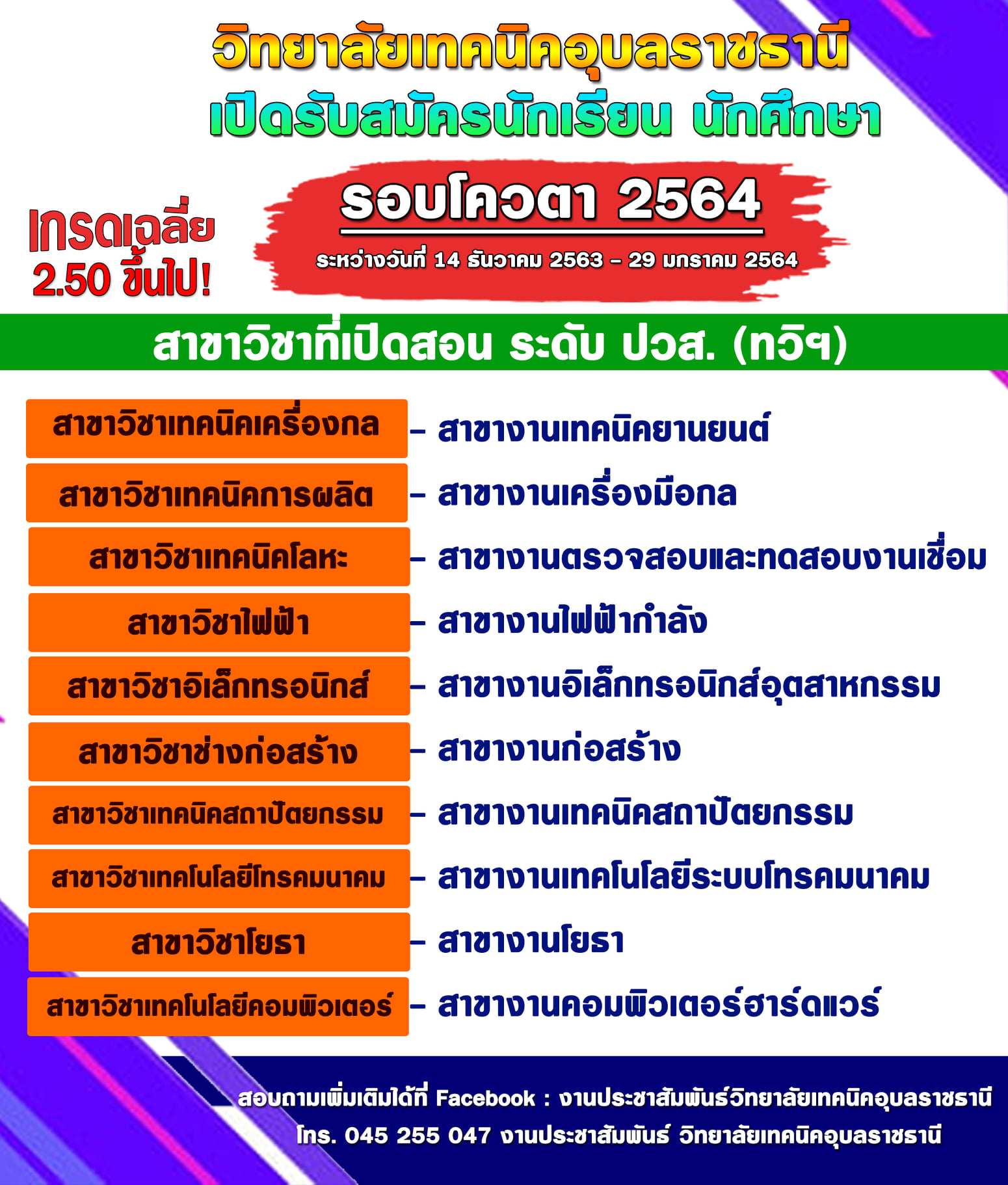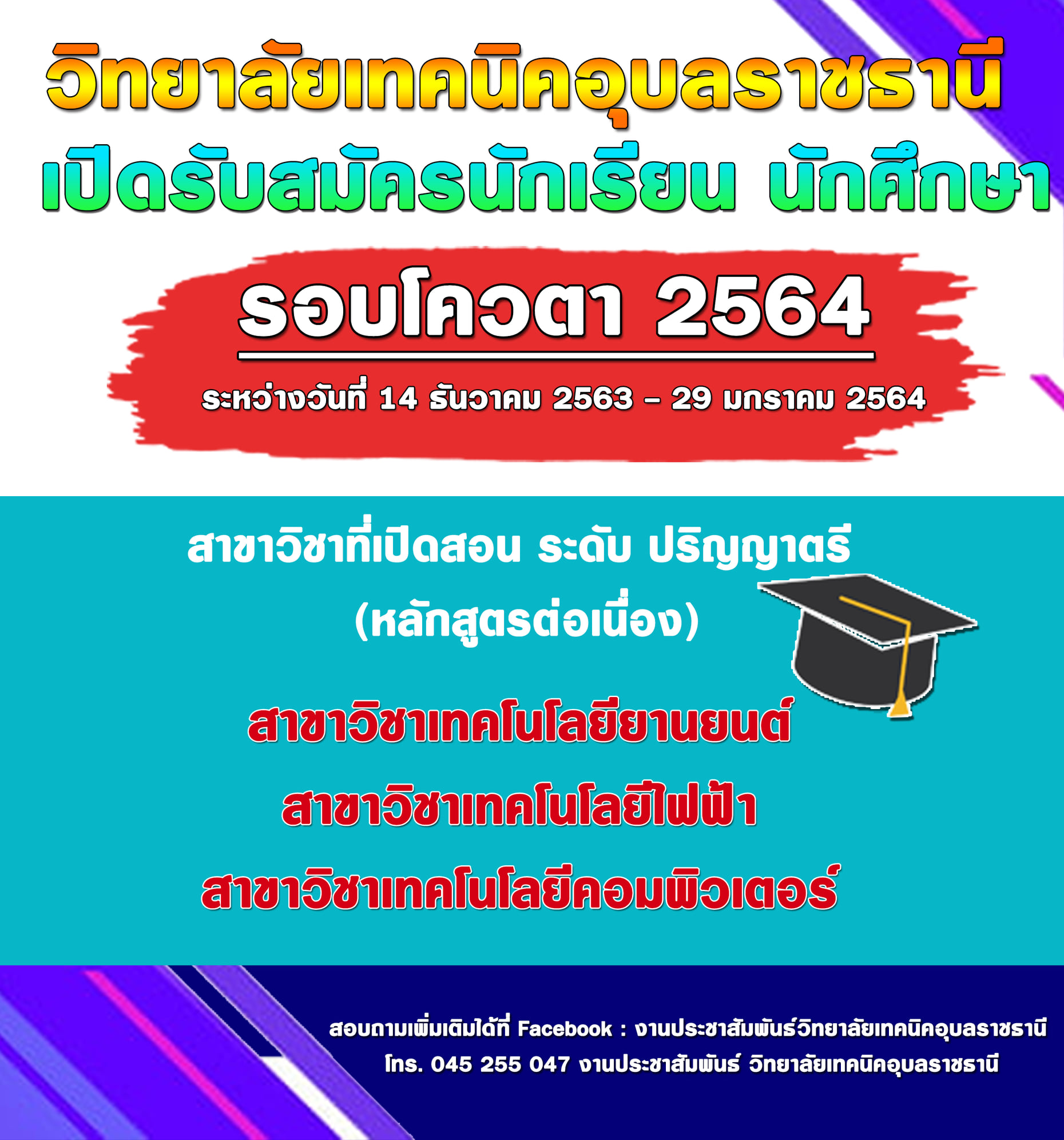 FacebookTwitterLineประกาศวิทยาลัยเทคนิคอุบลราชธานี เรื่อง กำหนดการรับสมัครนักเรียน นักศึกษาใหม่ และการทดสอบความถนัดทางวิชาชีพ FacebookTwitterLine read more