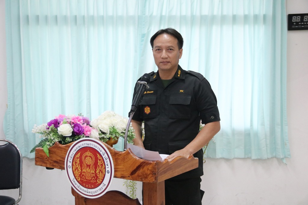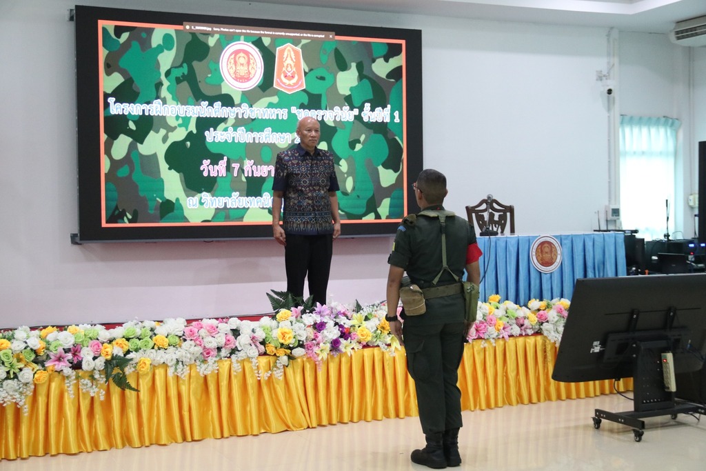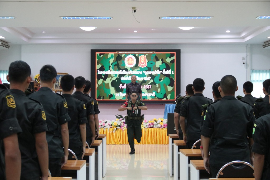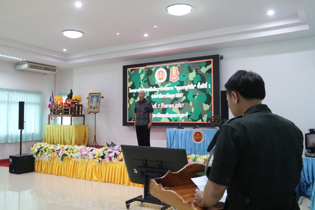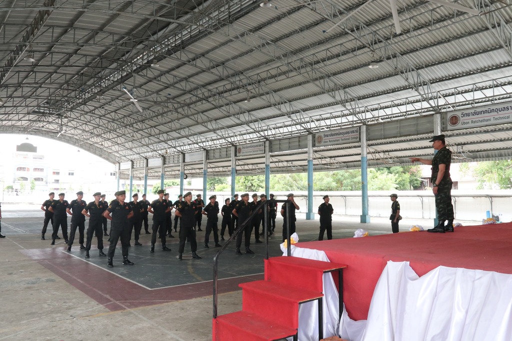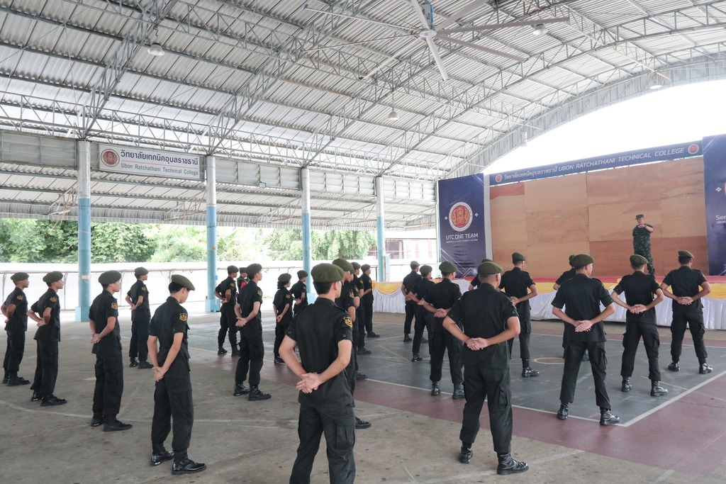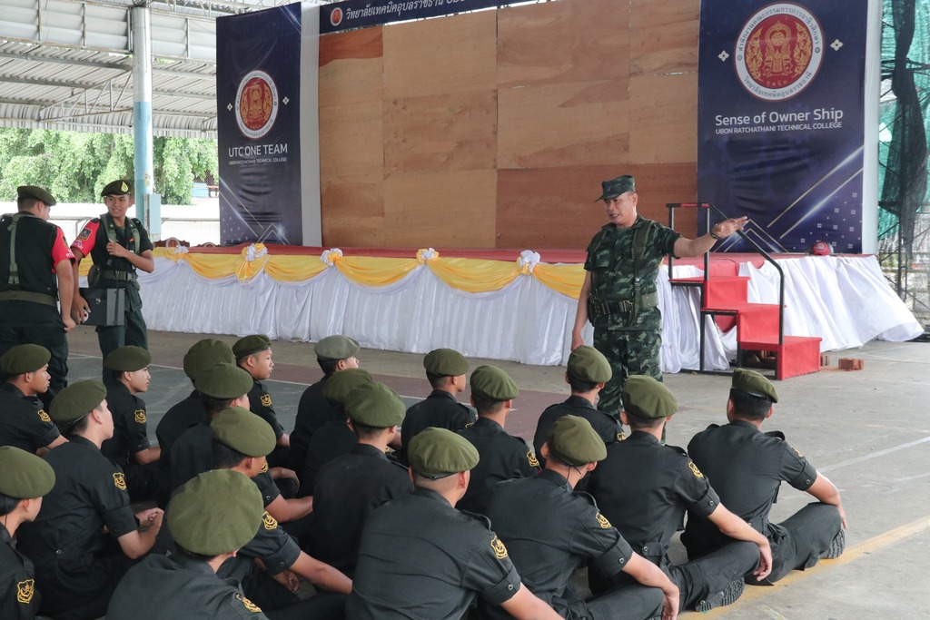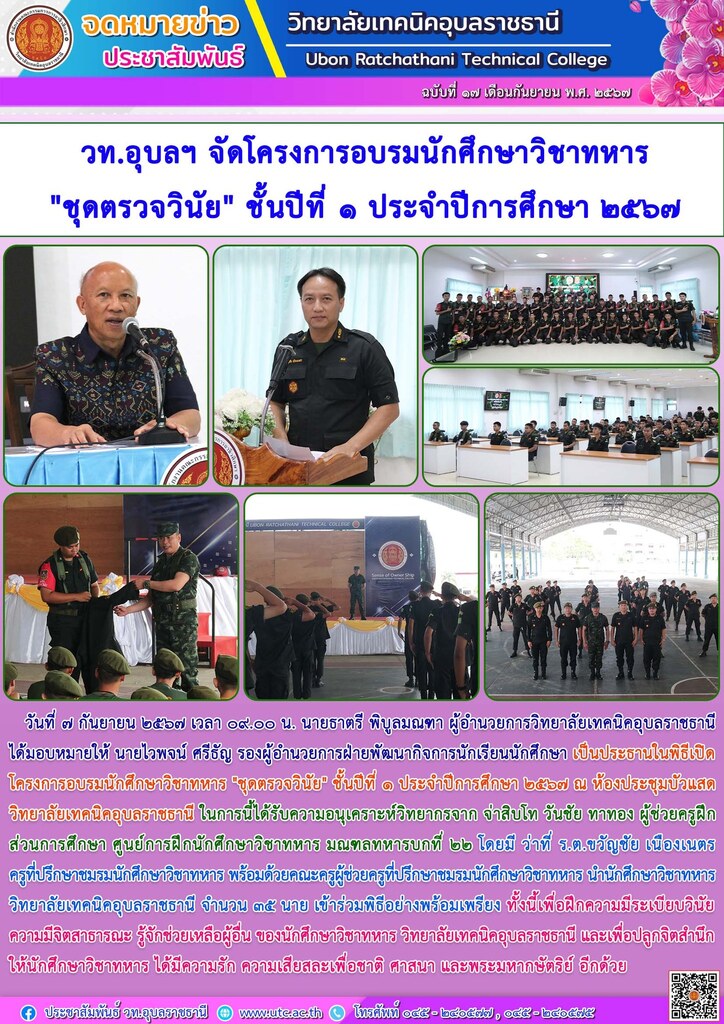 วันที่ ๗ กันยายน ๒๕๖๗ เวลา ๐๙.๐๐ น. นายธาตรี พิบูลมณฑา ผู้อำนวยการวิทยาลัยเทคนิคอุบลราชธานี ได้มอบหมายให้ นายไวพจน์ ศรีธัญ รองผู้อำนวยการฝ่ายพัฒนากิจการนักเรียนนักศึกษา เป็นประธานในพิธีเปิดโครงการอบรมนักศึกษาวิชาทหาร “ชุดตรวจวินัย” ชั้นปีที่ ๑ ประจำปีการศึกษา ๒๕๖๗ ณ ห้องประชุมบัวแสด วิทยาลัยเทคนิคอุบลราชธานี ในการนี้ได้รับความอนุเคราะห์วิทยากรจาก จ่าสิบโท วันชัย ทาทอง ผู้ช่วยครูฝึกส่วนการศึกษา ศูนย์การฝึกนักศึกษาวิชาทหาร มณฑลทหารบกที่ ๒๒ โดยมี ว่าที่ ร.ต.ขวัญชัย เนืองเนตร ครูที่ปรึกษาชมรมนักศึกษาวิชาทหาร พร้อมด้วยคณะครูผู้ช่วยครูที่ปรึกษาชมรมนักศึกษาวิชาทหาร นำนักศึกษาวิชาทหาร วิทยาลัยเทคนิคอุบลราชธานี จำนวน ๓๕ นาย เข้าร่วมพิธีอย่างพร้อมเพรียง ทั้งนี้เพื่อฝึกความมีระเบียบวินัย ความมีจิตสาธารณะ รู้จักช่วยเหลือผู้อื่น ของนักศึกษาวิชาทหาร วิทยาลัยเทคนิคอุบลราชธานี และเพื่อปลูกจิตสำนึกให้นักศึกษาวิชาทหาร ได้มีความรัก ความเสียสละเพื่อชาติ ศาสนา และพระมหากษัตริย์ อีกด้วย